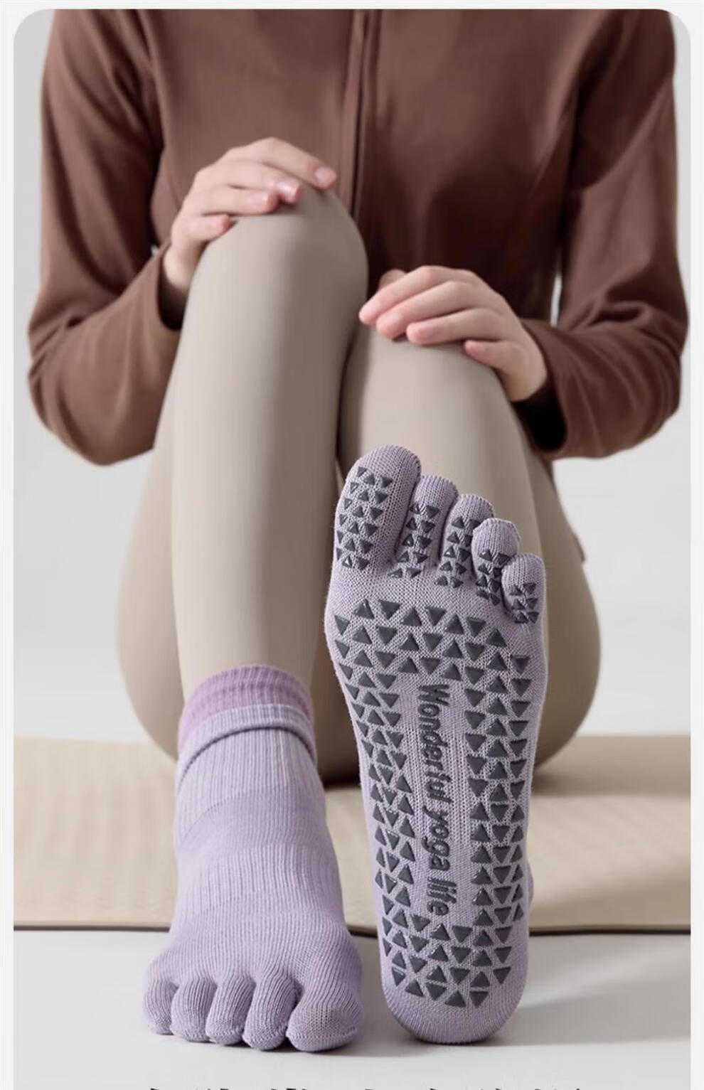 Jingyouyu German five-finger yoga socks non-slip women's Pilates indoor sports fitness dancing beginner floor socks 2 pairs of pink + purple