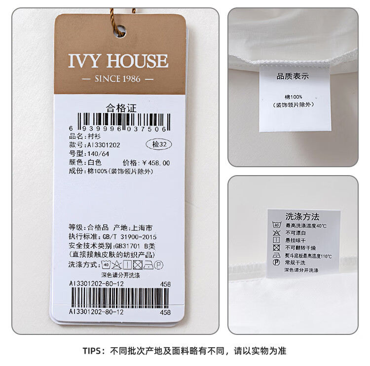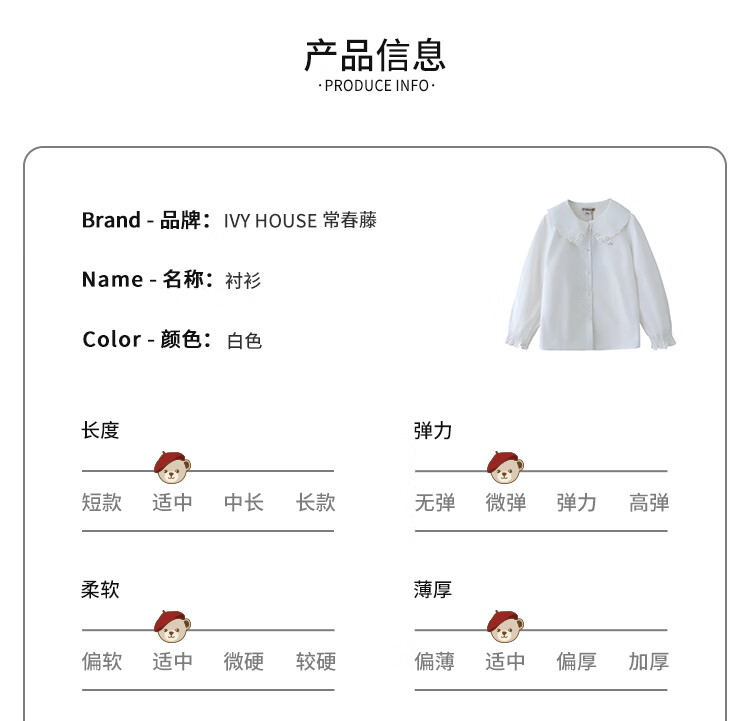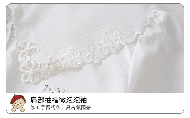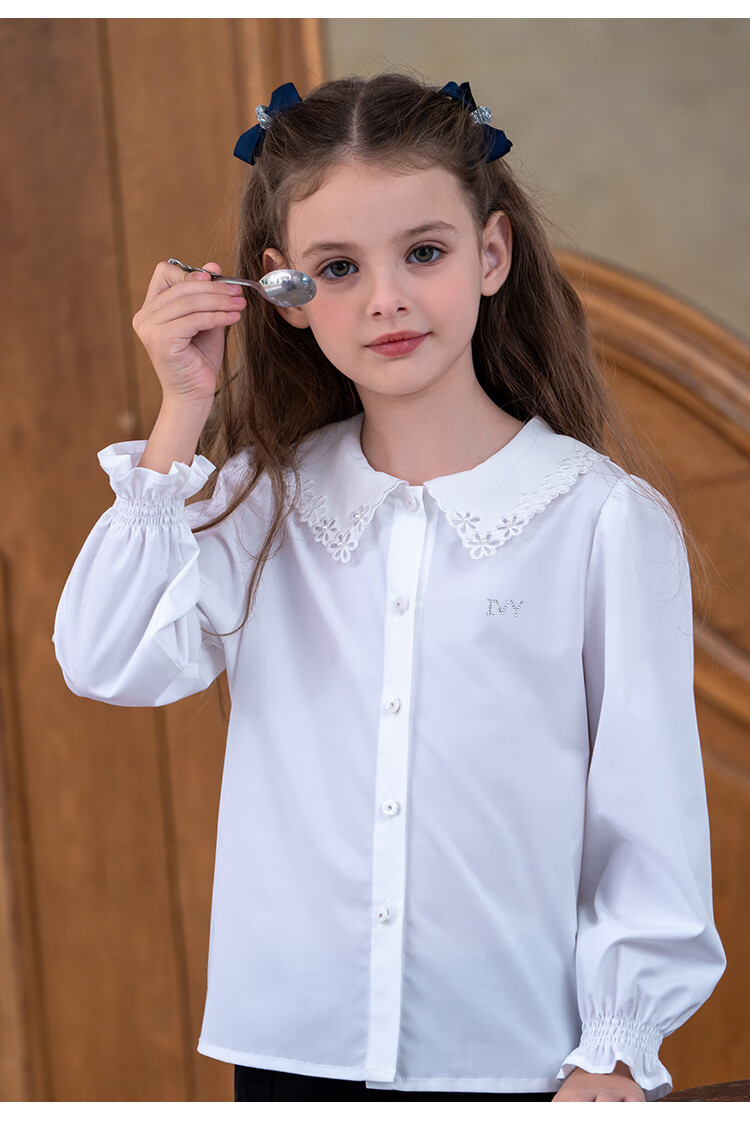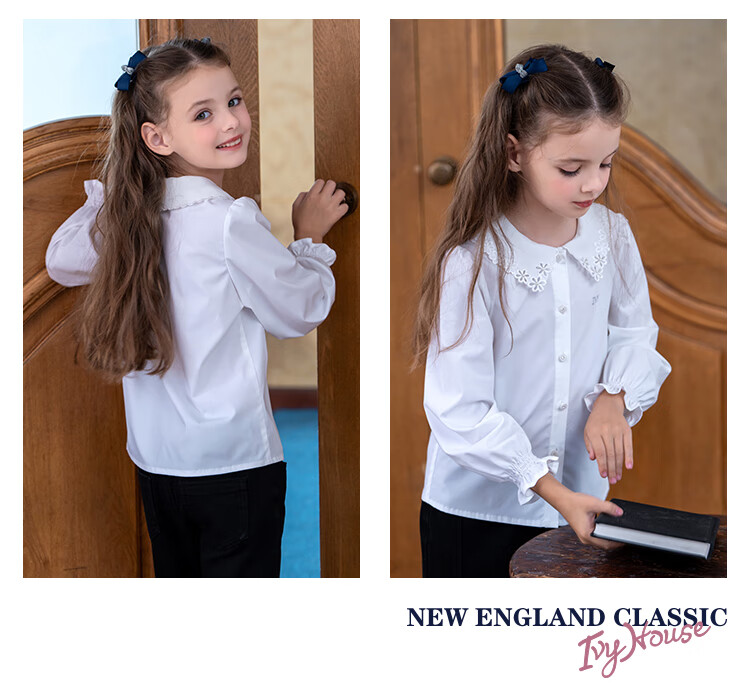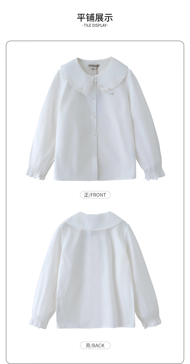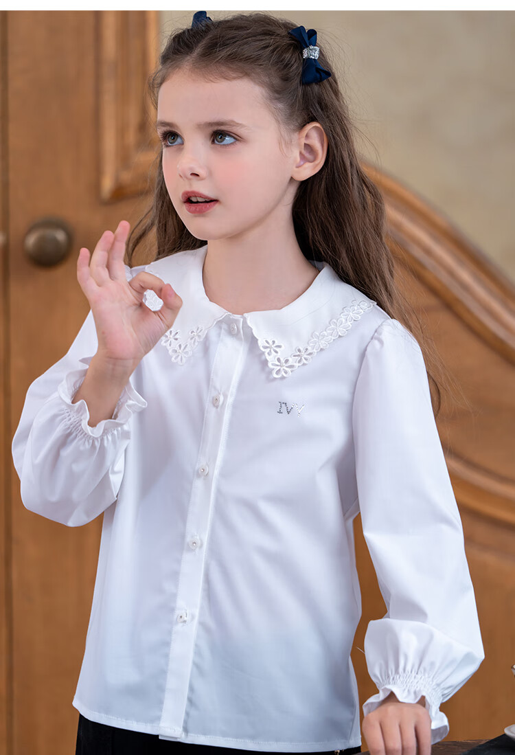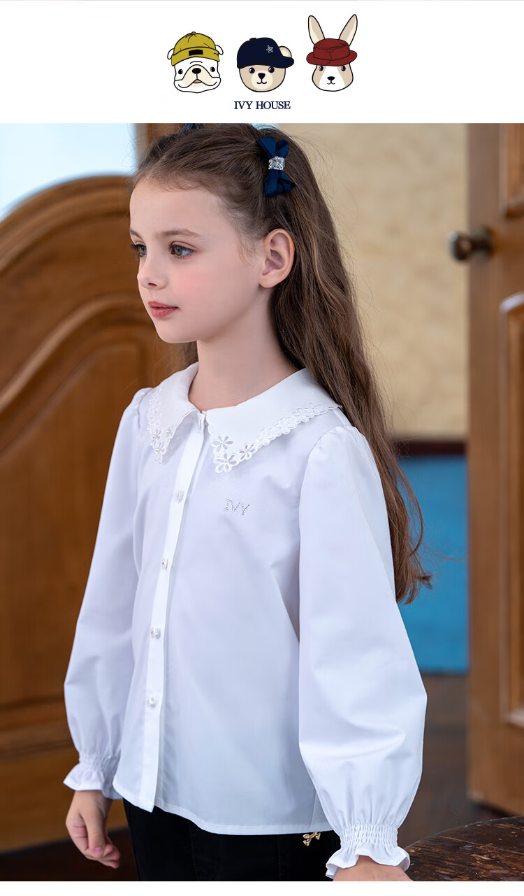 IVY HOUSE girls and older children's new spring and autumn bottoming shirts long-sleeved white shirts embroidered collar cotton parent-child tops 160