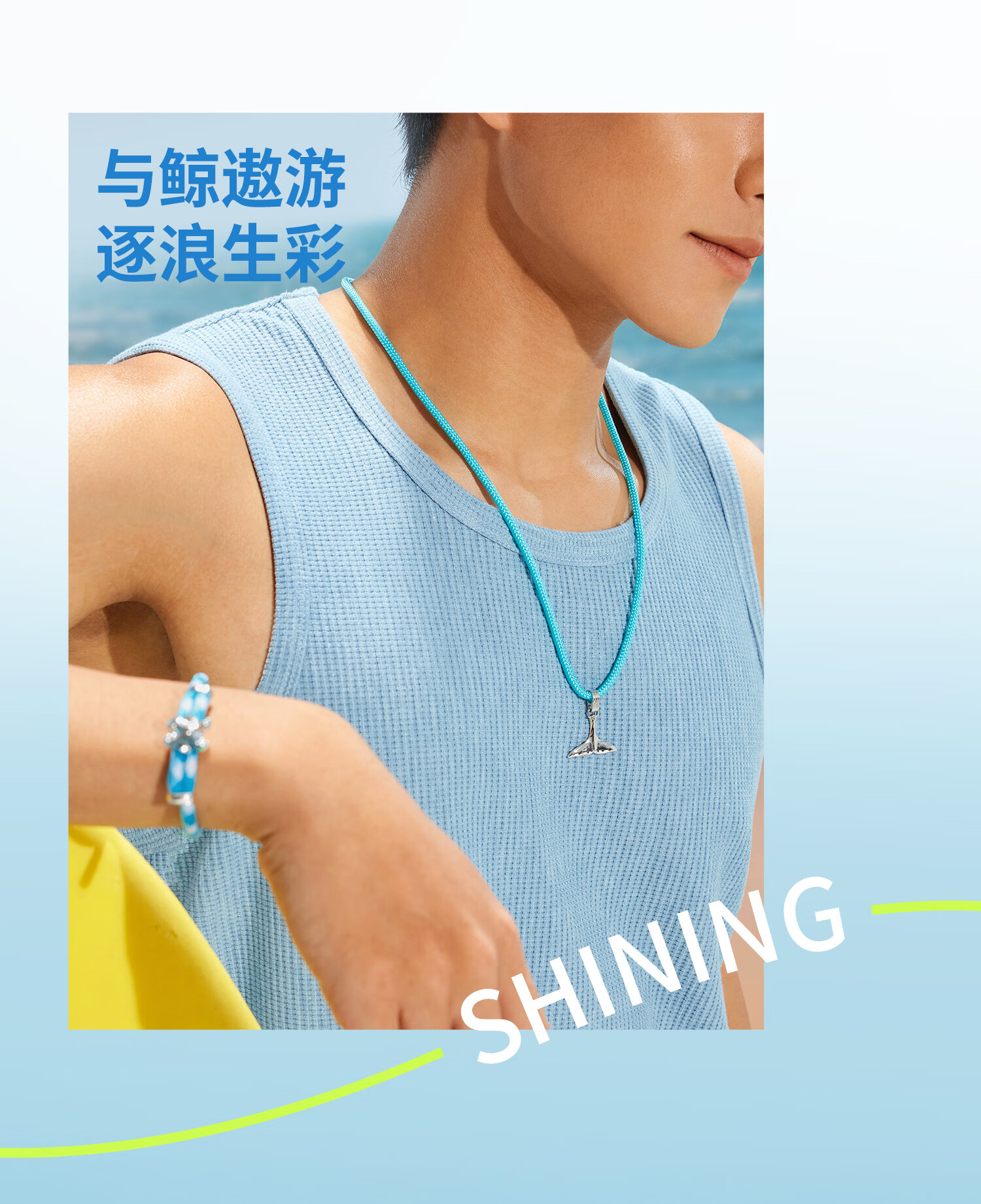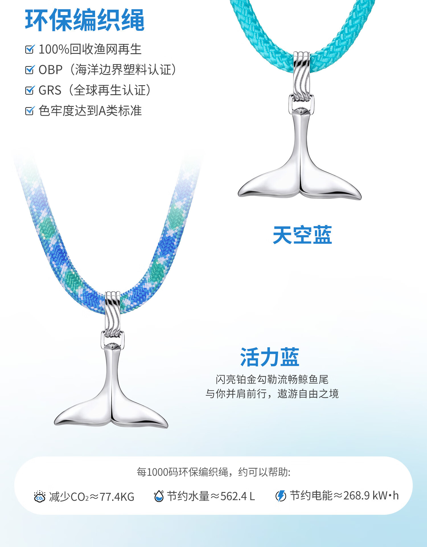 Lukfook Jewelry Platinum Ocean Series Platinum 950 Whale Tail Platinum Pendant with Eco-Friendly Necklace Couple Model GJT0020DS Gold Weight 5.87g Sky Blue