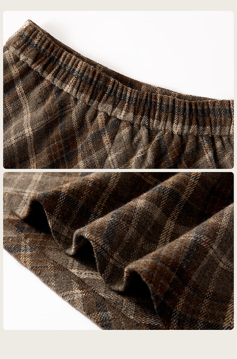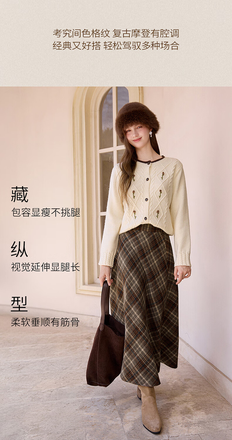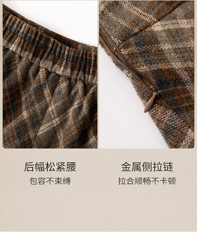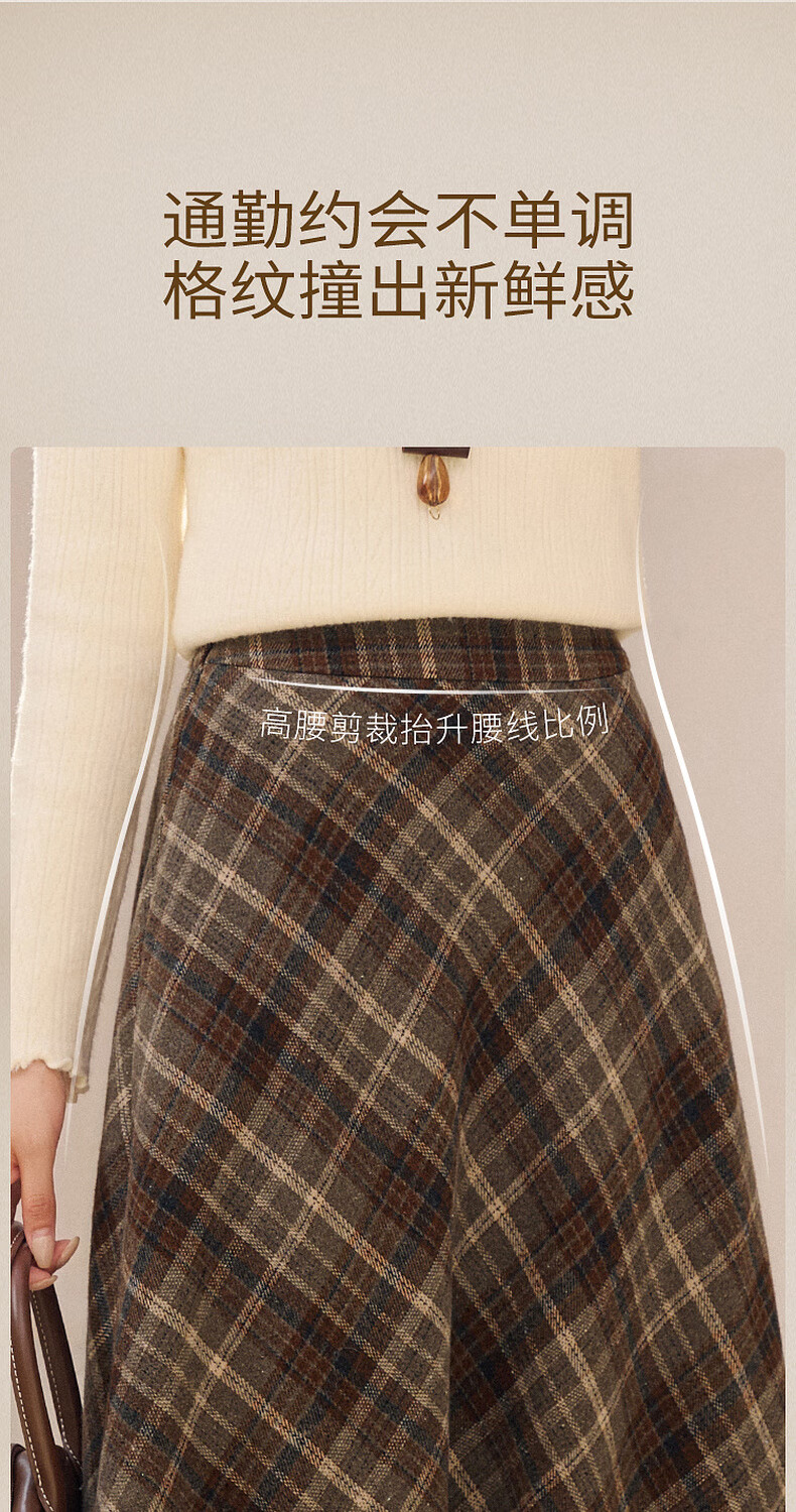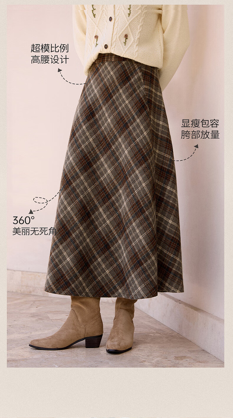 Xiangying Retro Plaid Woolen Skirt Women's 2025 Winter New Style Wool High Waist Slim Brown Medium Long Skirt Brown M 160/84A/95-110Jin Jin is equal to 0.5 kg