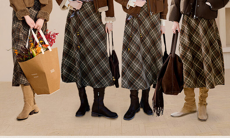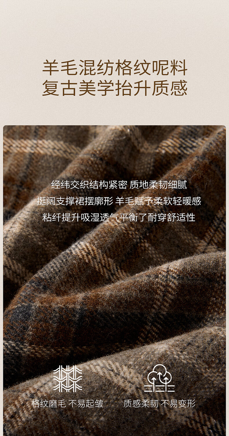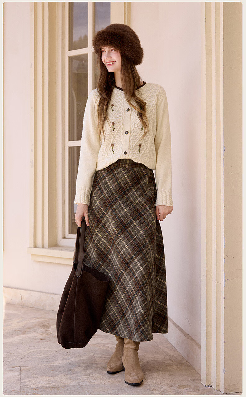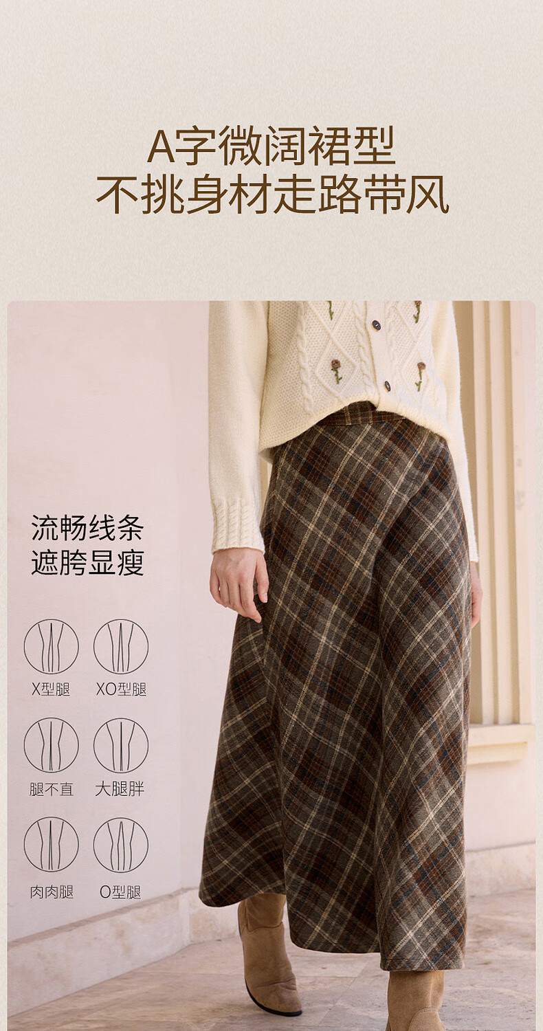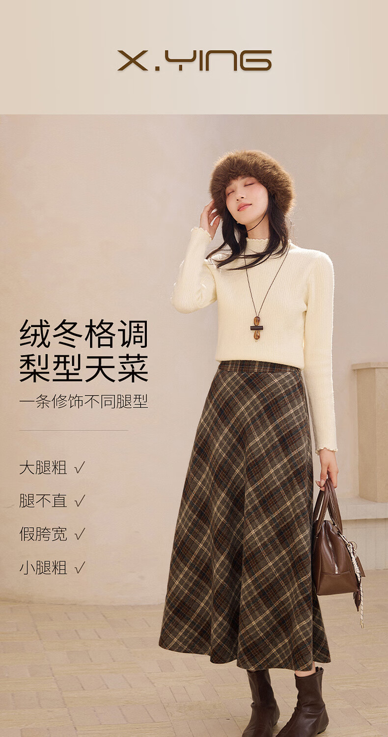 Xiangying Retro Plaid Woolen Skirt Women's 2025 Winter New Style Wool High Waist Slim Brown Medium Long Skirt Brown M 160/84A/95-110Jin Jin is equal to 0.5 kg