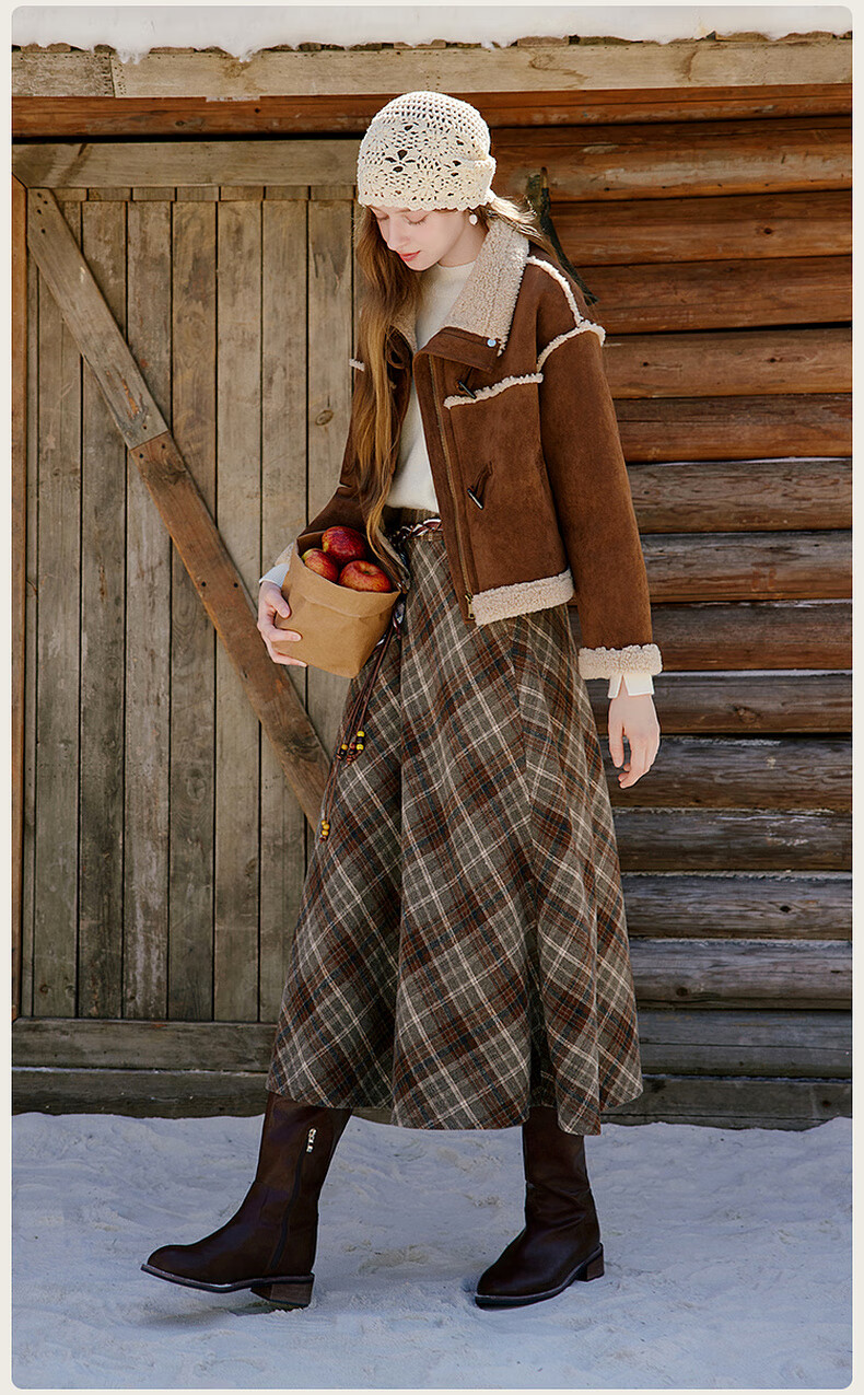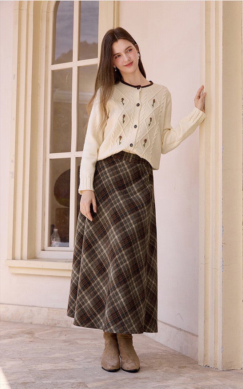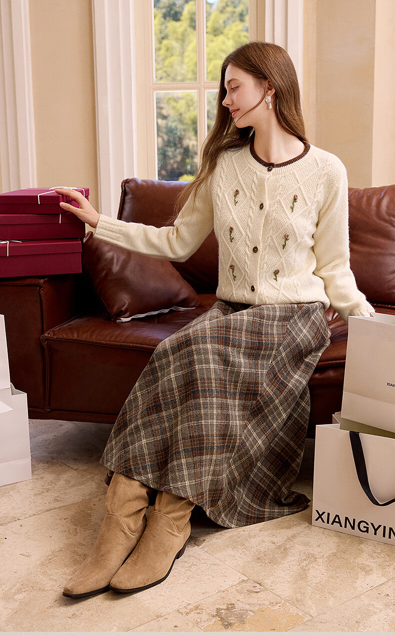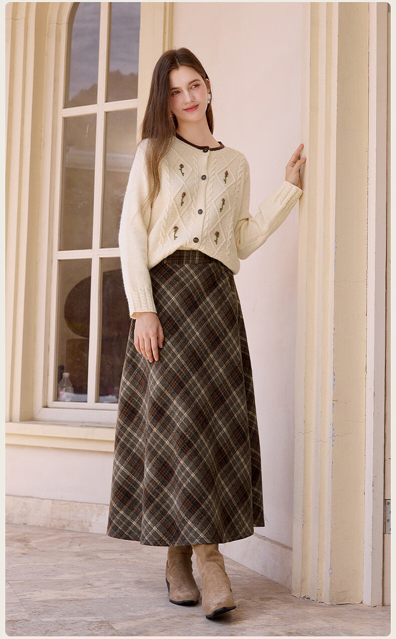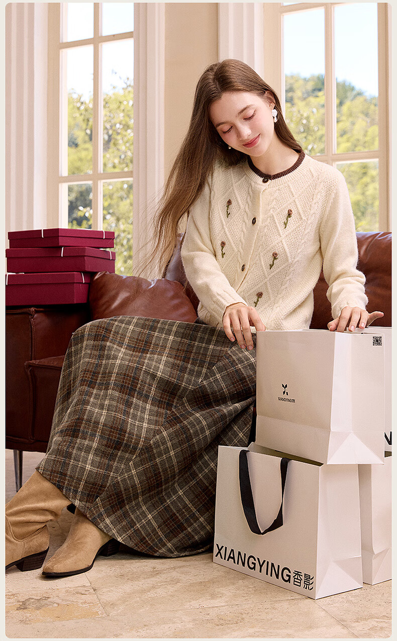 Xiangying Retro Plaid Woolen Skirt Women's 2025 Winter New Style Wool High Waist Slim Brown Medium Long Skirt Brown M 160/84A/95-110Jin Jin is equal to 0.5 kg
