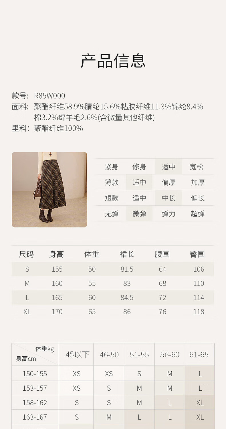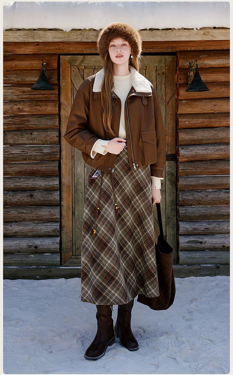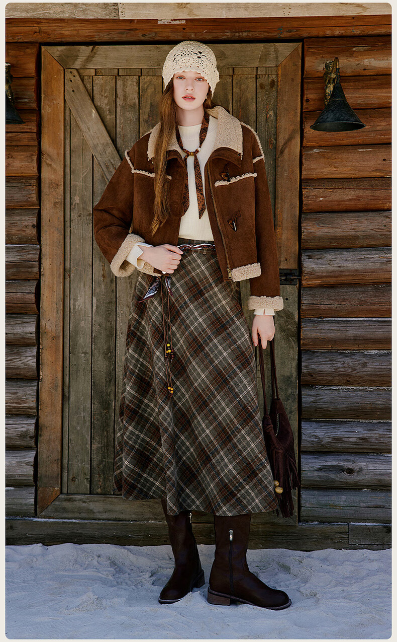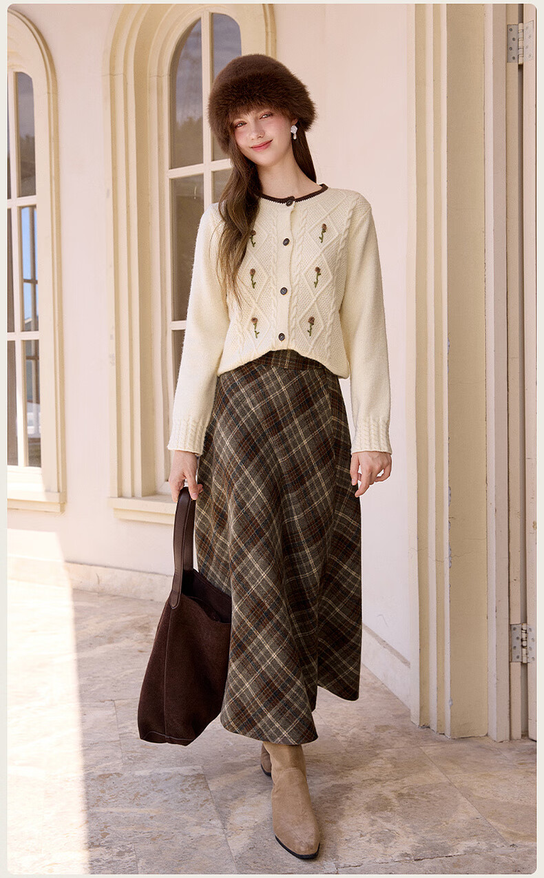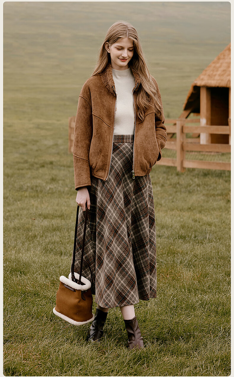 Xiangying Retro Plaid Woolen Skirt Women's 2025 Winter New Style Wool High Waist Slim Brown Medium Long Skirt Brown M 160/84A/95-110Jin Jin is equal to 0.5 kg