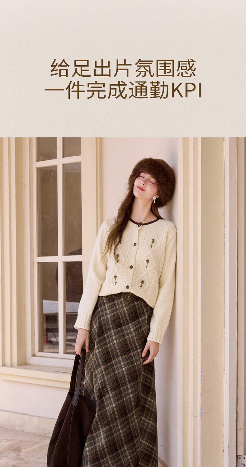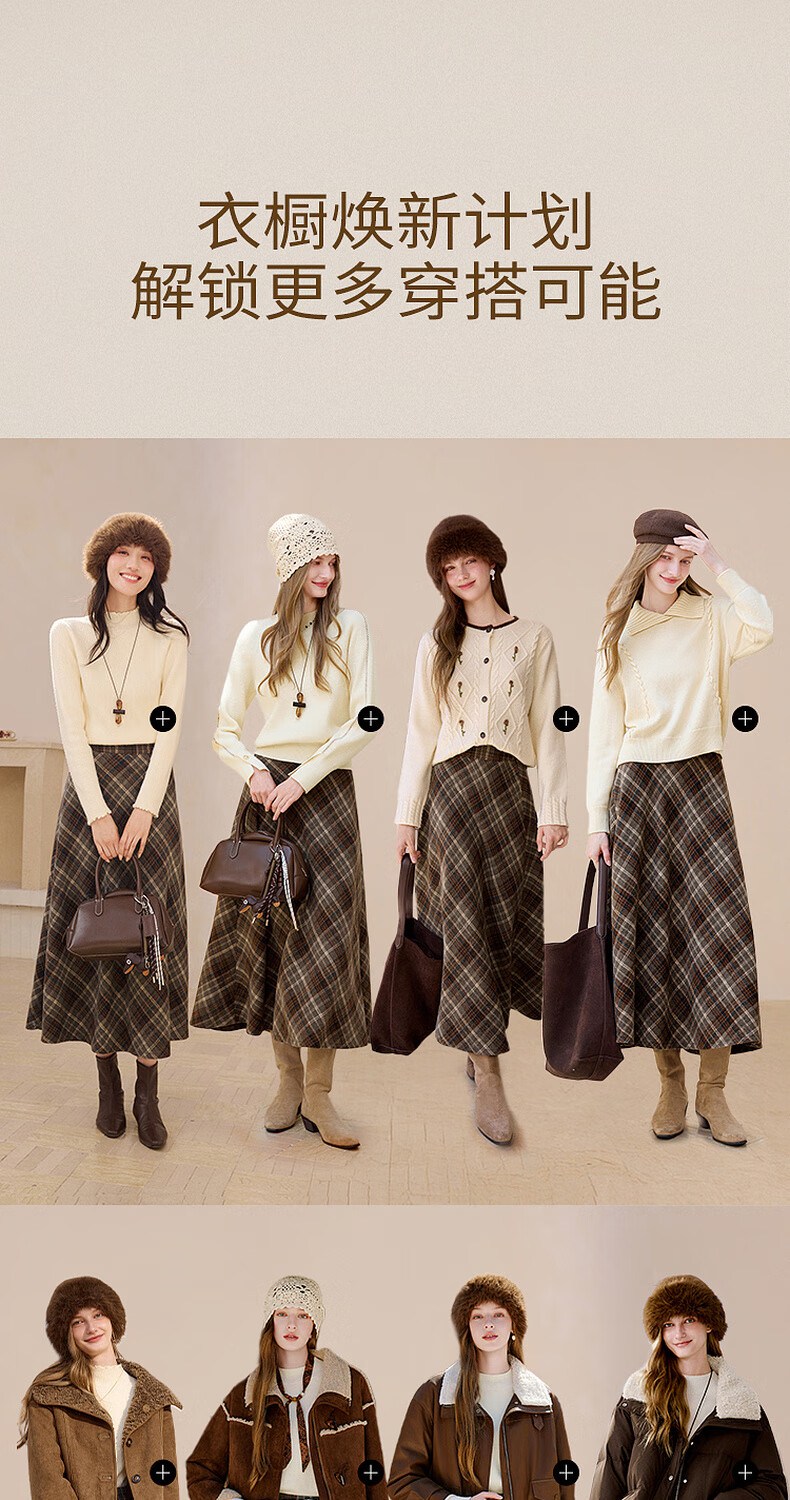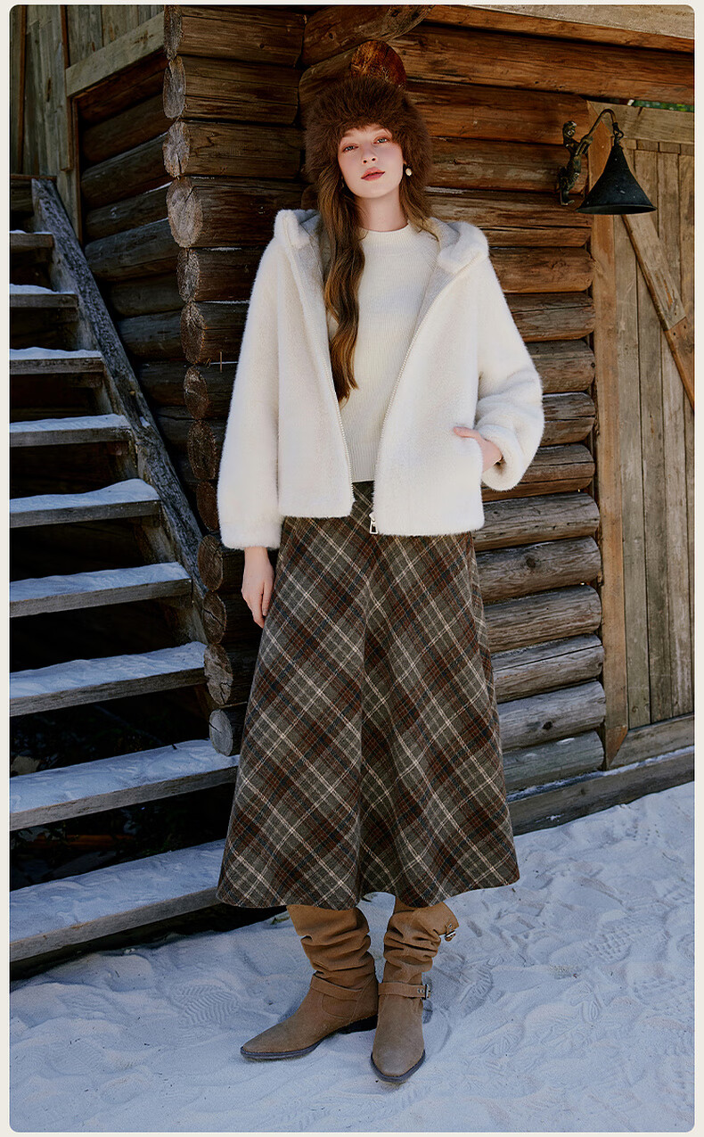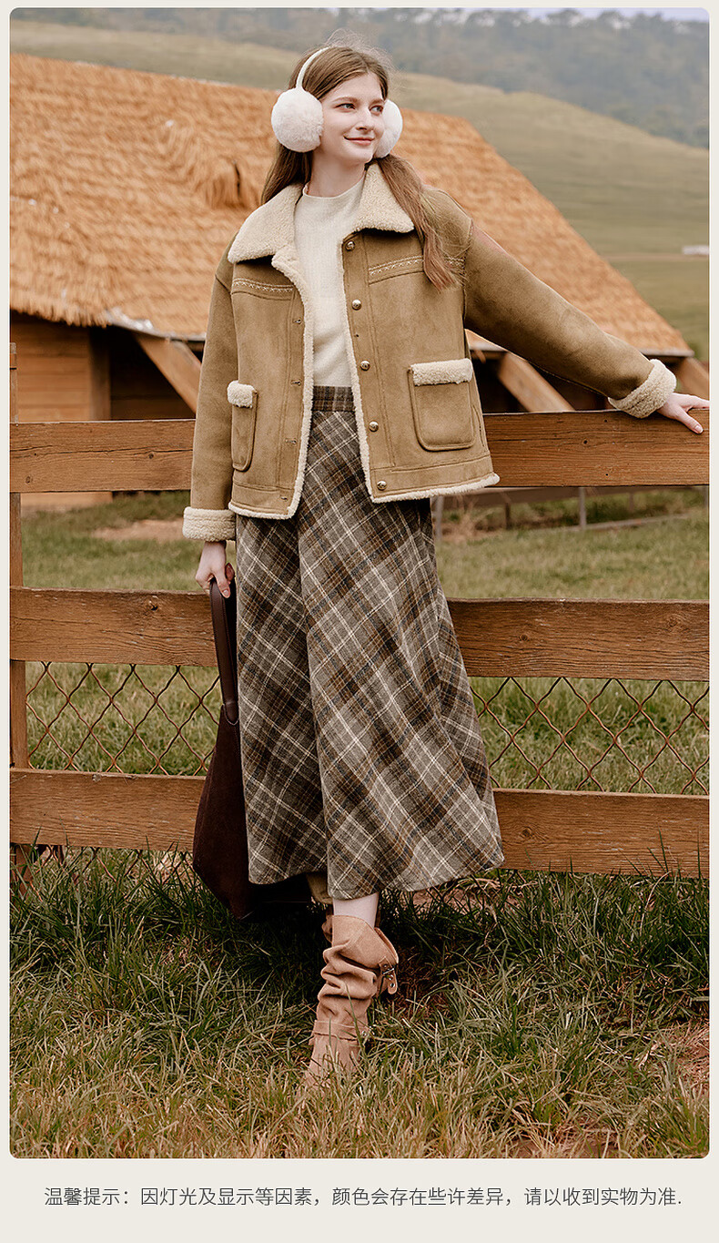 Xiangying Retro Plaid Woolen Skirt Women's 2025 Winter New Style Wool High Waist Slim Brown Medium Long Skirt Brown M 160/84A/95-110Jin Jin is equal to 0.5 kg