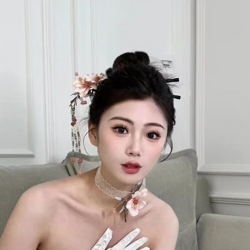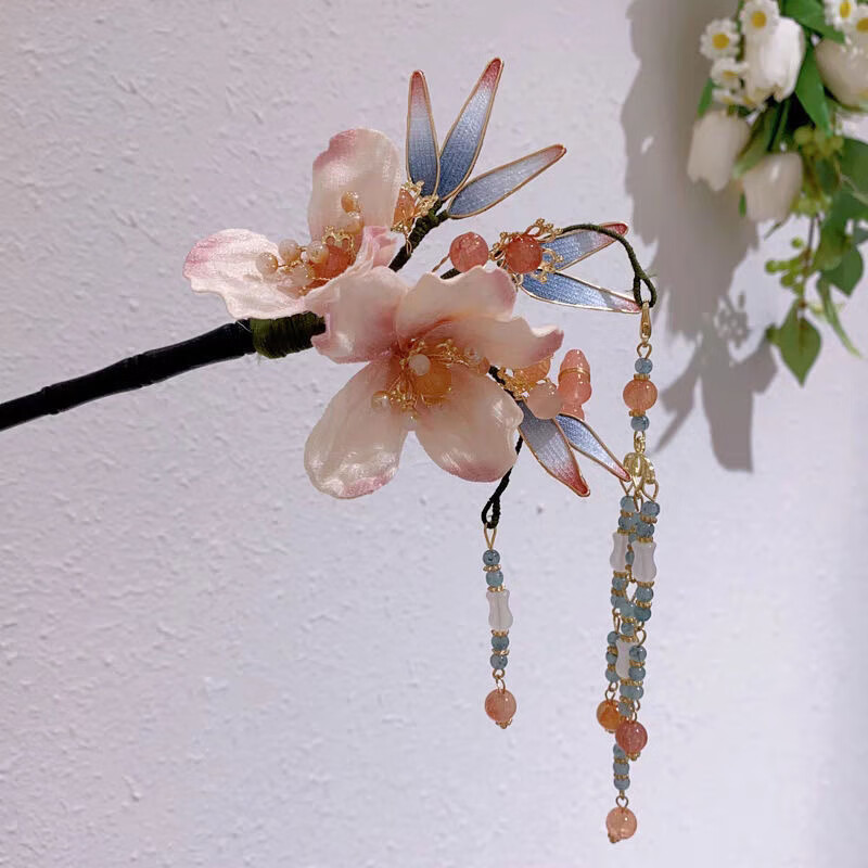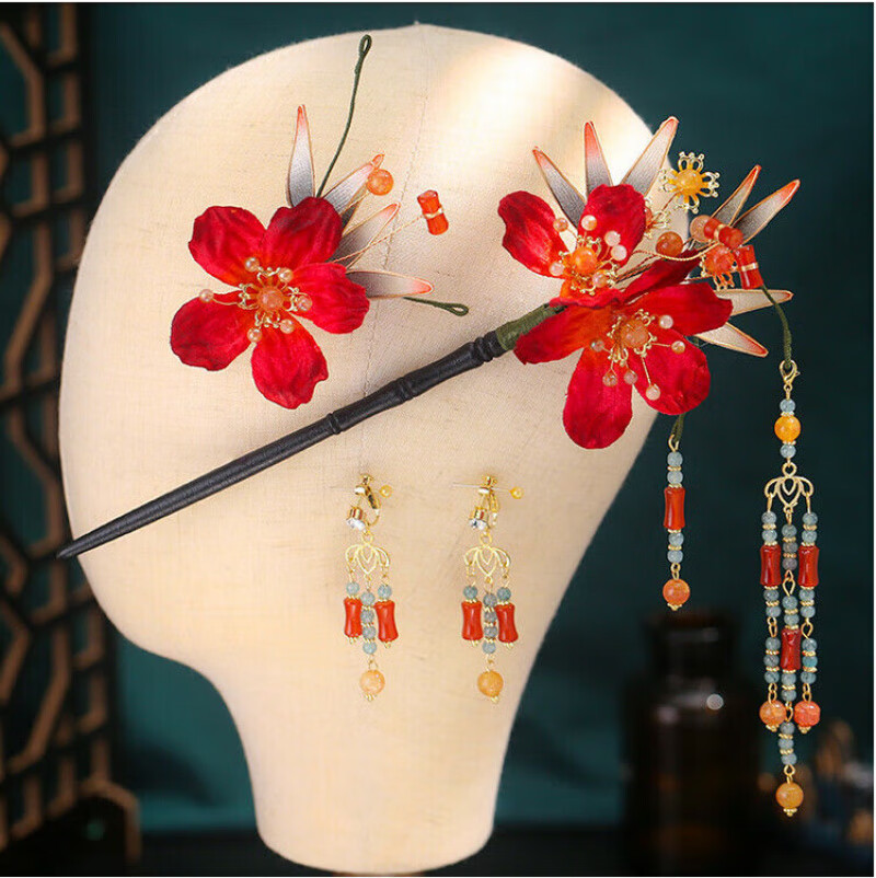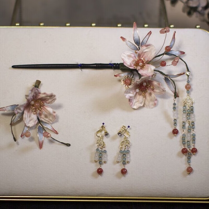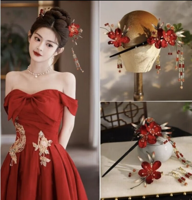 Shantou Lincun New Chinese Style Headwear Engagement Bride Cheongsam Morning Robe Hanfu Super Fairy Hairpin Classical Wedding Ethnic Style Hairpin + Hairpin + Ear Clip Earrings Pink Style