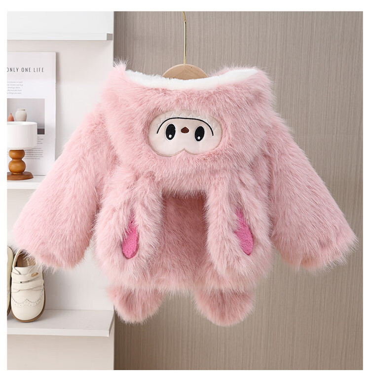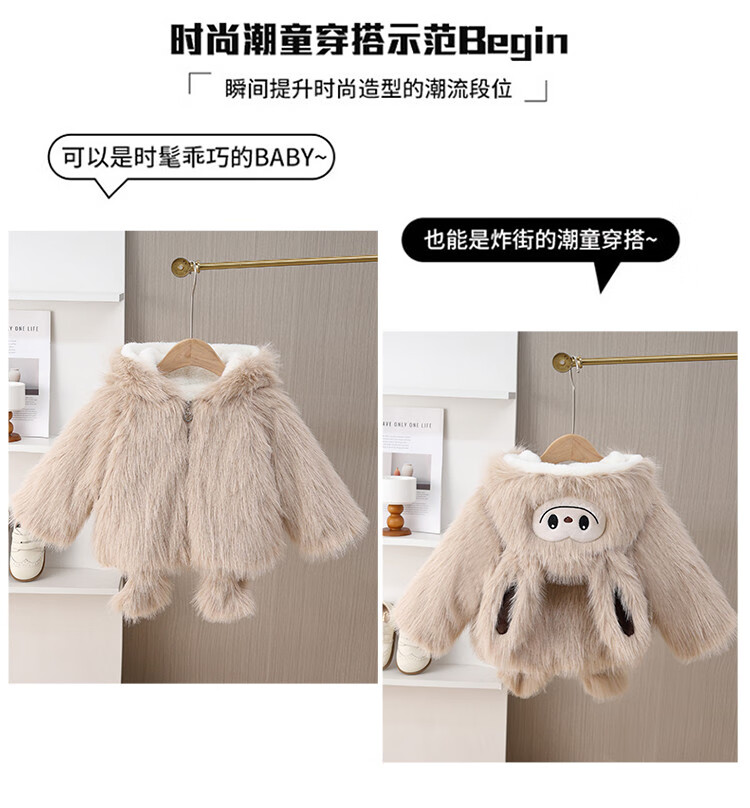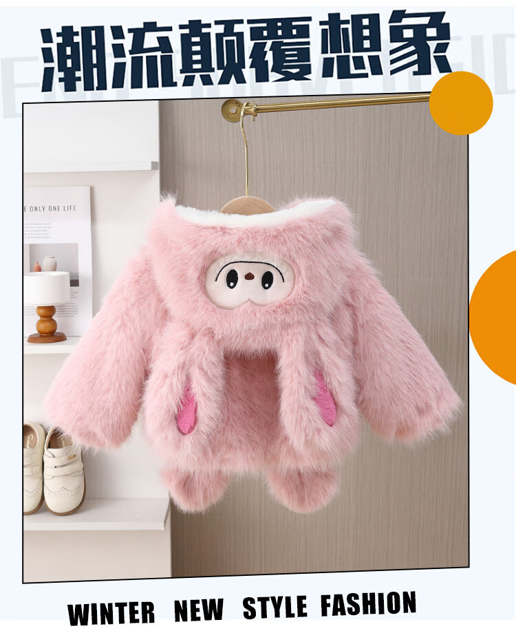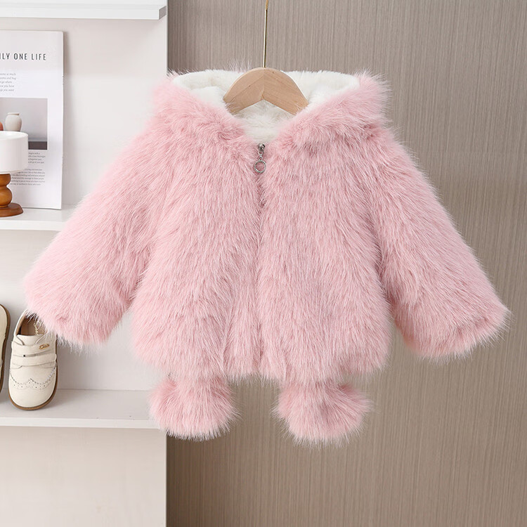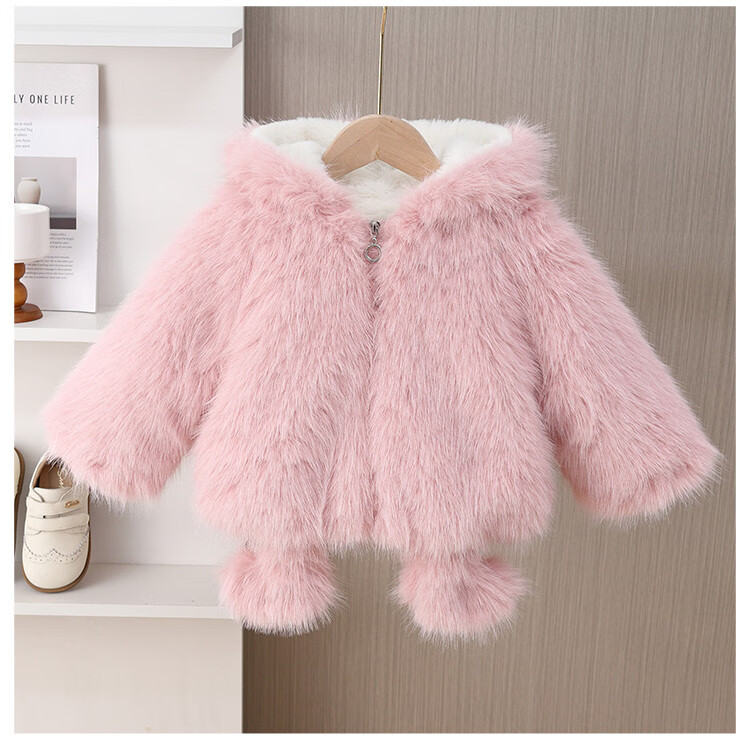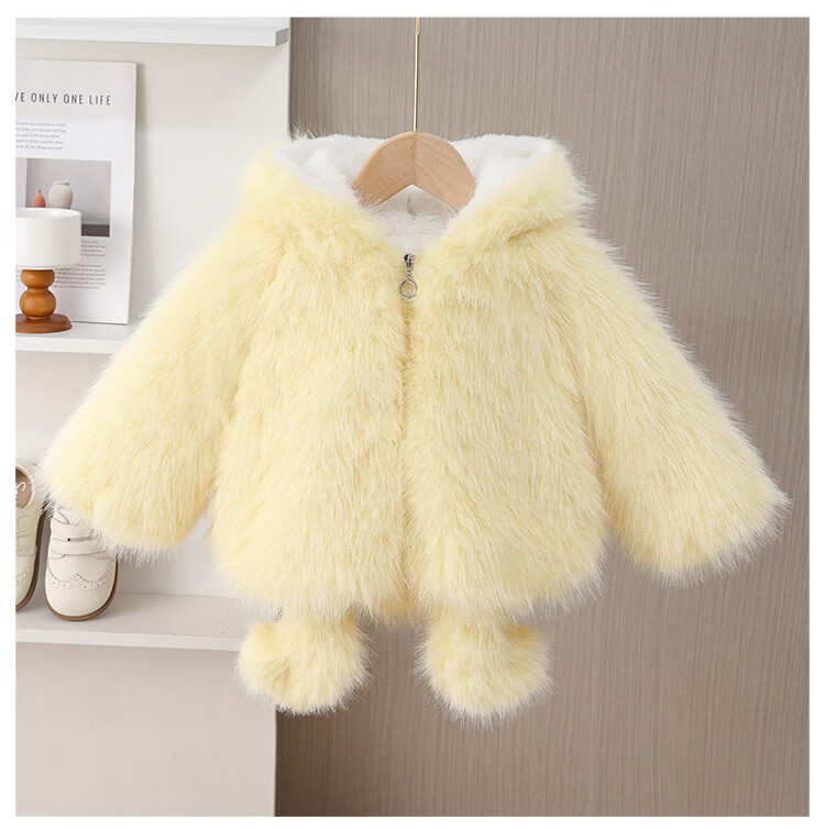 G.duck girls winter fur coat 2025 new style imitation fur plus velvet cotton coat for baby girl winter princess cotton coat yellow 90 cm