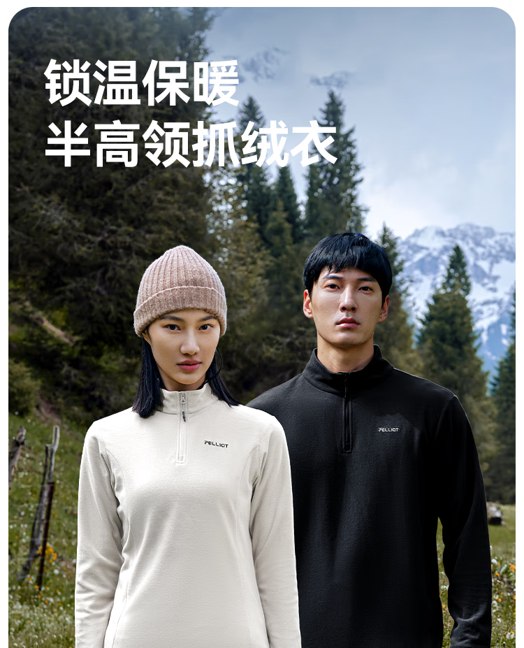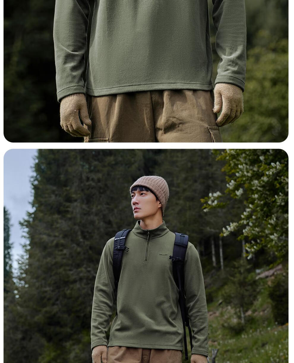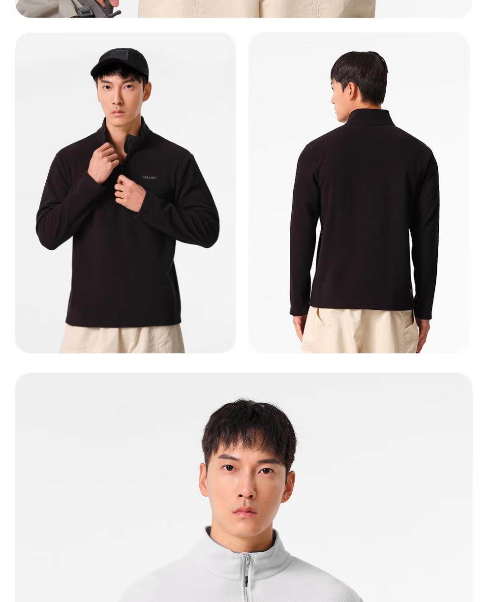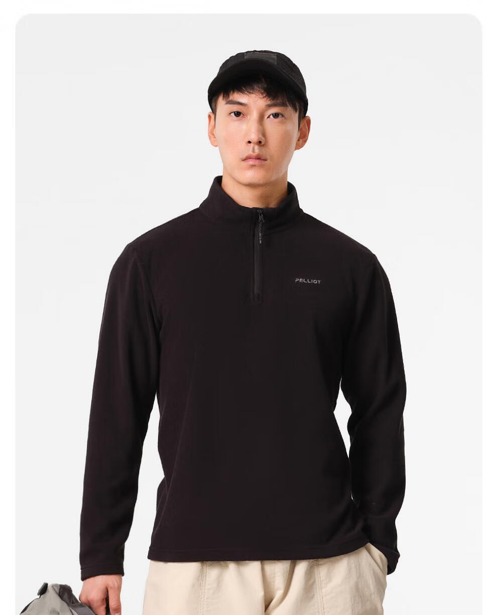 Pelliot Cycling Jersey Men's Outdoor Sports Half Turtle Collar Fleece Jacket Windproof Cycling Top Jacket Liner Women - Obsidian Black (Constant Temperature Technology) S