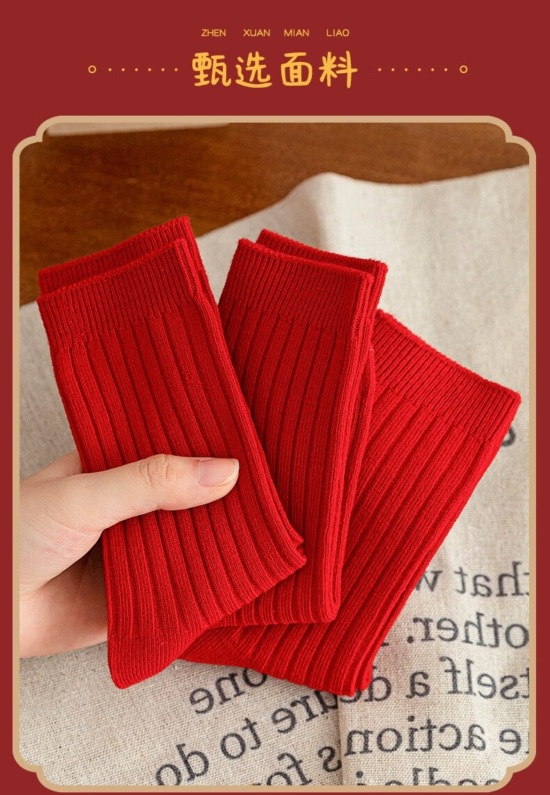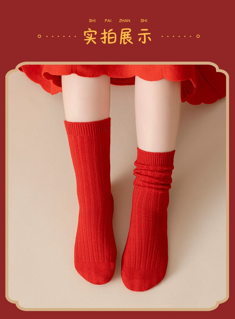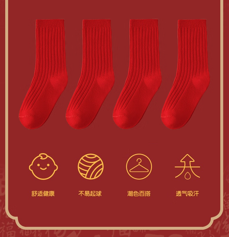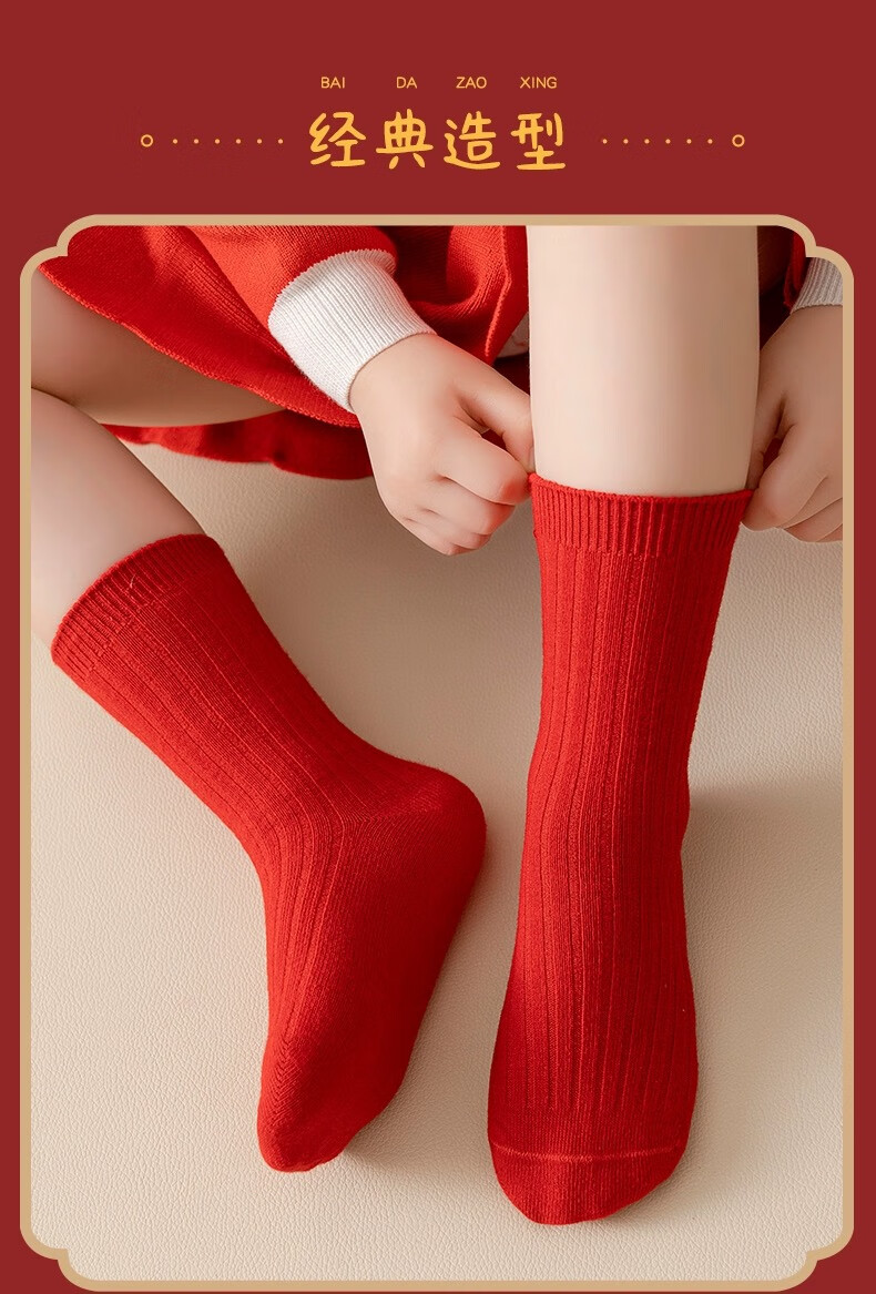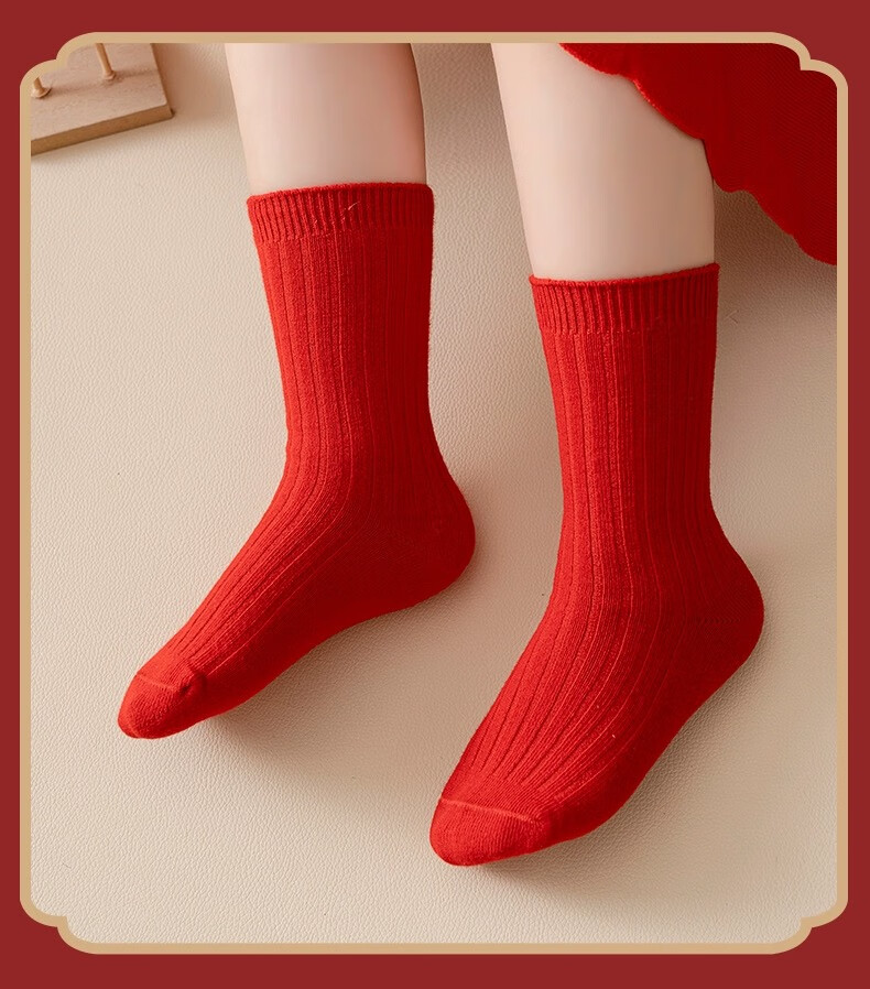 Children's socks New Year's socks autumn and winter combed cotton animal year red cotton socks birthday red socks children's winter mid-calf F8086 festive red socks 3 pairs 6-8 years old recommended shoe size 25-31