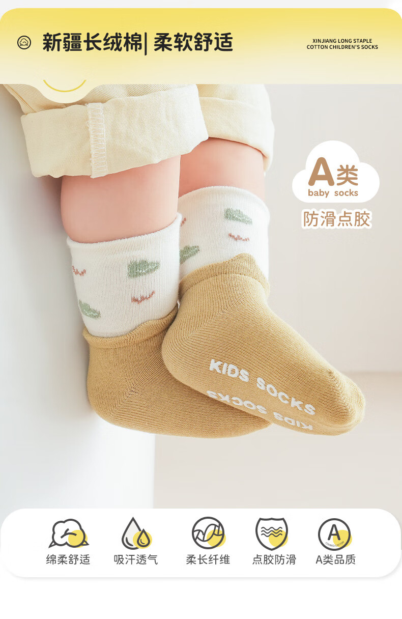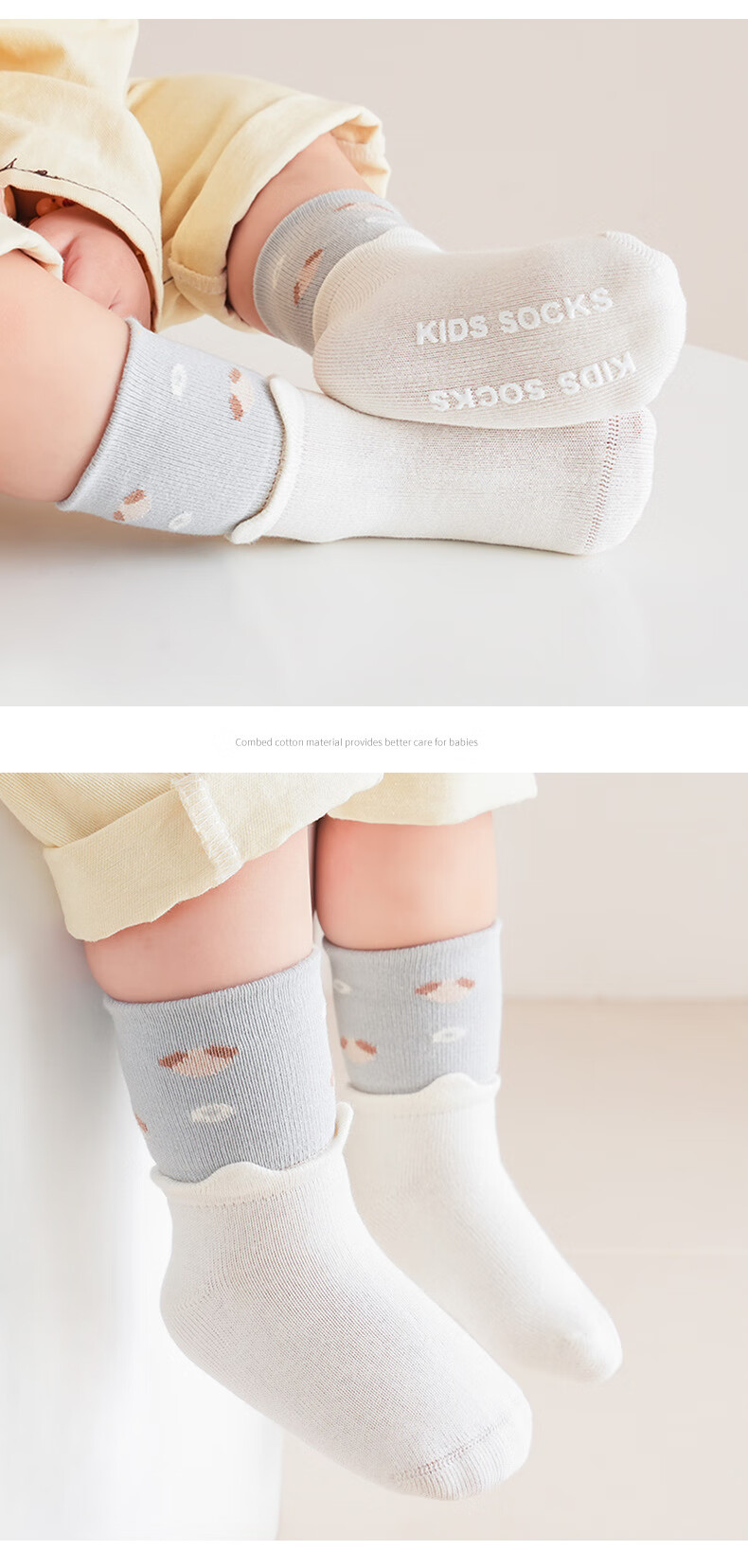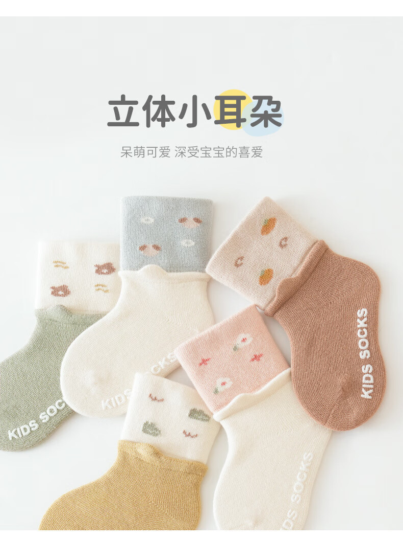 Children's Socks Autumn and Winter Combed Cotton Breathable Baby Mid-Tube Socks Candy Color Tear Ear Newborn Socks Category A y14032-2 Pairs (Blue/Green) 0-6 Months XS Code