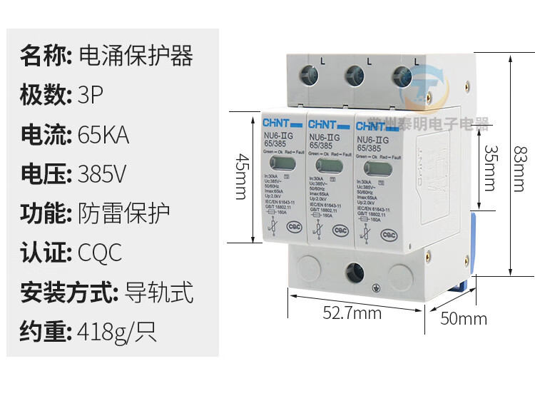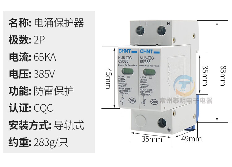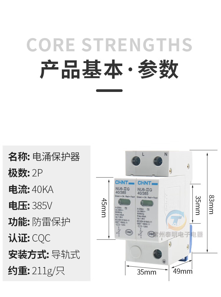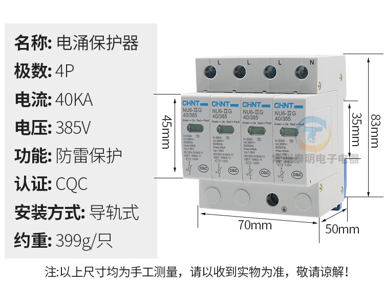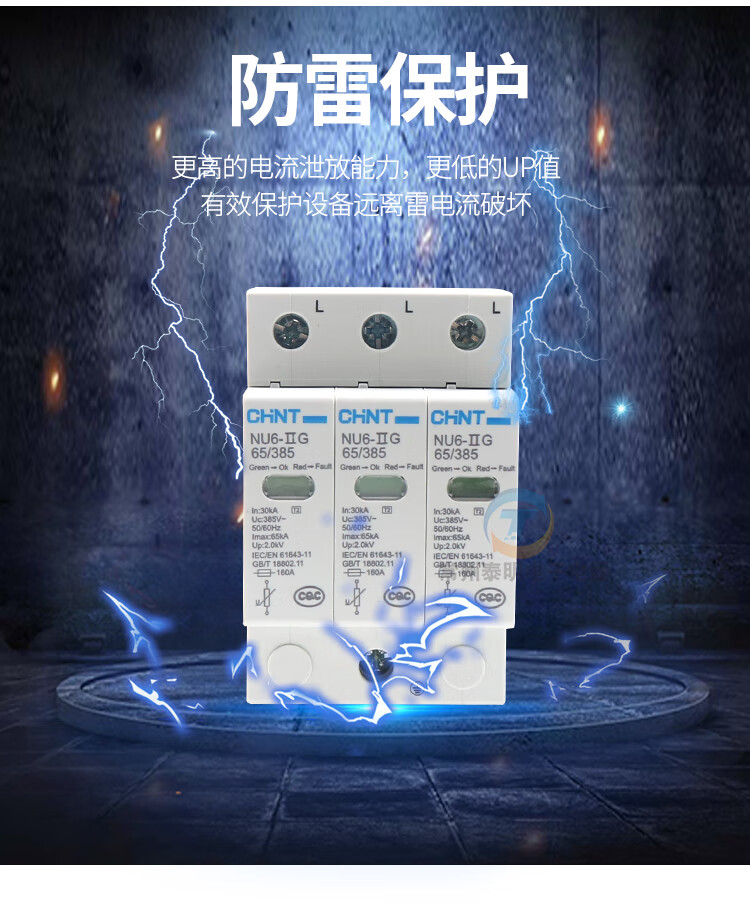 Chint 4P40KA lightning protection 380V surge protector single-phase surge protection new 2P 40KA/385V