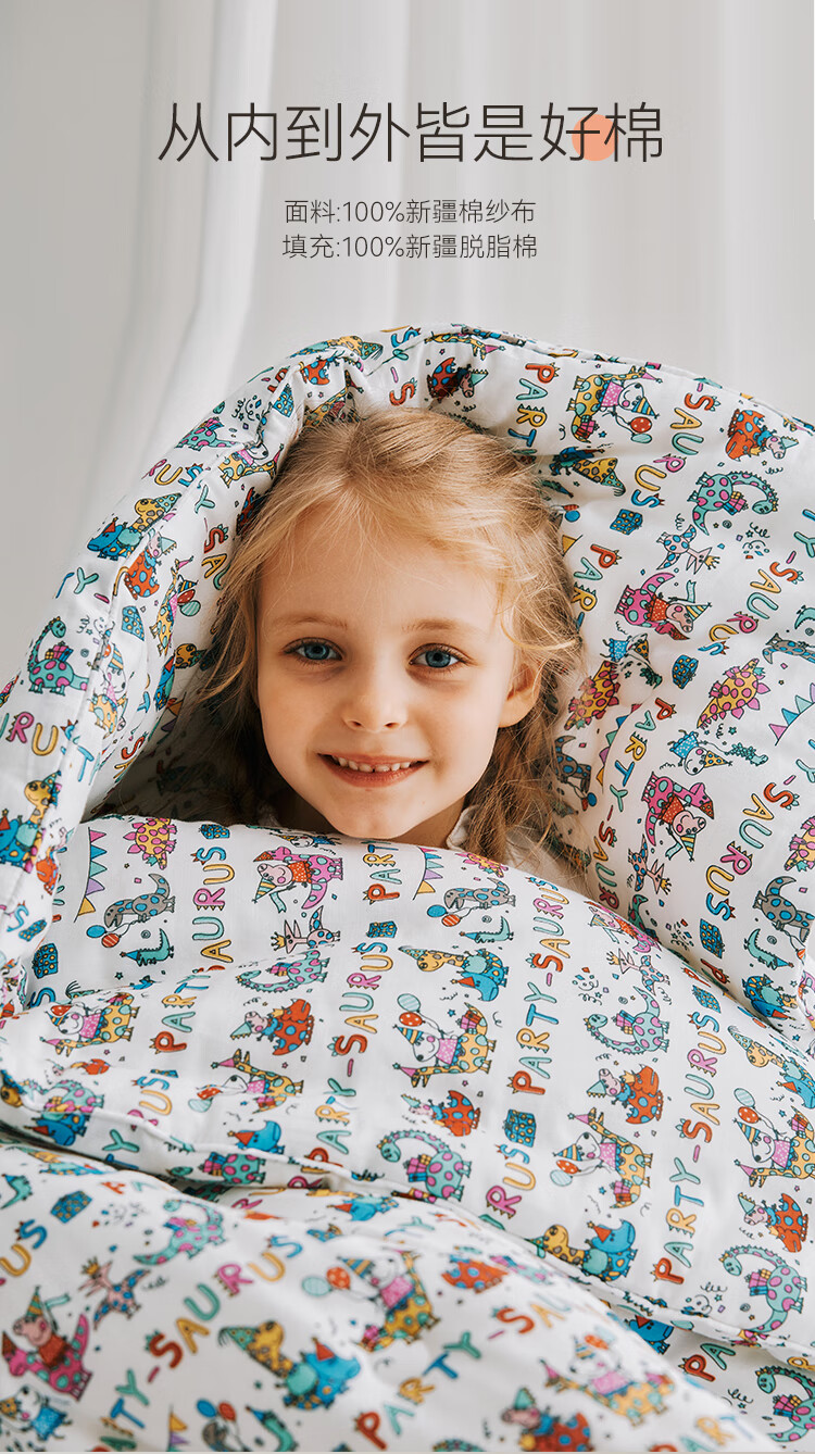 Ying's YEEHOO baby children's autumn and winter quilt pure cotton type a baby quilt cotton quilt Xinjiang quilt children's bedding Dinosaur Party Carnival (winter quilt) (recommended room temperature 5-15) 120*150cm
