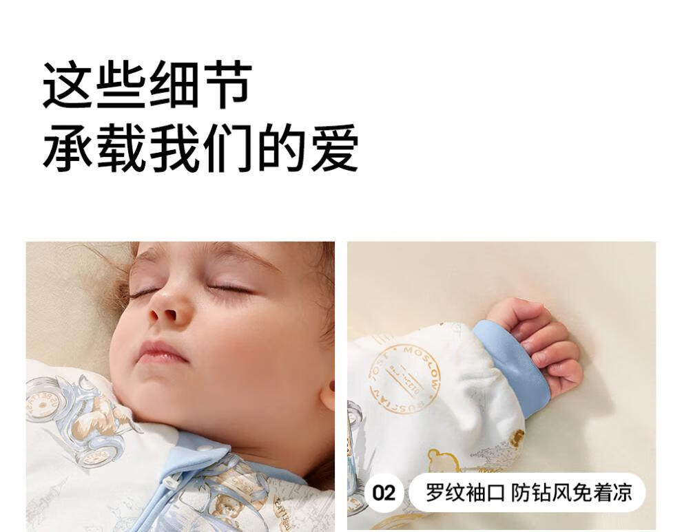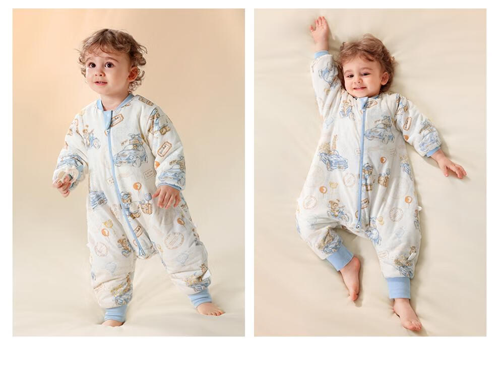 BETUS new product baby split-leg sleeping bag autumn and winter anti-kick quilt, universal for all seasons, cat belly cotton, constant temperature, double layer for spring and autumn_room temperature 20-26, Bear in Wonderland, S size, suitable for height 60-85cm, recommended age 6-18 months
