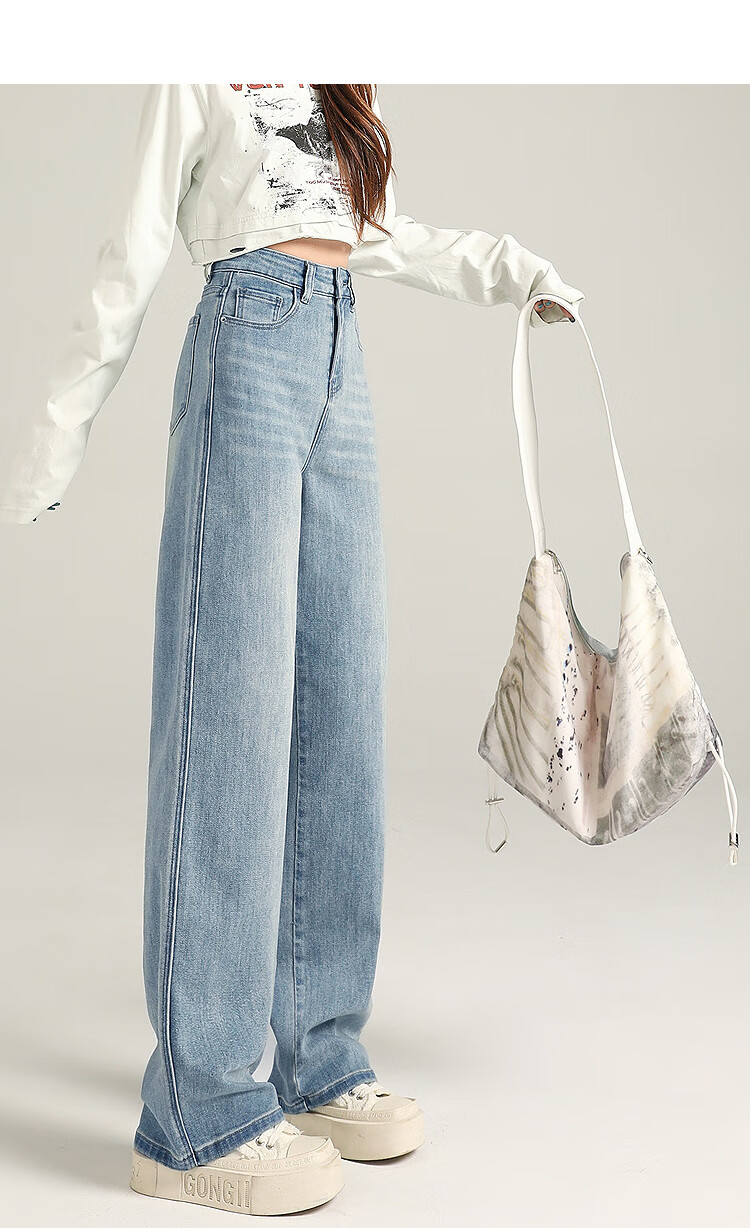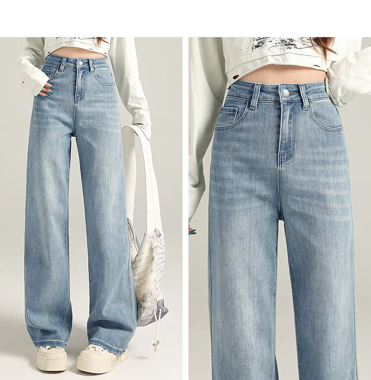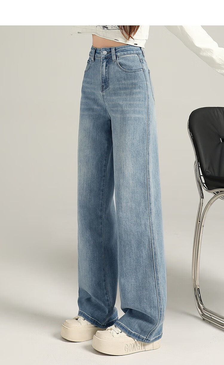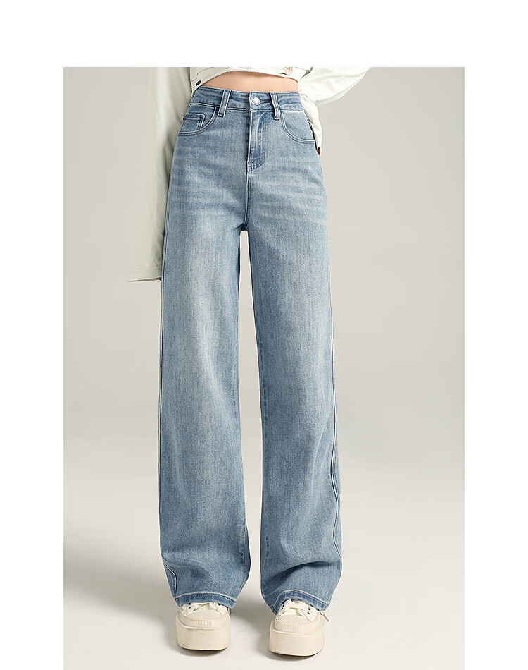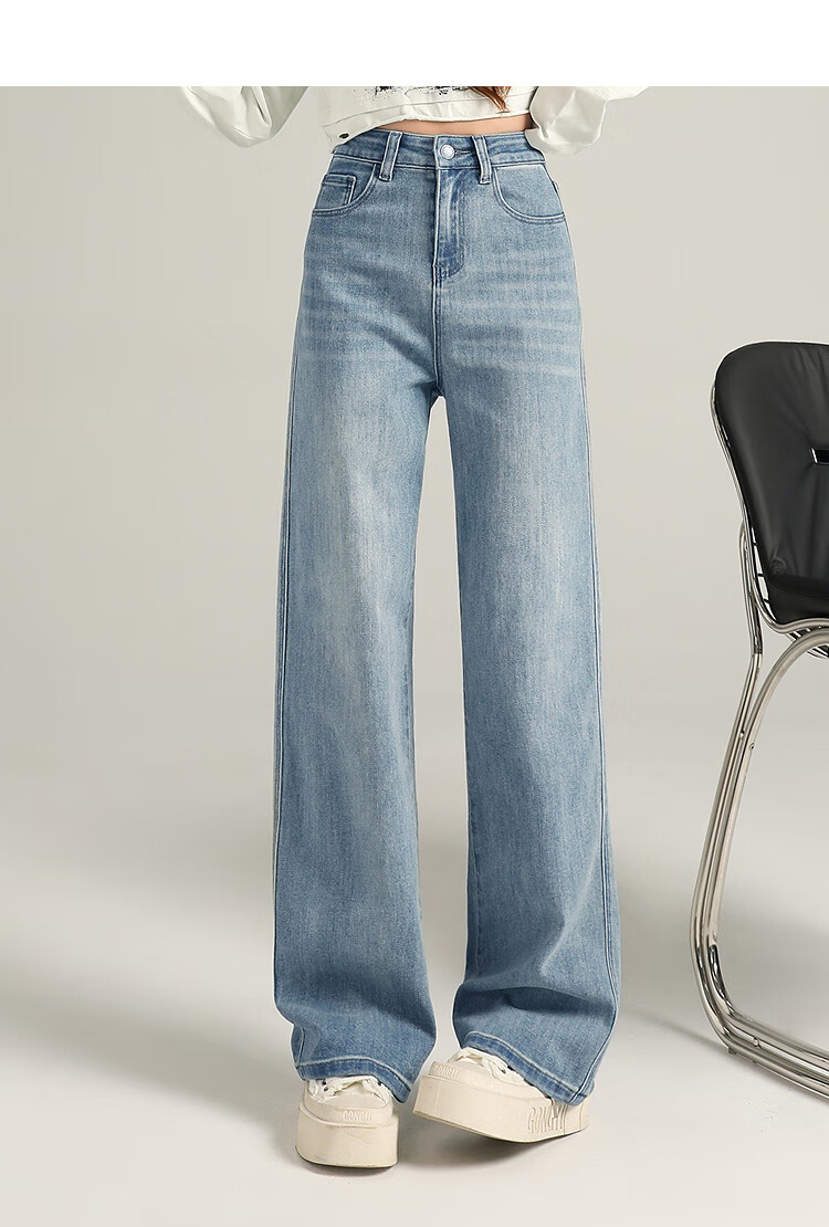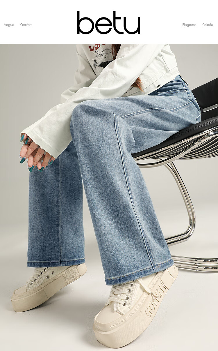 Betu Women's 2025 Winter New Style Jeans Slim High Waist Trendy Straight Jeans Pants Women 2510X07 Light Denim Blue M