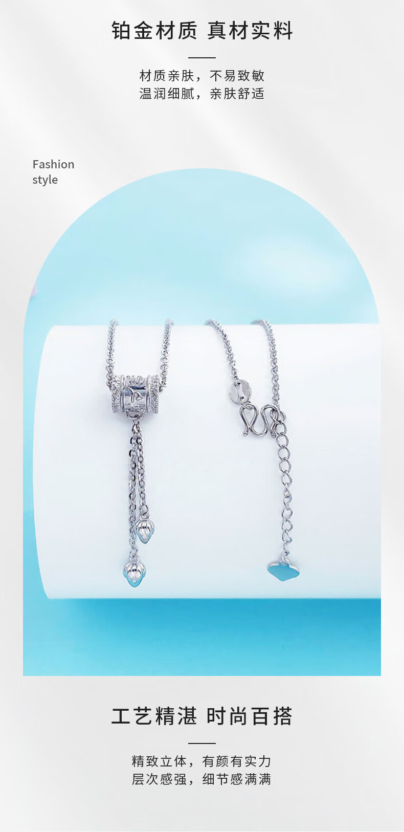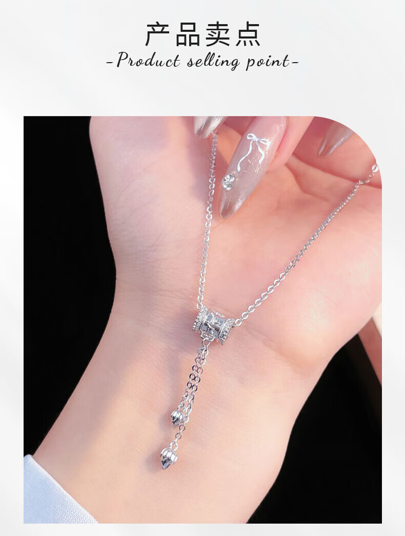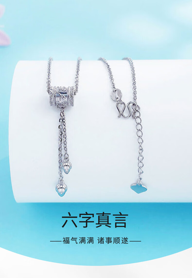 Lao Fengxiang platinum six-character mantra tube bead necklace platinum set chain platinum jewelry white gold about 7g