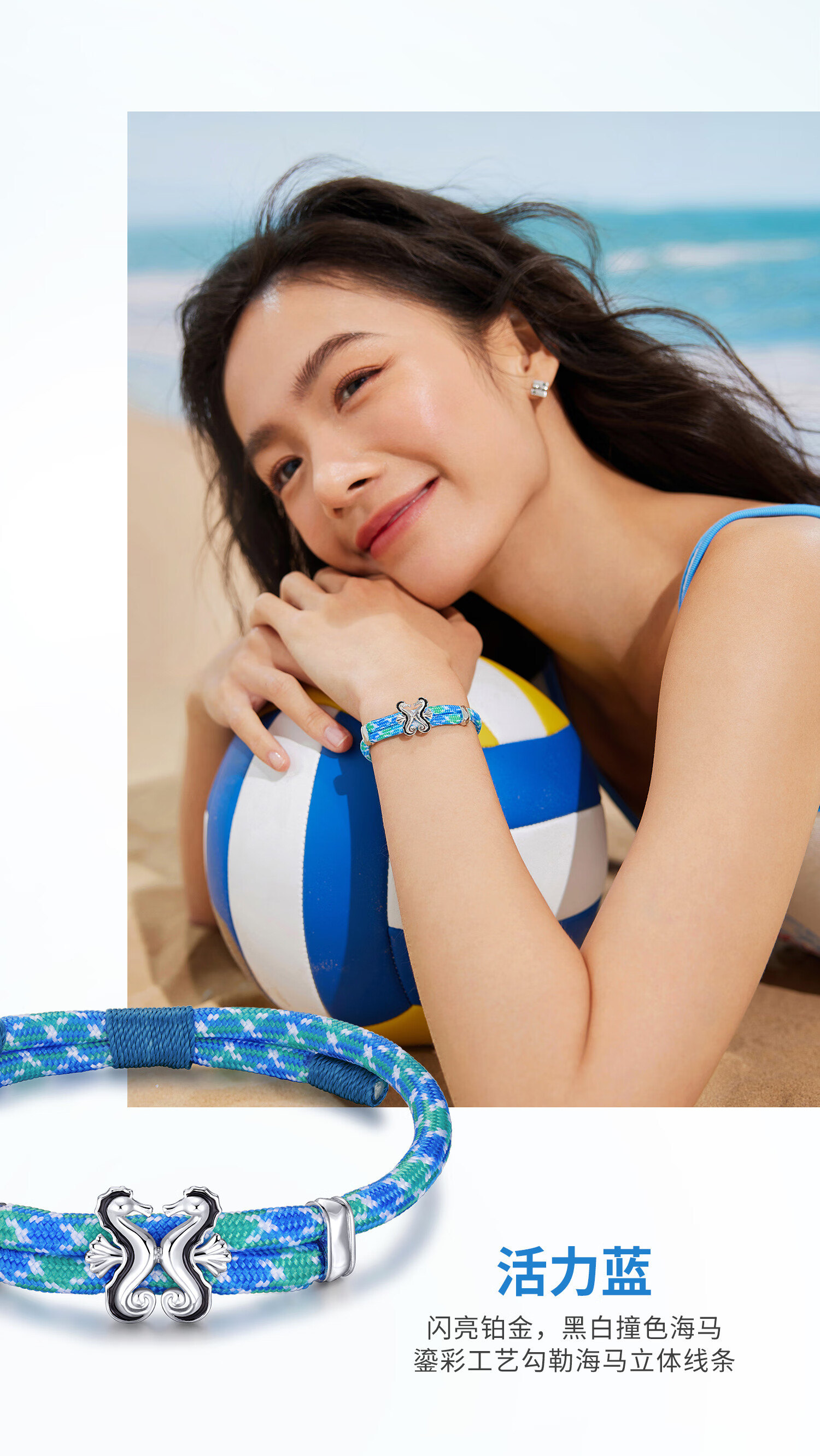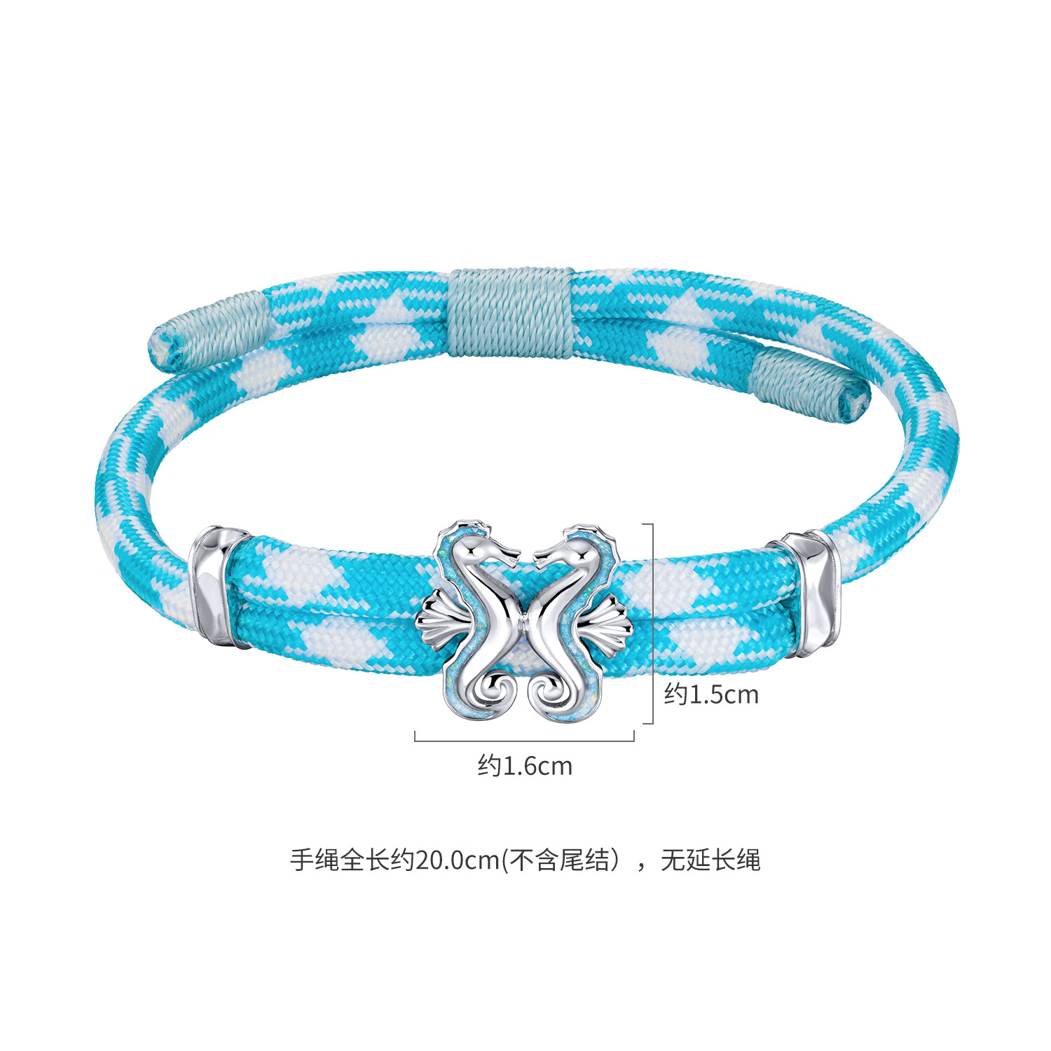 Lukfook Jewelry Platinum Ocean Series Platinum 950 Seahorse Gilded Platinum Bracelet with Eco-Friendly Rope Couple GJT0023DS Gold Weight 9.07g Vibrant Blue