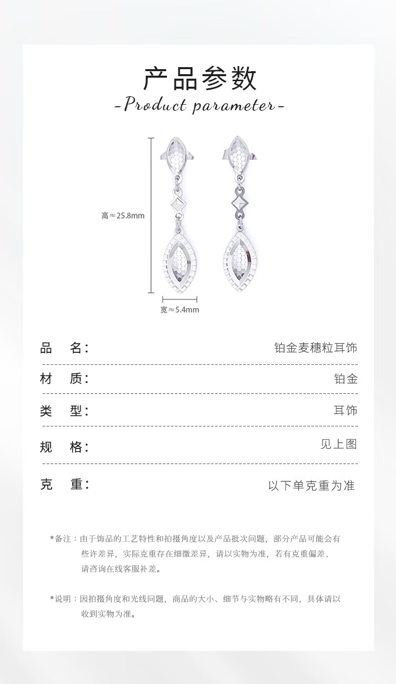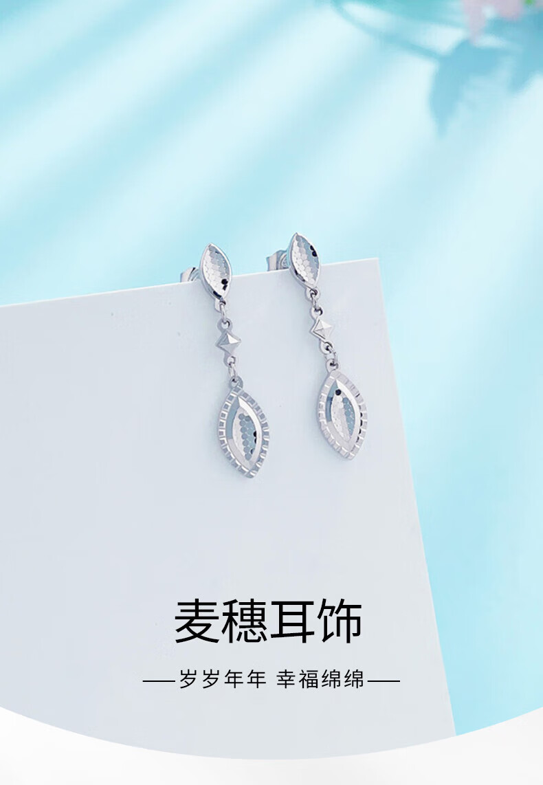 Lao Fengxiang platinum earrings wheat ears earrings as gifts for girlfriends platinum jewelry platinum jewelry about 3.84g