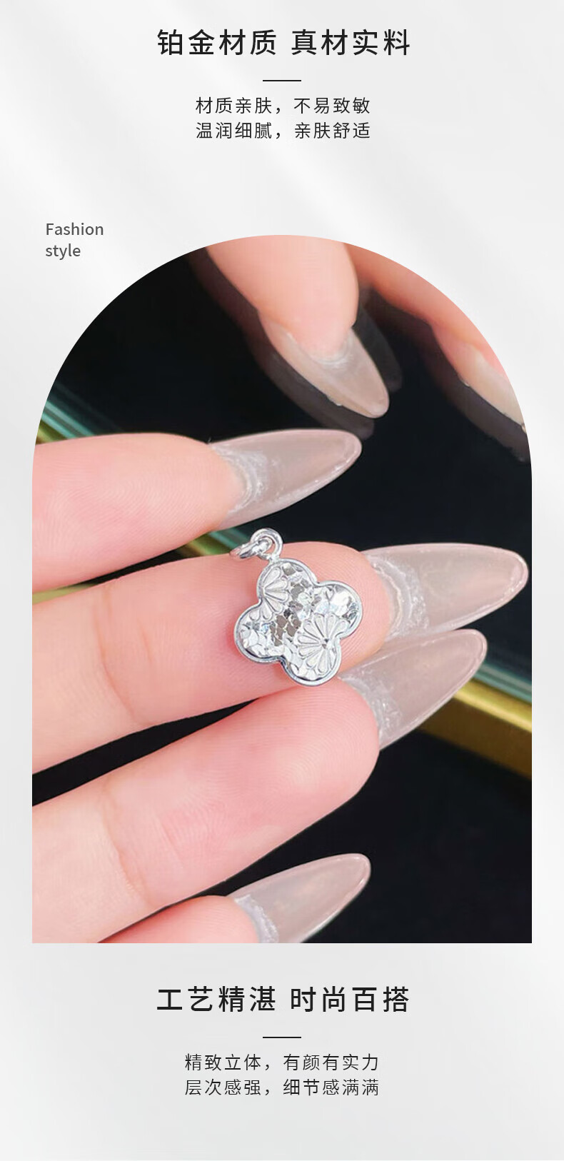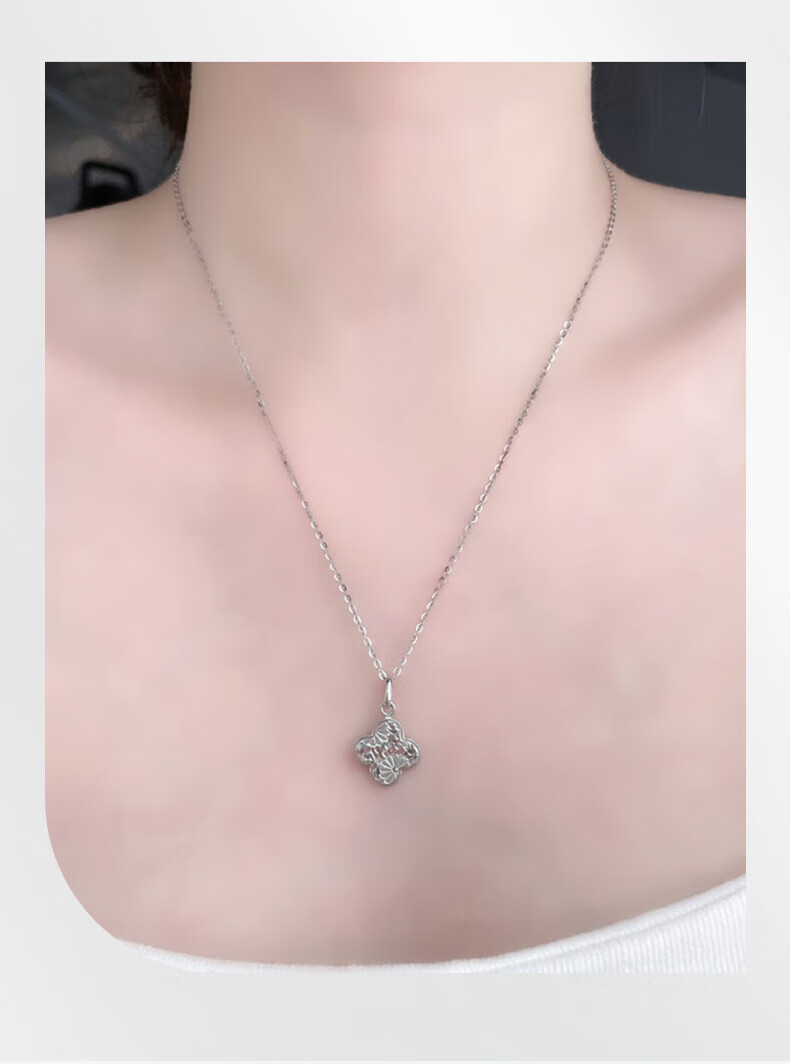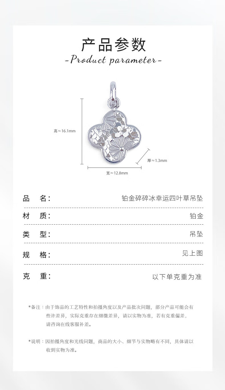 Lao Fengxiang platinum pendant pt950 crushed ice lucky four-leaf clover pendant for women, birthday gift for girlfriend and wife, platinum, about 2.91g