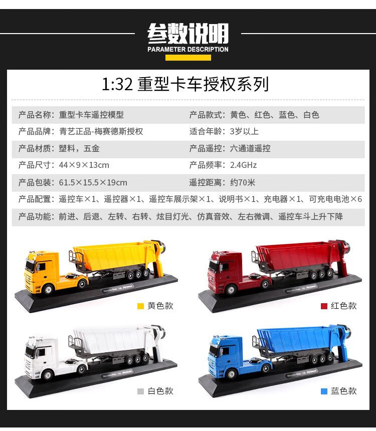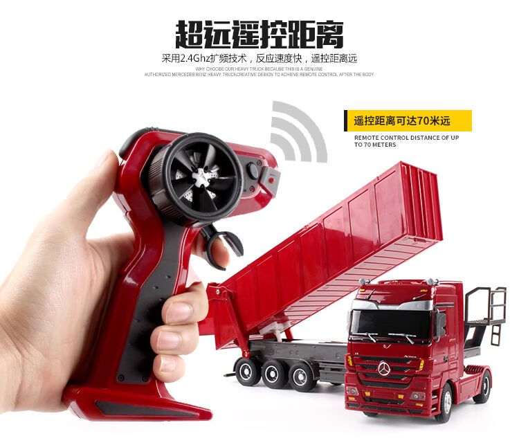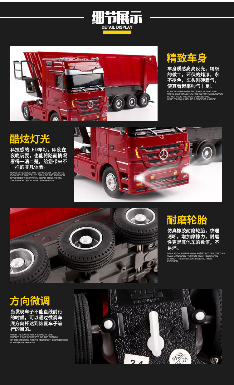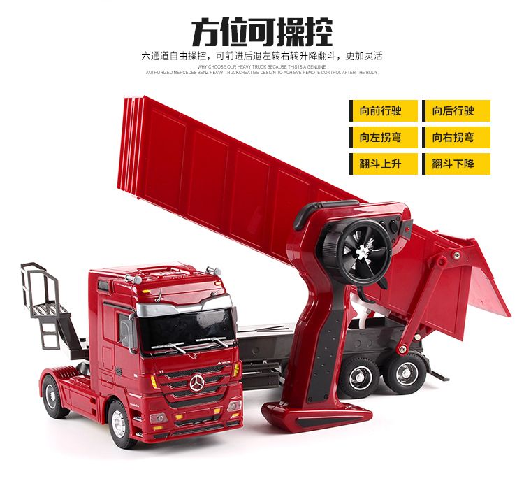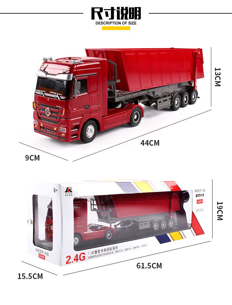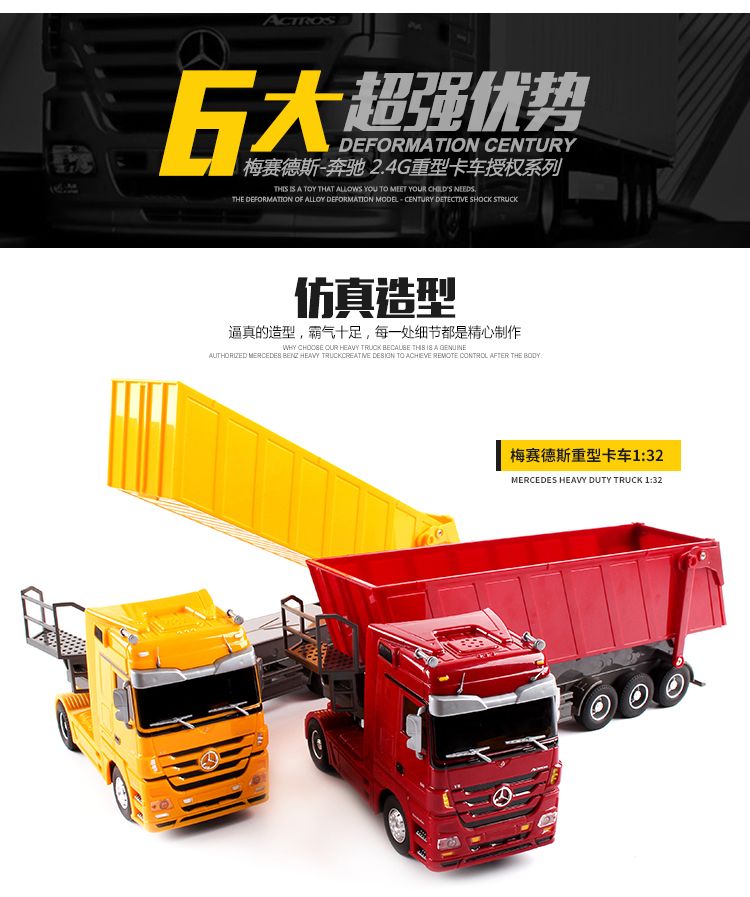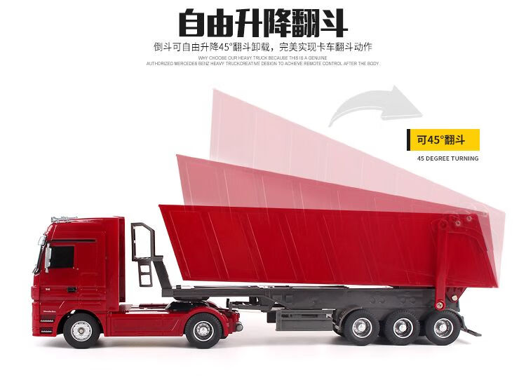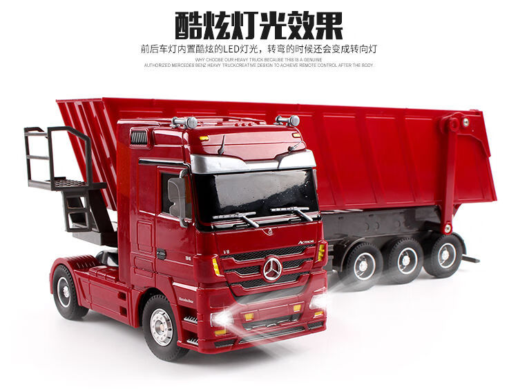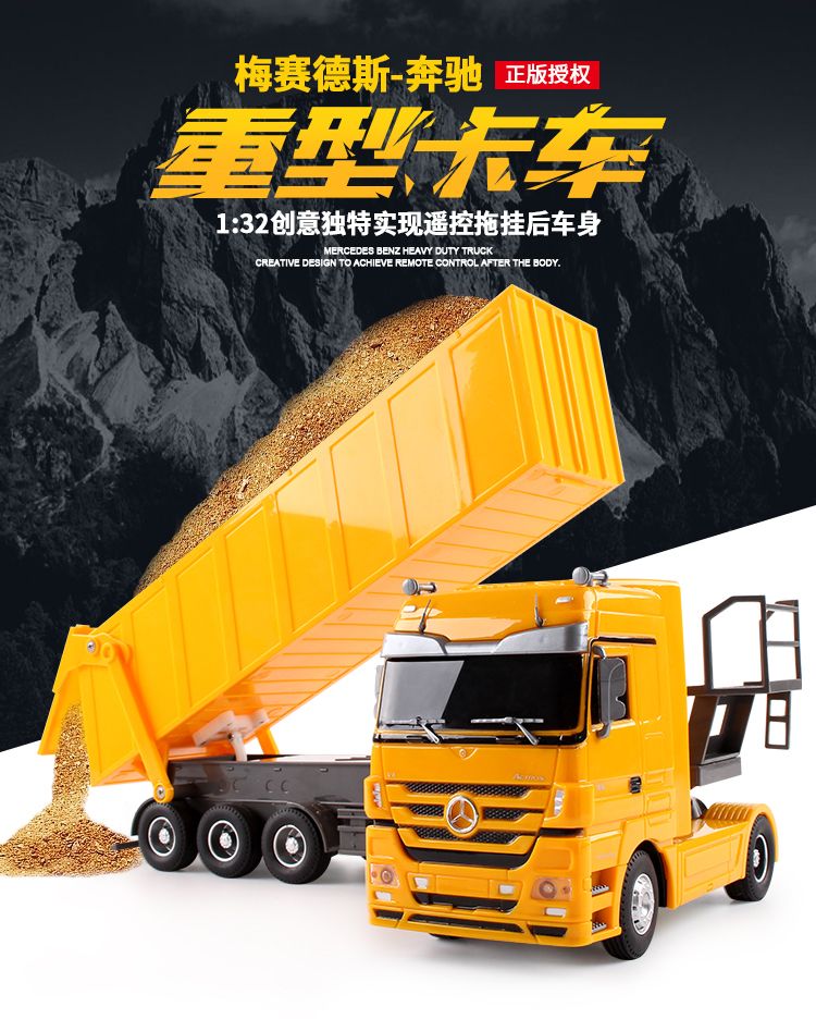 Remote Control Truck Super Heavy Duty Semi-trailer Controlled Container Car Toy Children's Automatic Car Mercedes-Benz Large Truck Remote Control Dump Truck (Yellow) Deluxe Edition (Three Batteries and One Charge)