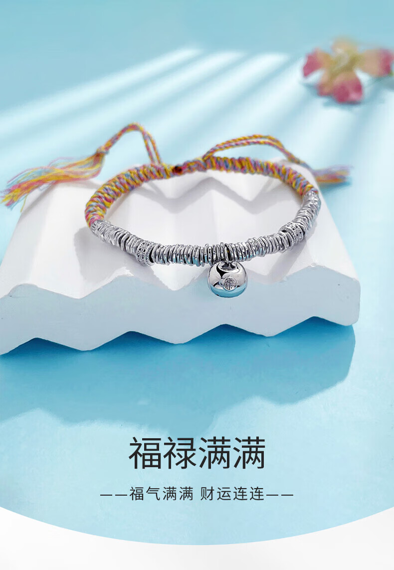 Lao Fengxiang platinum bracelet pt950 small fat lucky coiled rope bracelet birthday gift for girlfriend and wife platinum jewelry platinum about 13.73g