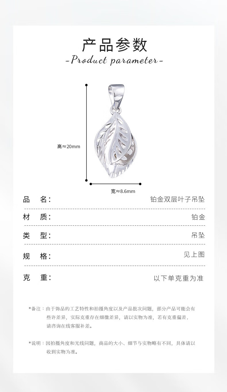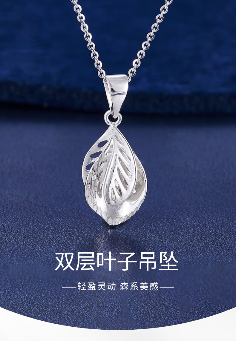 Lao Fengxiang platinum pendant pt950 double leaf pendant necklace for girl's birthday, platinum jewelry for girlfriend and wife, platinum, about 1.39g