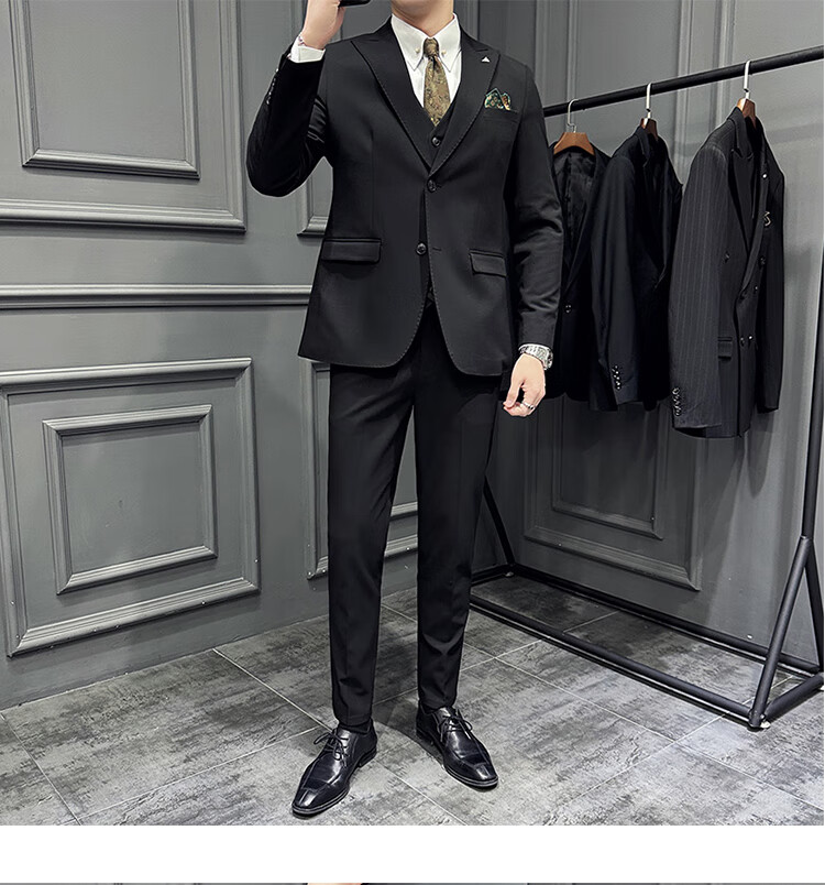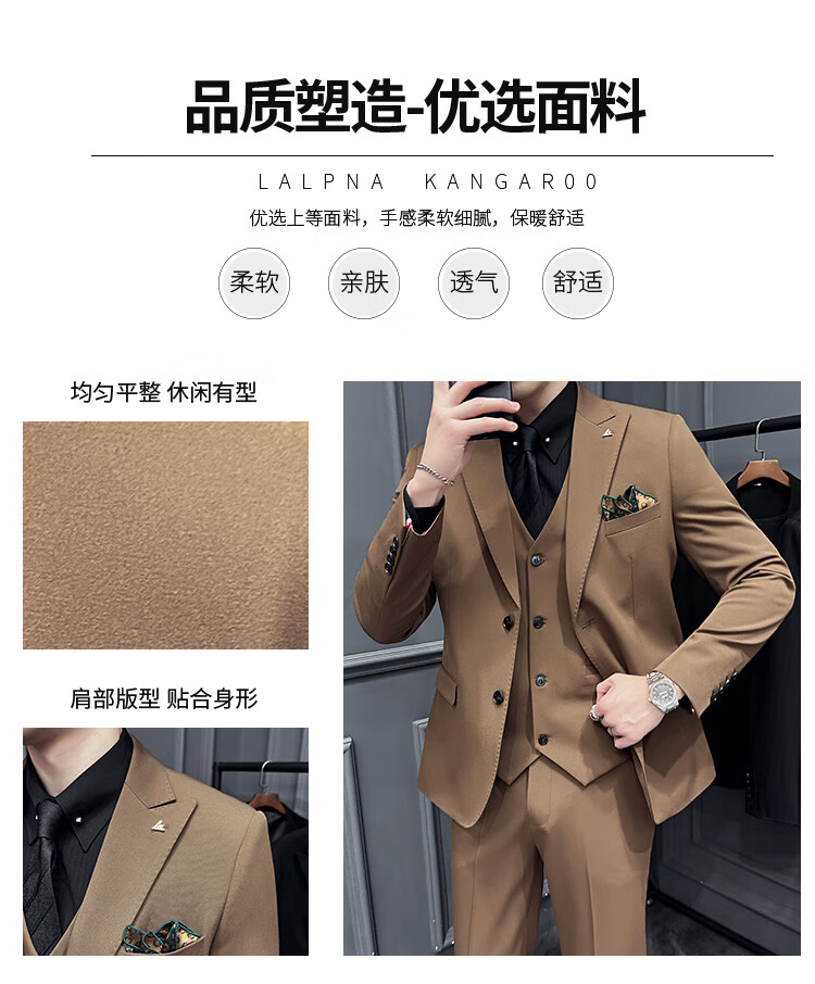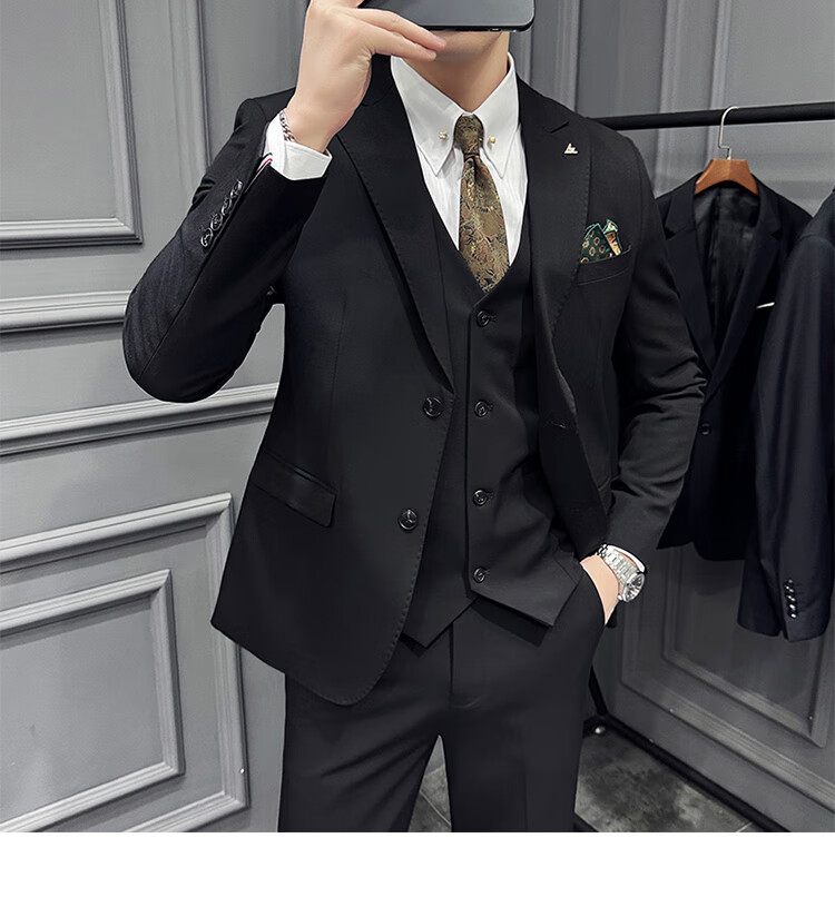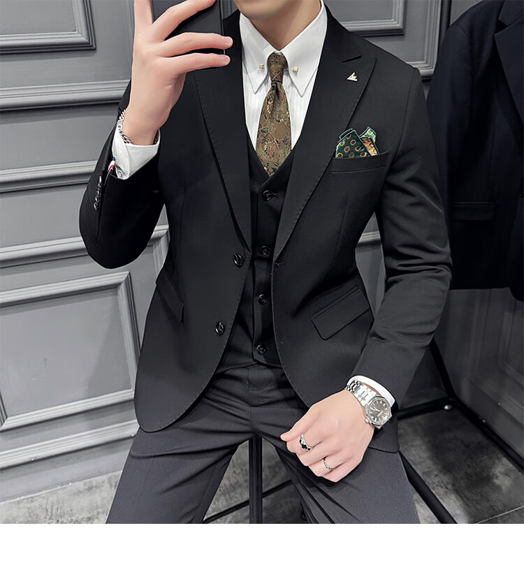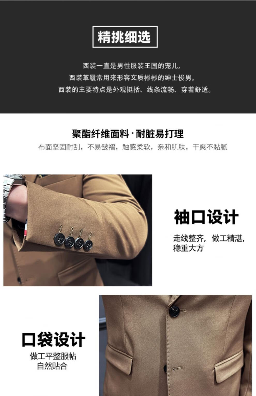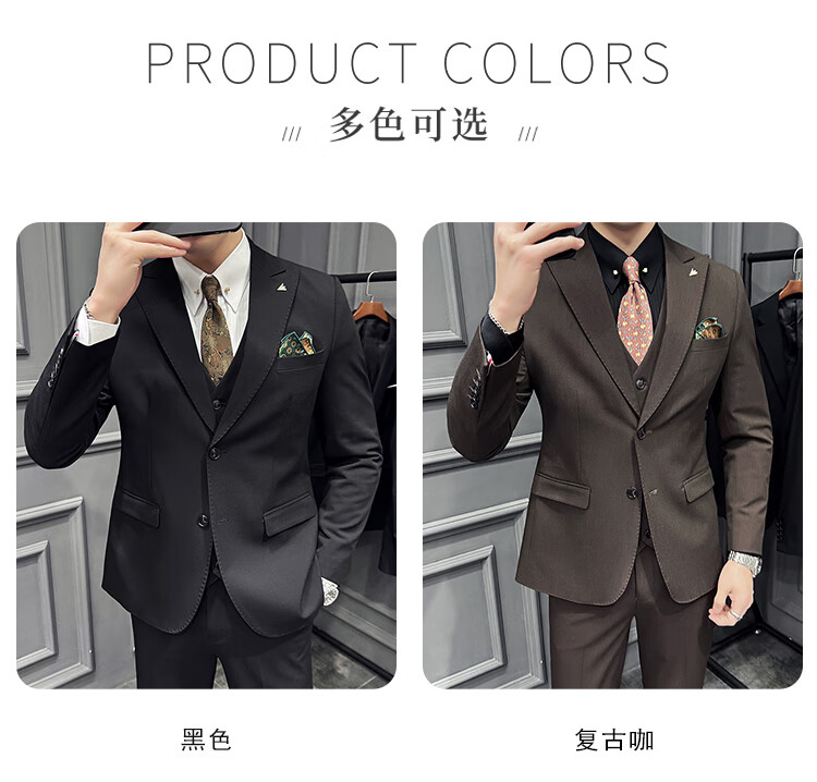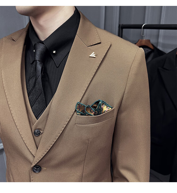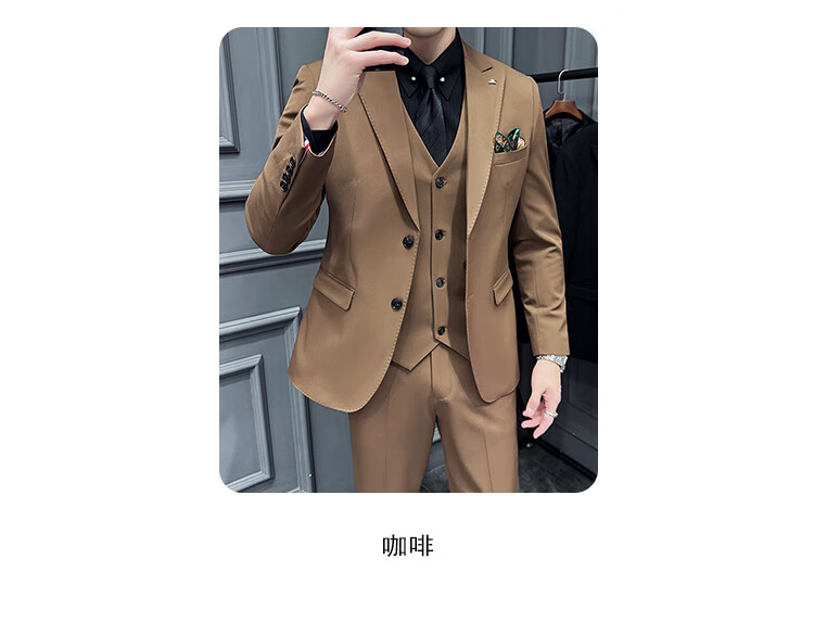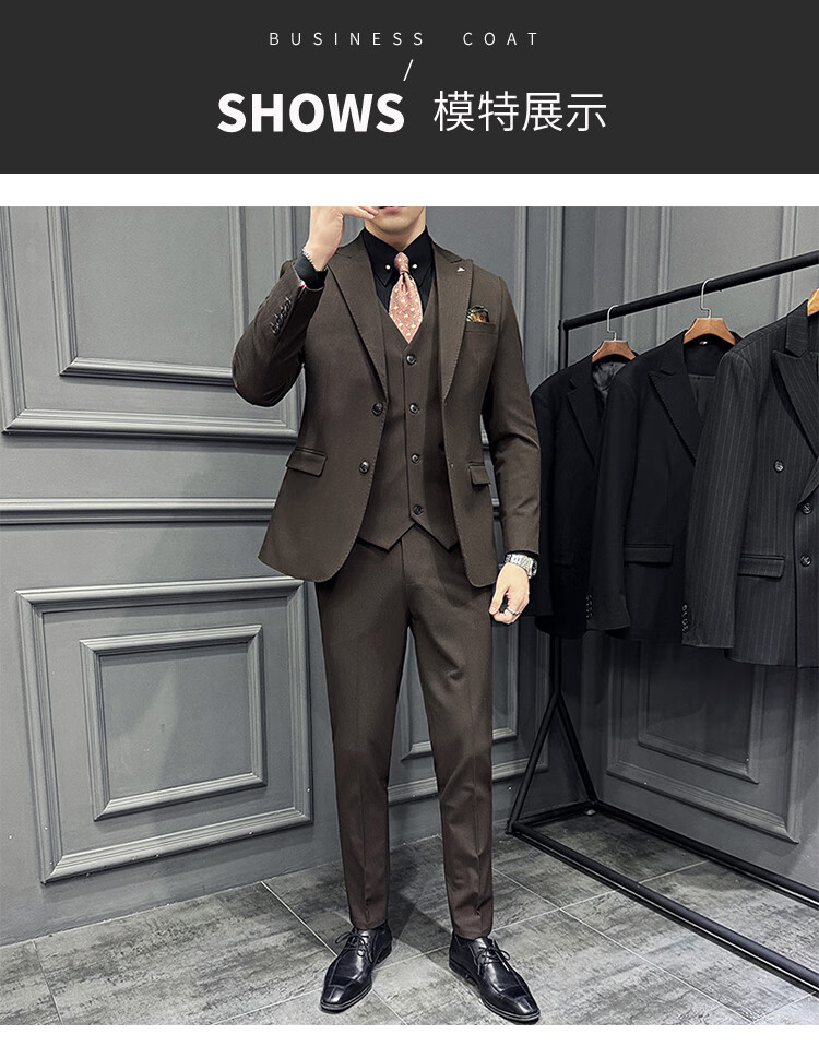 Hengyuanxiang Spring and Autumn Suit Men's Jacket Groom Wedding Dress Coffee Color Business Work Professional Formal Suit Suit Men Coffee Color (suit + vest + trousers, black shirt tie) S 46