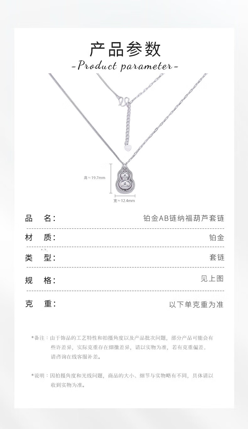 Lao Fengxiang platinum necklace pt950AB chain Nafu gourd set chain as a birthday gift for girlfriend and wife platinum jewelry platinum about 10.64g