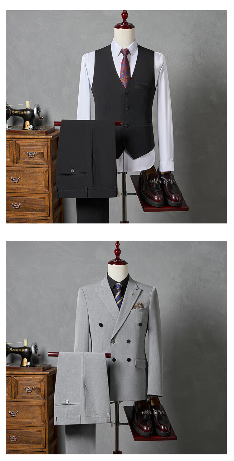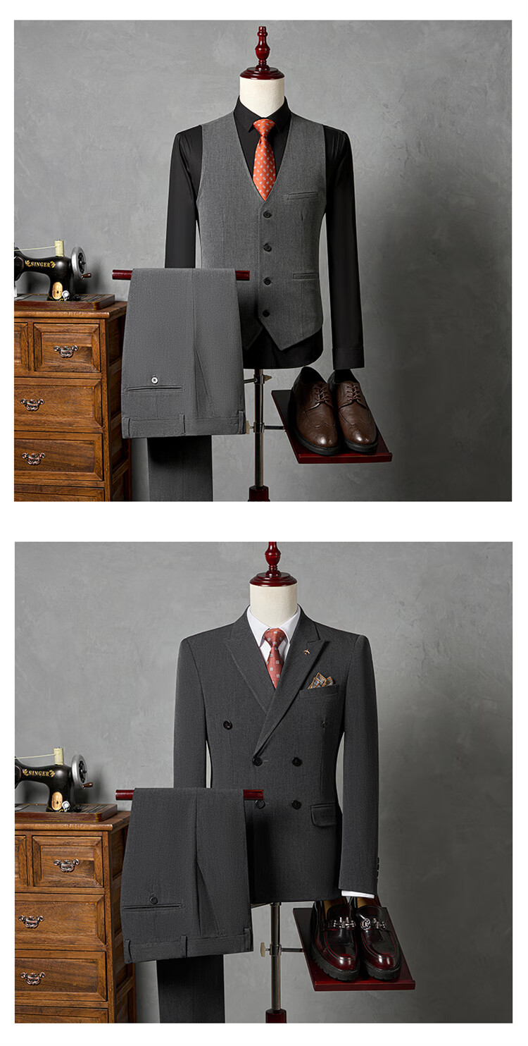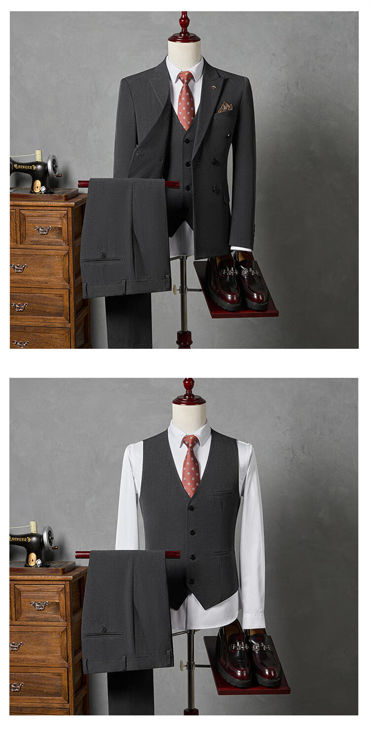 Hengyuanxiang Men's Suit Suit 2025 Autumn New Black Formal Groom Wedding Double-breasted Suit Jacket Three Pieces Black Suit + Pants + Vest Tie M 90-110Jin Jin is equal to 0.5 kg