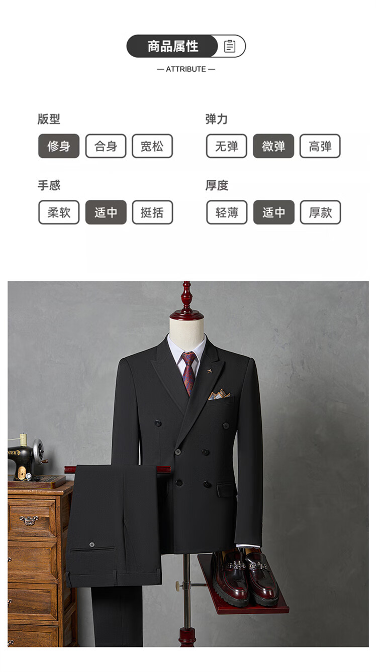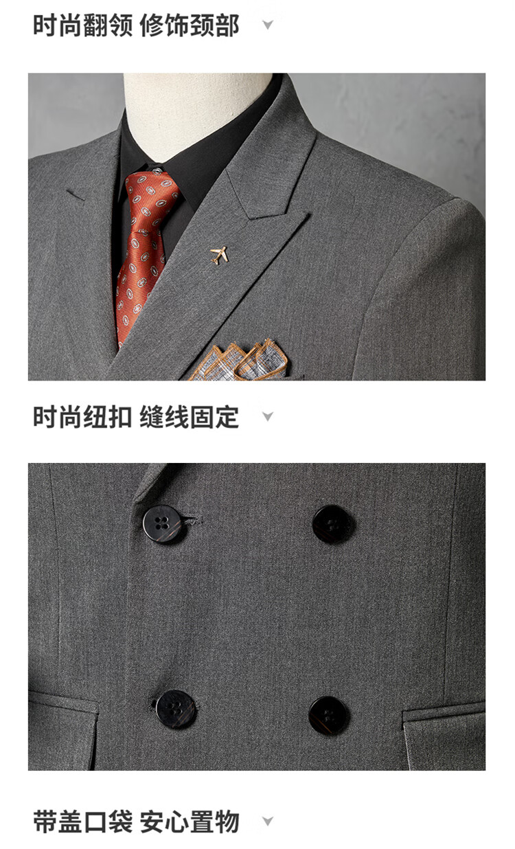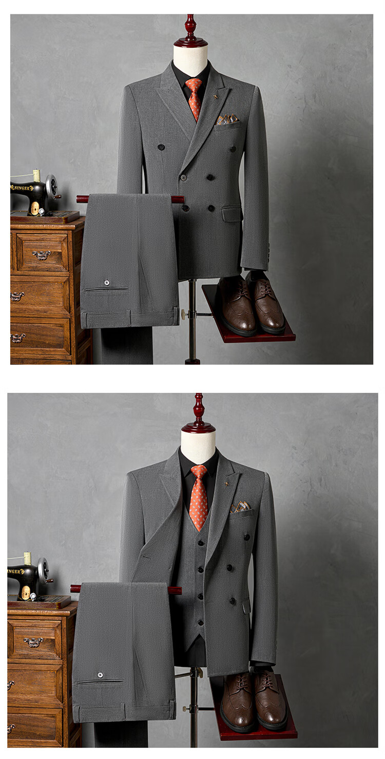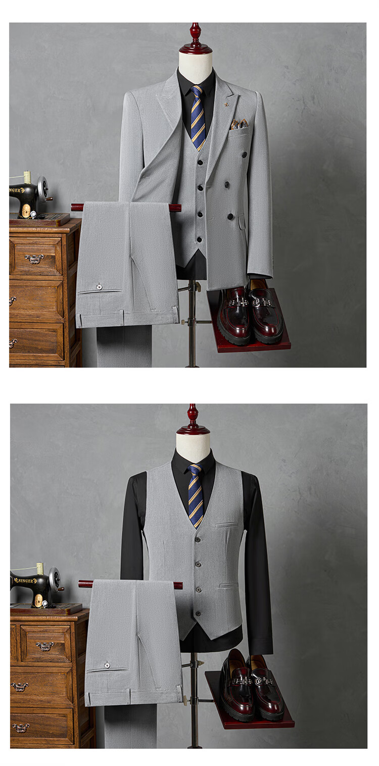 Hengyuanxiang Men's Suit Suit 2025 Autumn New Black Formal Groom Wedding Double-breasted Suit Jacket Three Pieces Black Suit + Pants + Vest Tie M 90-110Jin Jin is equal to 0.5 kg