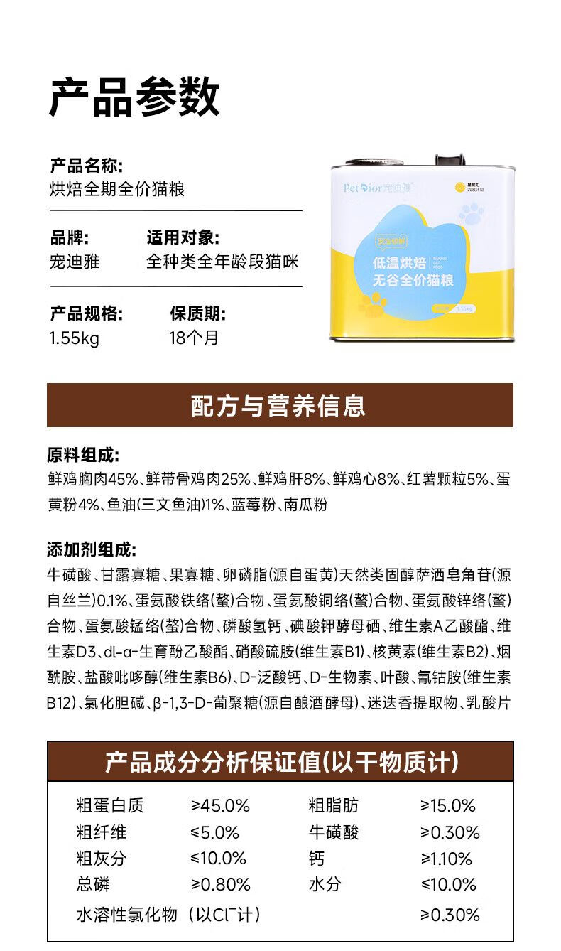 Petdior Cat Food Baked Canned Cat Food Main Food Fresh Meat Nutritional Weight Gain Portable Sample Sample Pack 0 Grain Crunch 1.55kg Family Pack