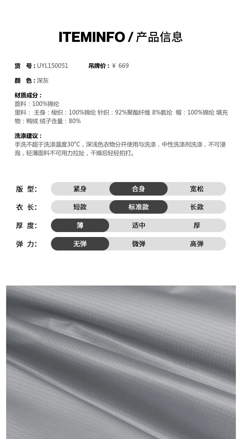 UR new winter women's futuristic quilted zipper down jacket UYL150051+ dark gray S