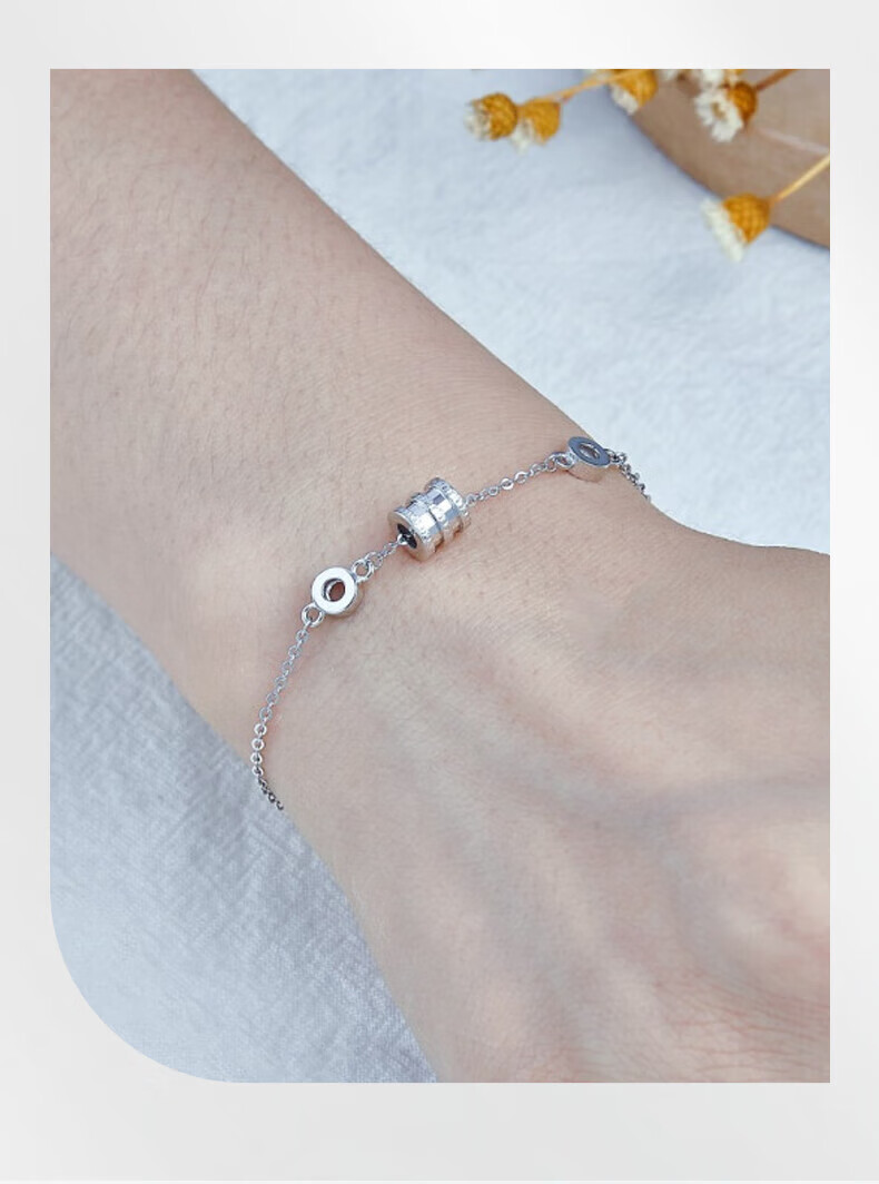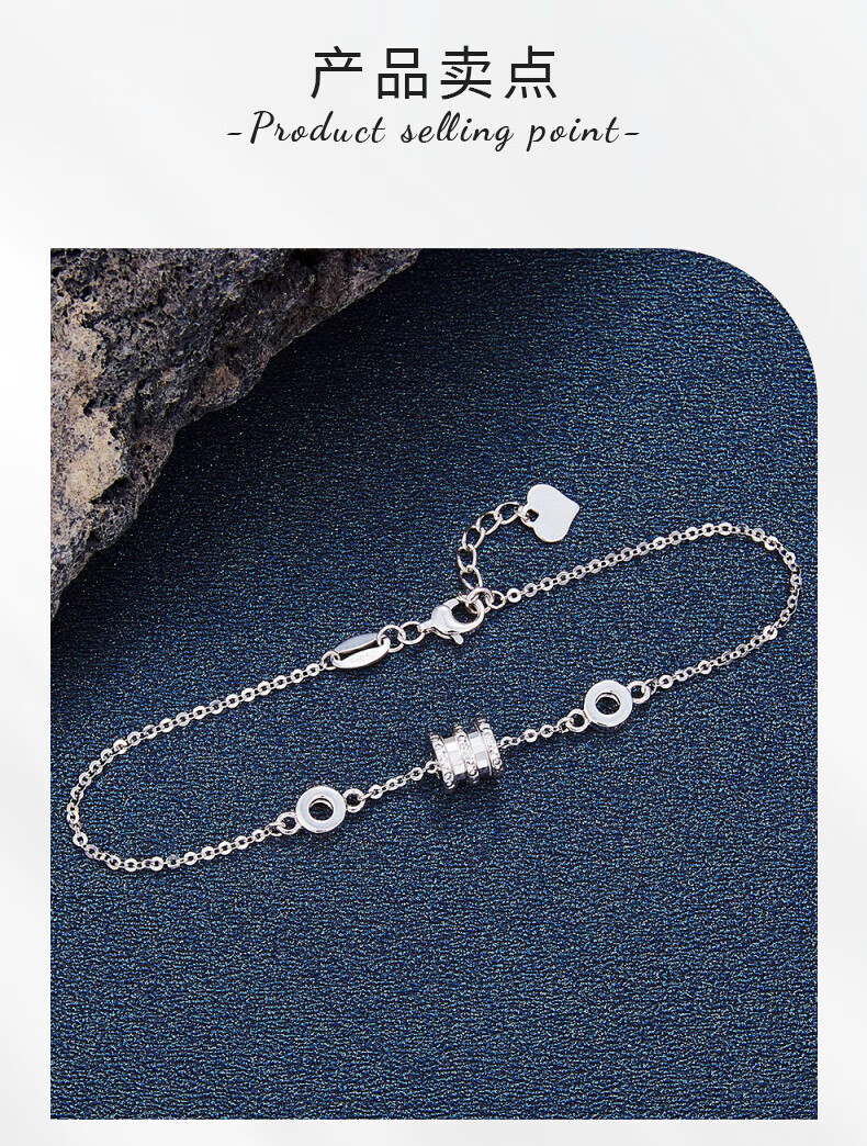 Lao Fengxiang platinum small waist double ring adjustable bracelet as a birthday gift for girlfriend platinum jewelry white gold about 3.8g