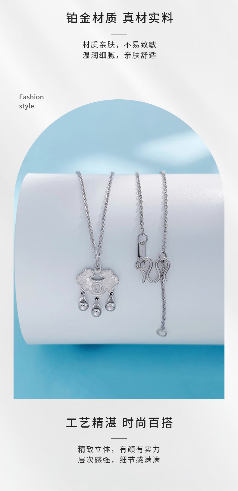 Lao Fengxiang platinum peace and luck bell fish scale blessing lock chain as a gift to your girlfriend as a gift to others platinum jewelry white gold about 4.48g