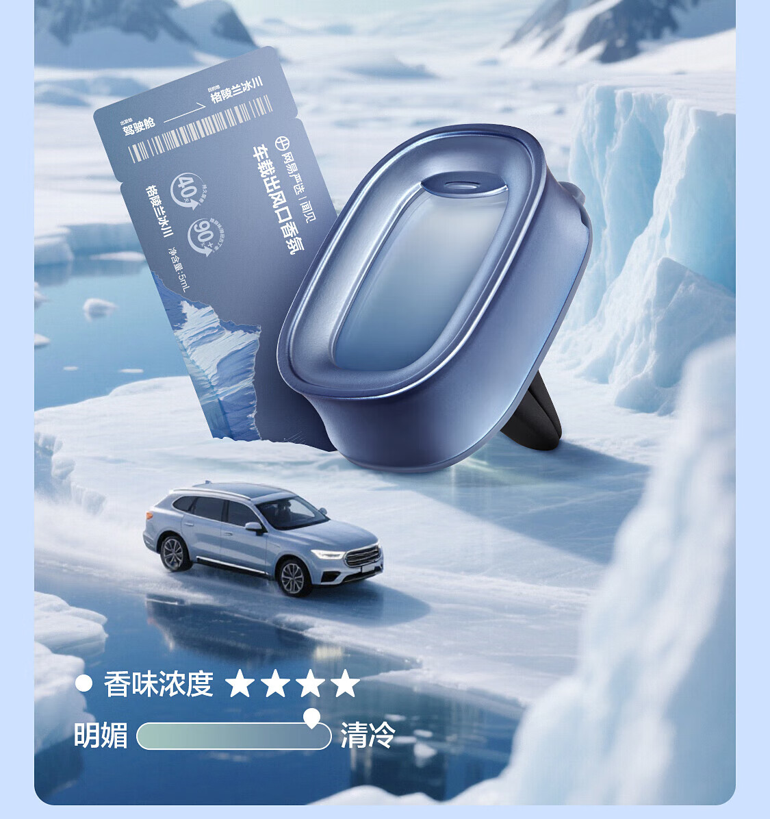 NetEase carefully selects air outlet fragrance, car aromatherapy ornaments, car perfume, new car formaldehyde removal, freshness and odor removal, small flying window, Greenland Glacier
