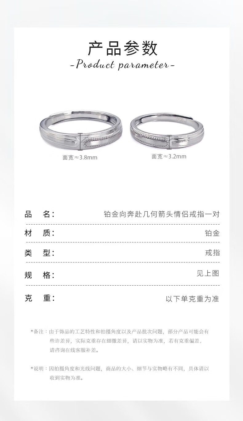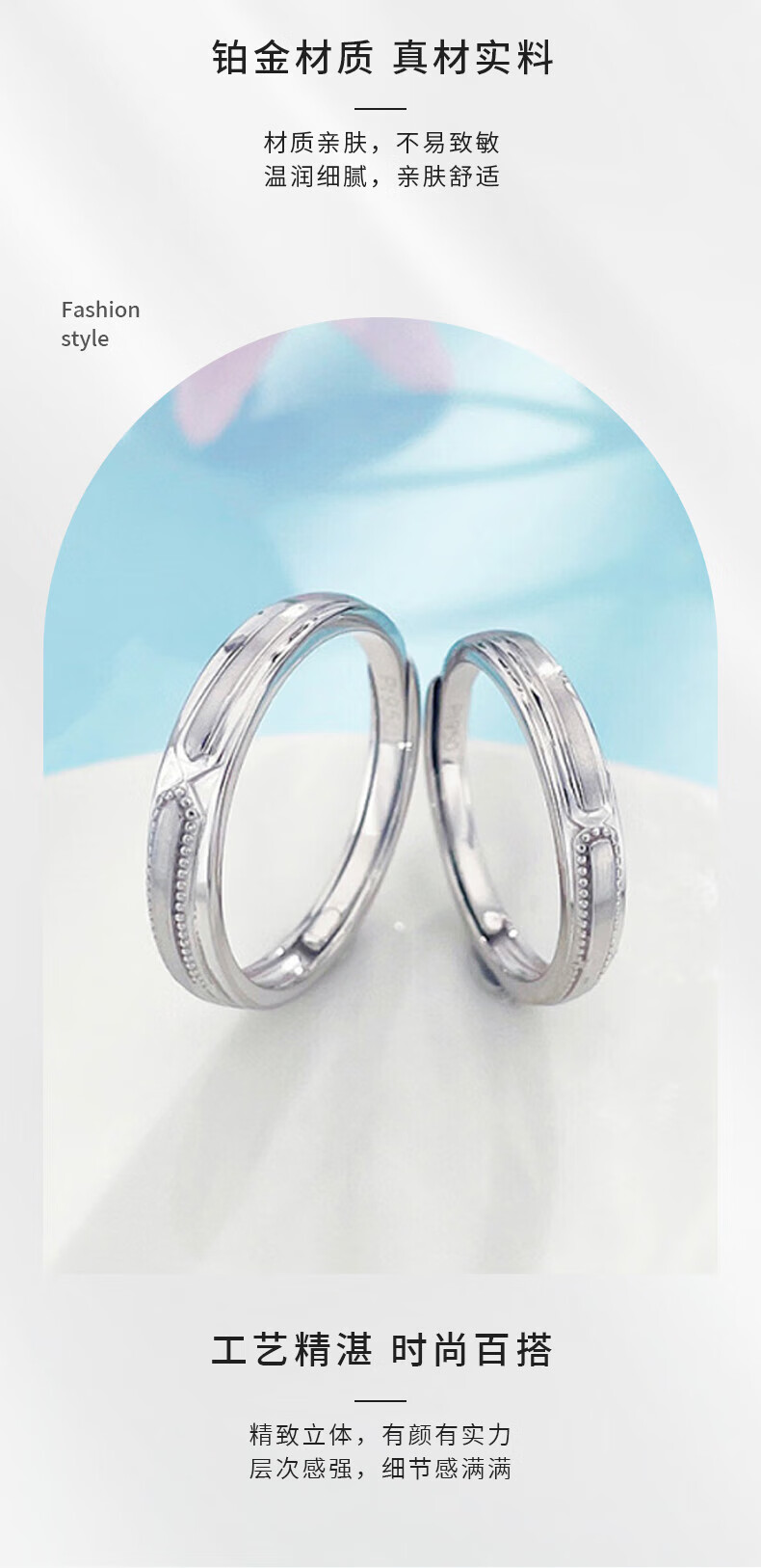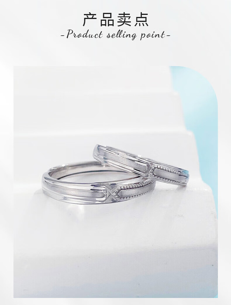 Lao Fengxiang platinum ring pt950 two-way for couples to propose rings, birthdays, platinum jewelry for boyfriend and girlfriend, platinum, about 8.42g, one pair