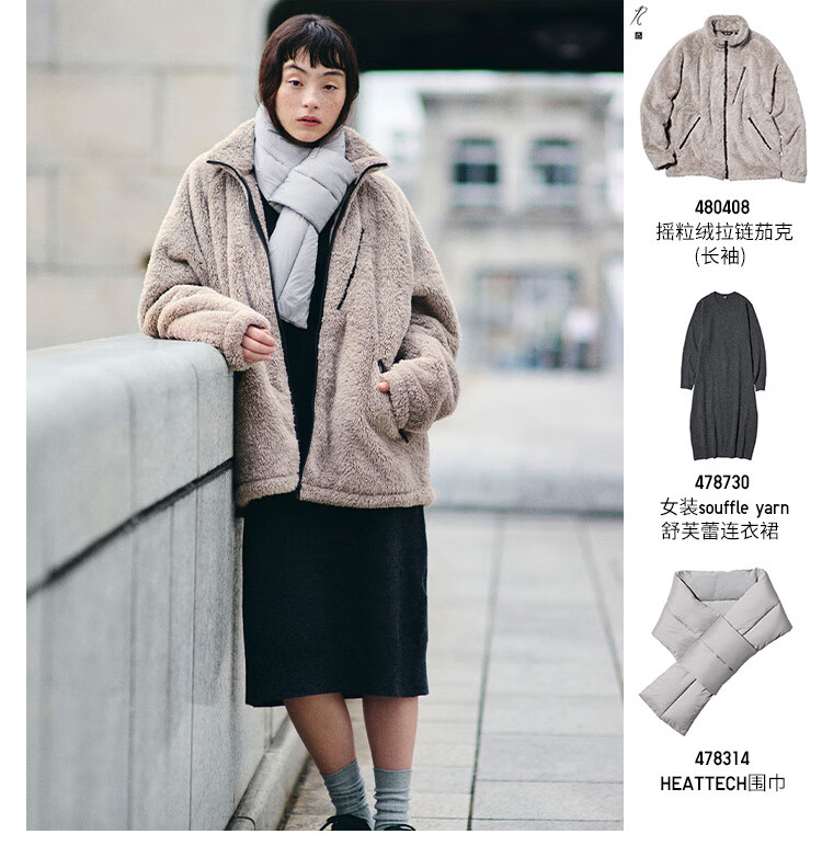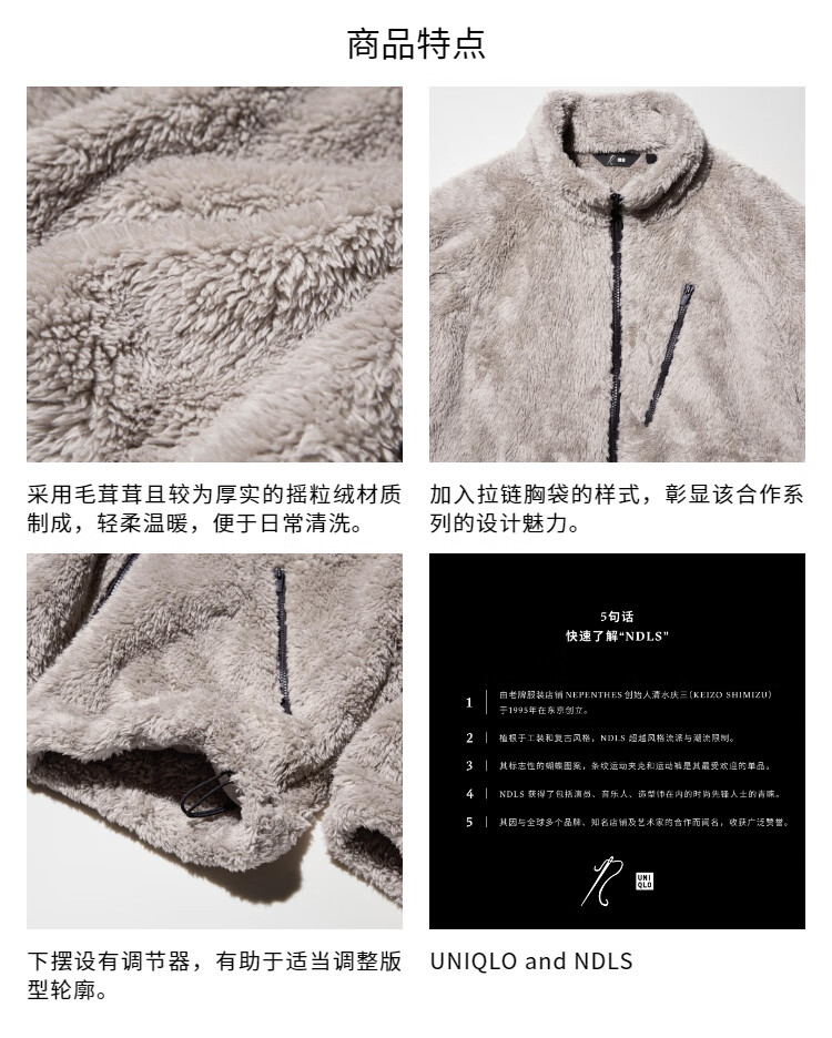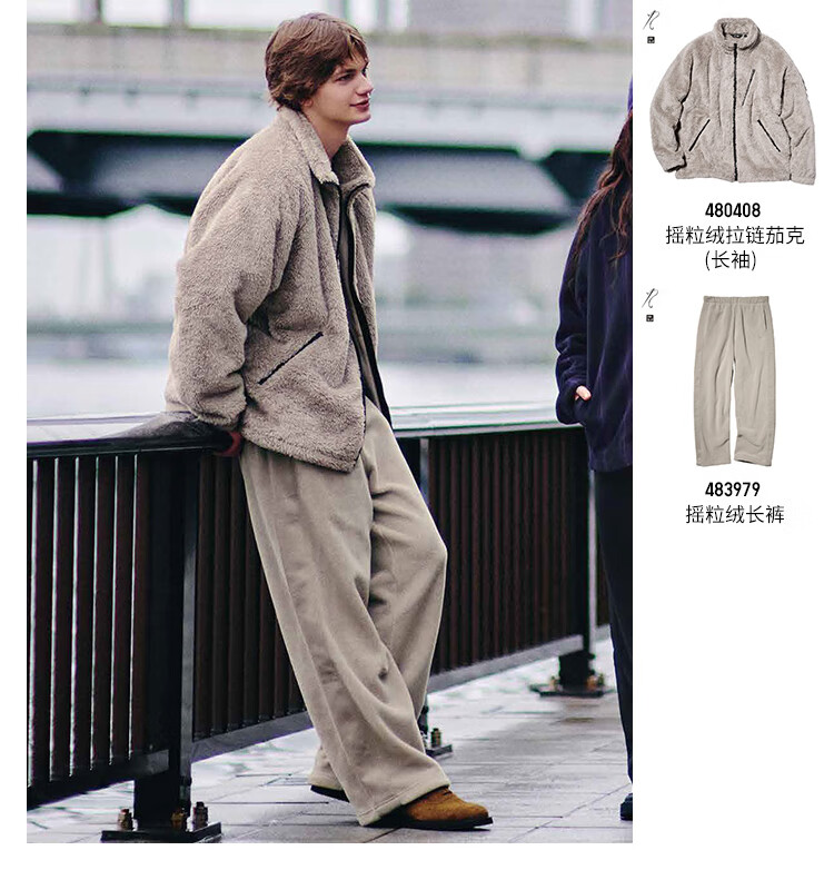 UNIQLO cooperation model/men's and women's polar fleece zipper jacket/coat jacket 25 autumn and winter new style 480408 31 beige L