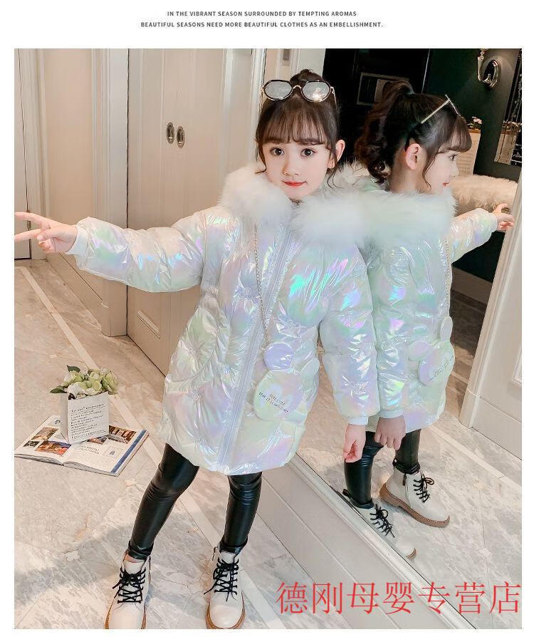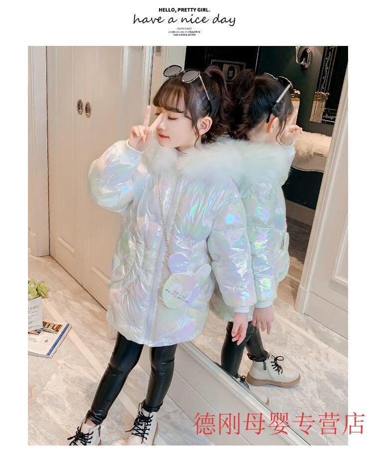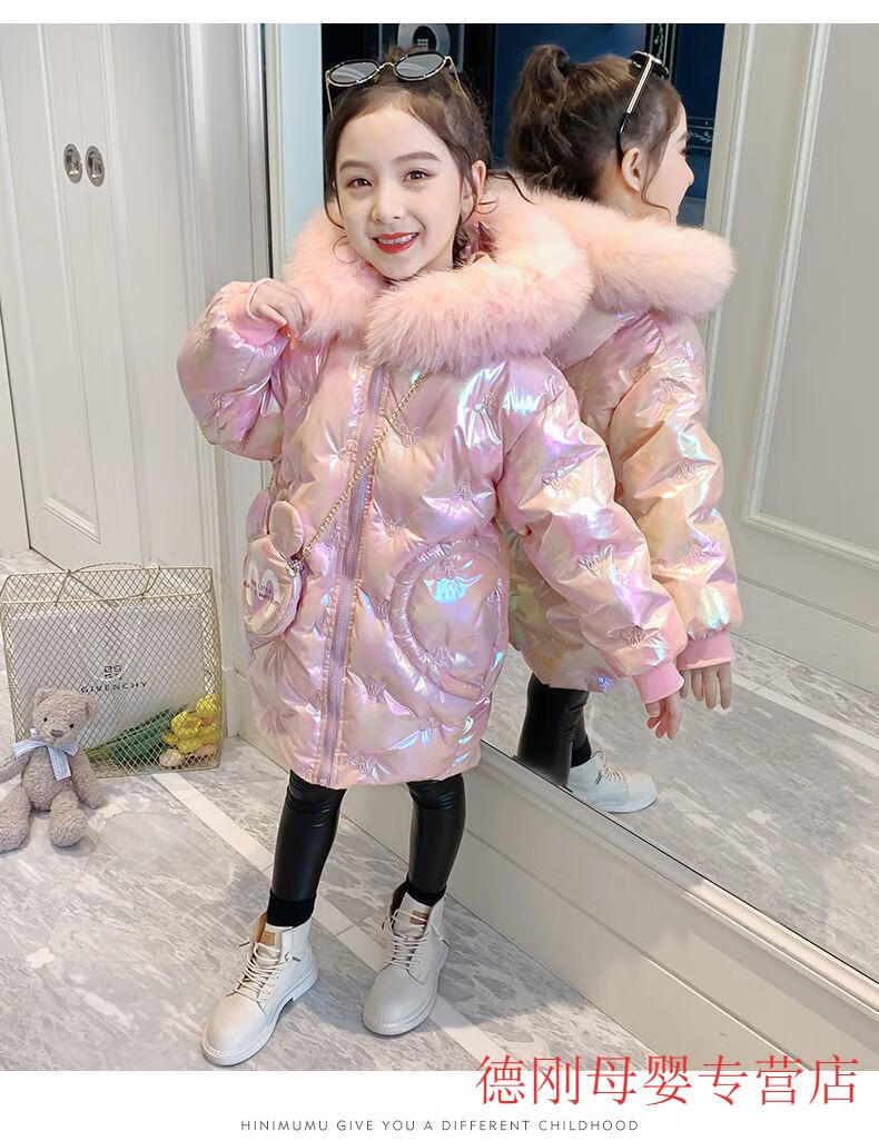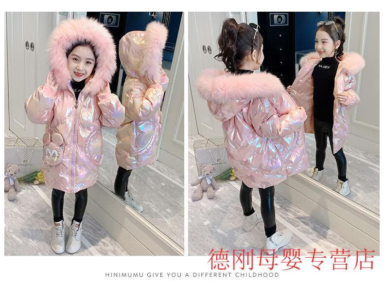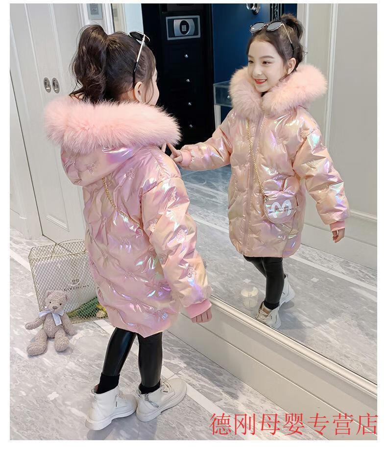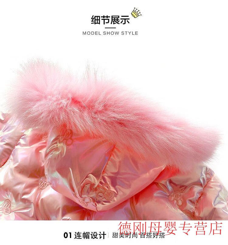 G.duck Girls Down Jacket 2025 New Winter Clothes Plus Velvet Thickened Winter Cotton Clothes Disposable Cotton Jackets Girls Korean Style Jackets Pink 150 cm Recommended Height 135-145cm