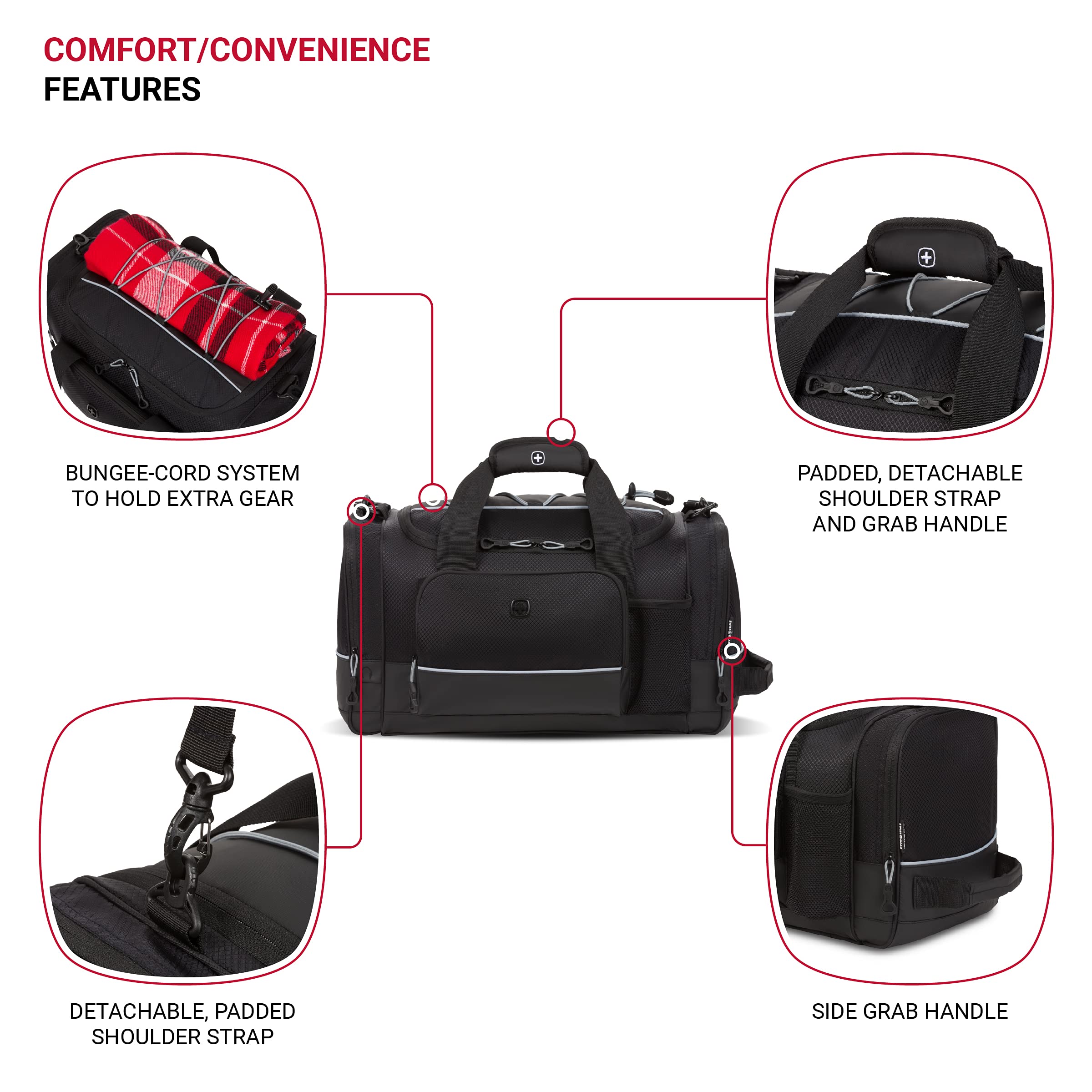 SWISSGEAR APEX Duffel Bag Gym Bag Travel Large Bag Black Gray/Black Dobby 20 Inch