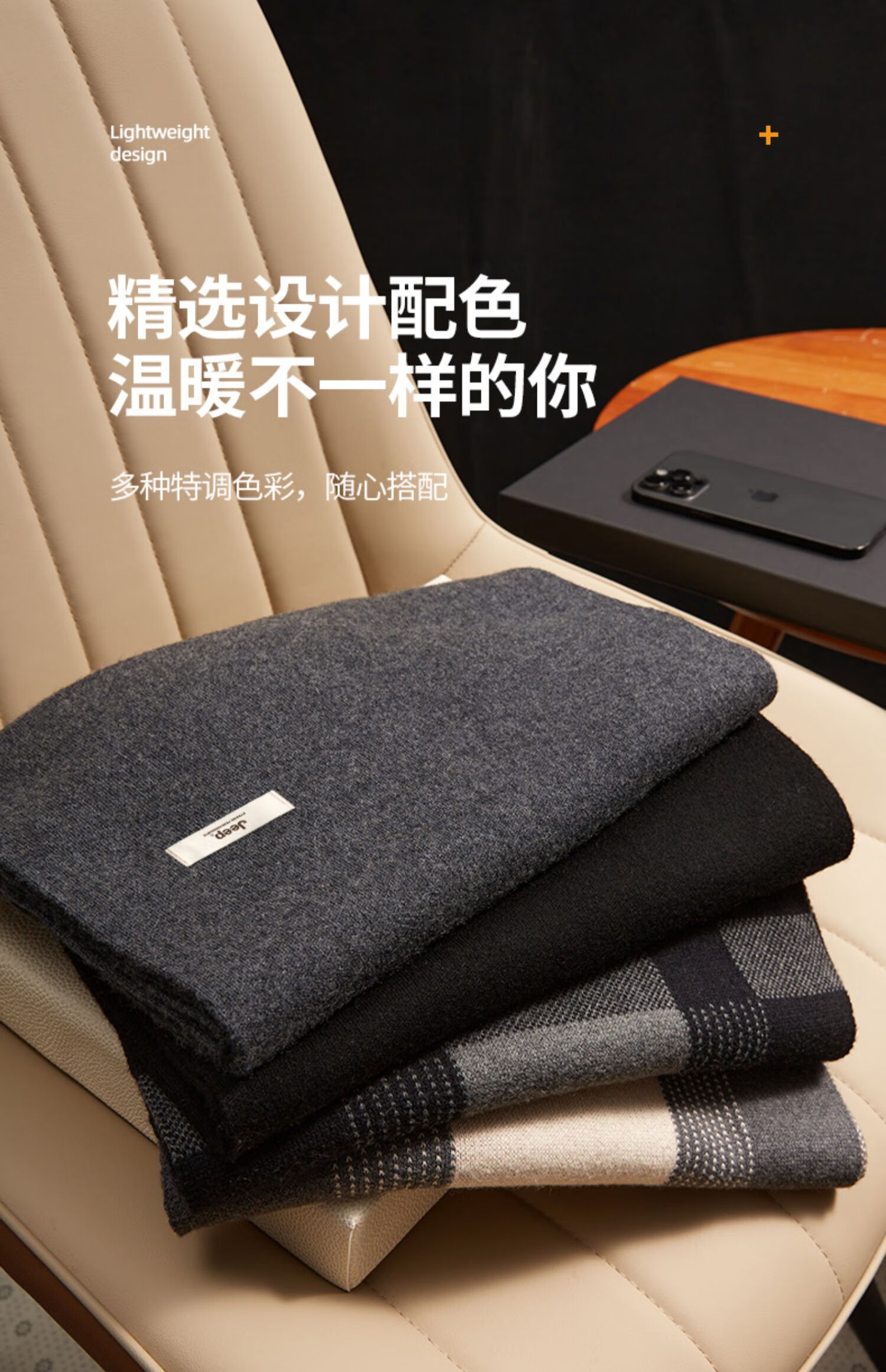 JEEP Jeep Scarf Men's Birthday Gift Gift Box for Boyfriend Winter Warm Knitted Autumn and Winter Scarf Men Dark Gray Gift Box No Specifications