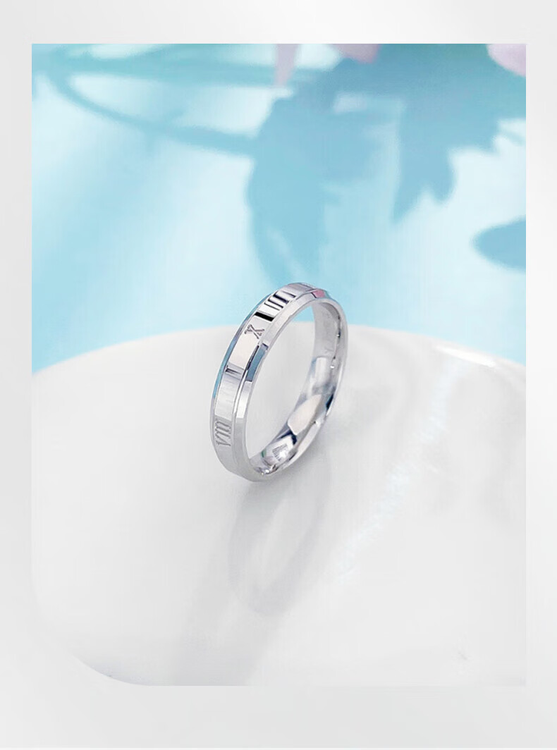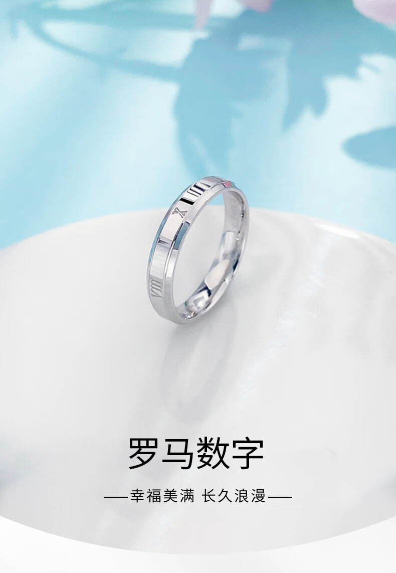 Lao Fengxiang platinum ring with letters and Roman numerals, gift for girlfriend, platinum jewelry, white gold, about 6.82g