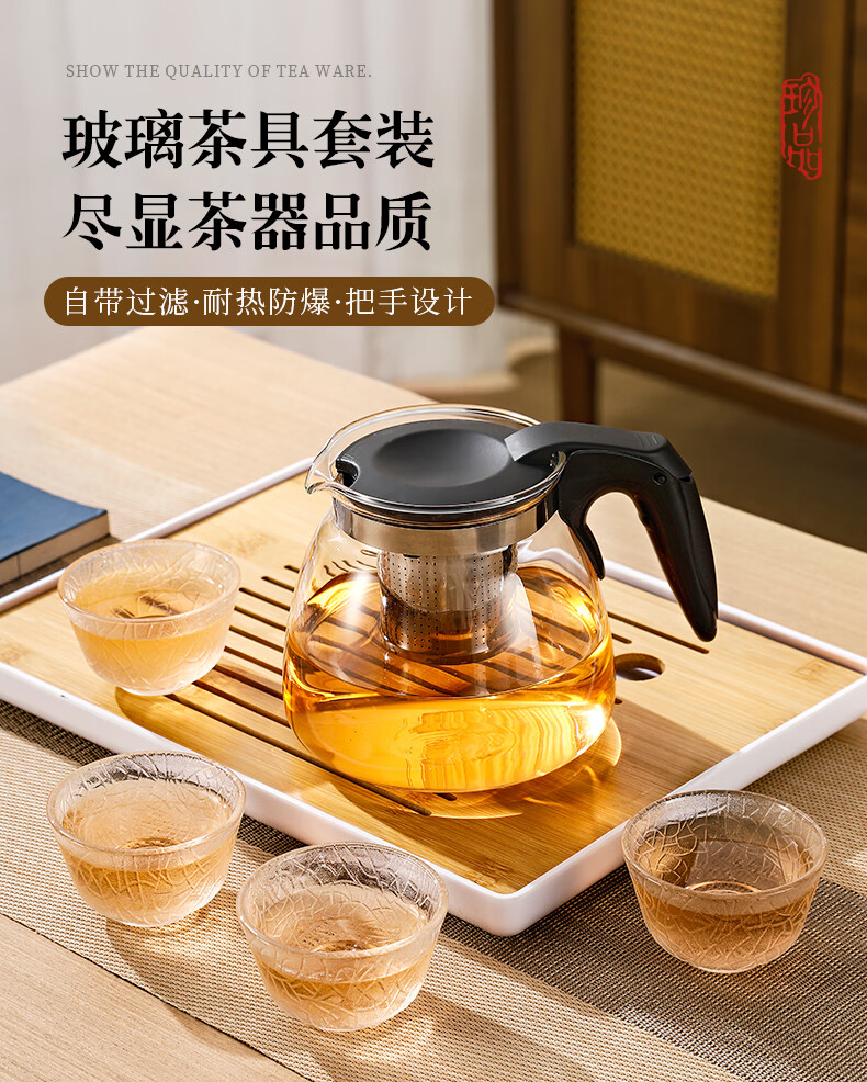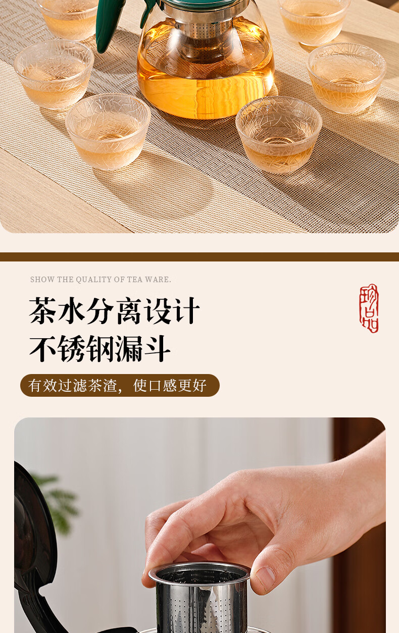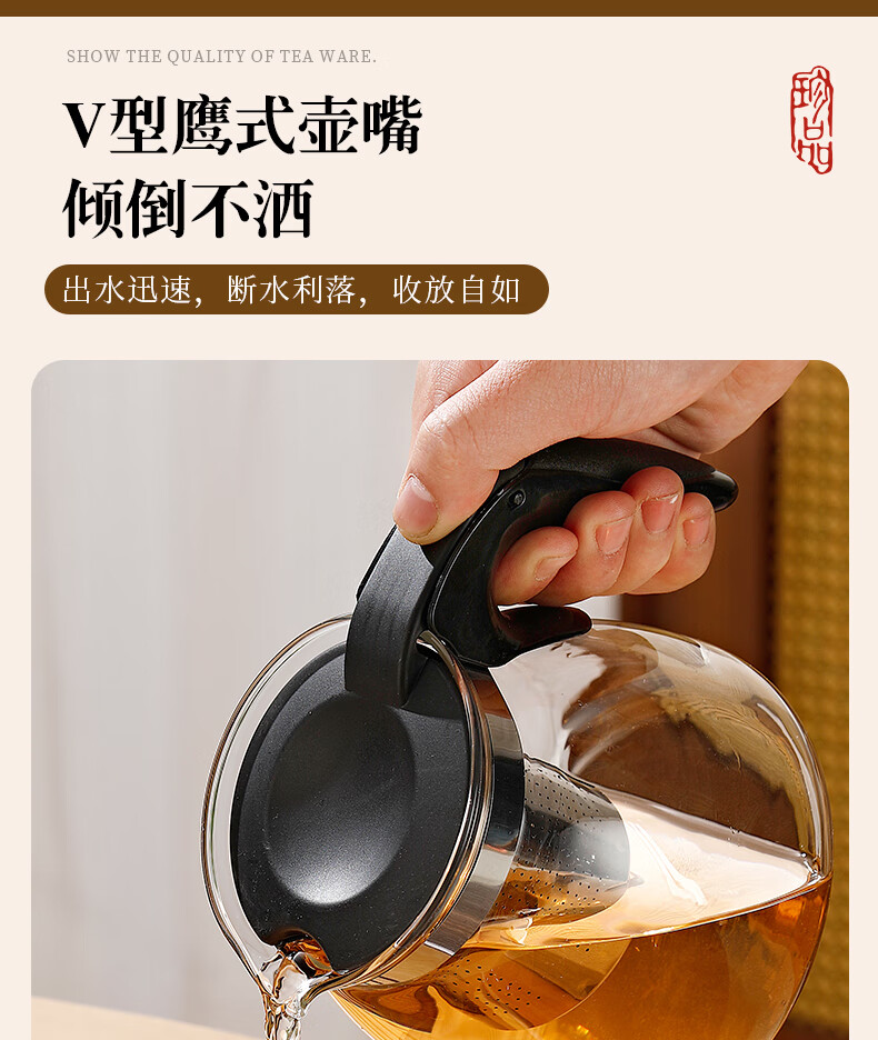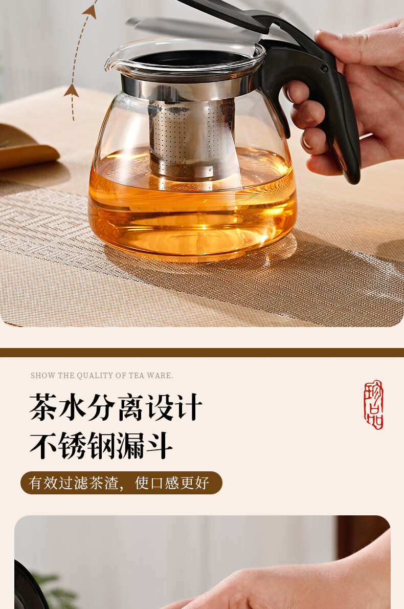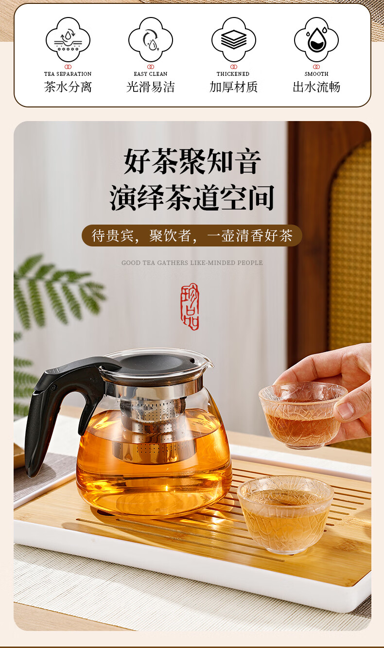 Tea bar machine, water dispenser, glass electric kettle, teapot, tea table, electric tea stove, thermal kettle, single pot with filter, high temperature resistant tea set, large capacity kettle, teapot, tea water separation, black half handle style