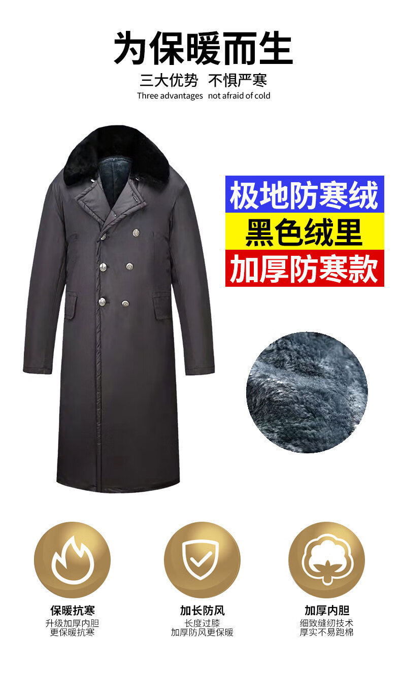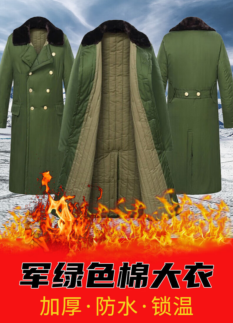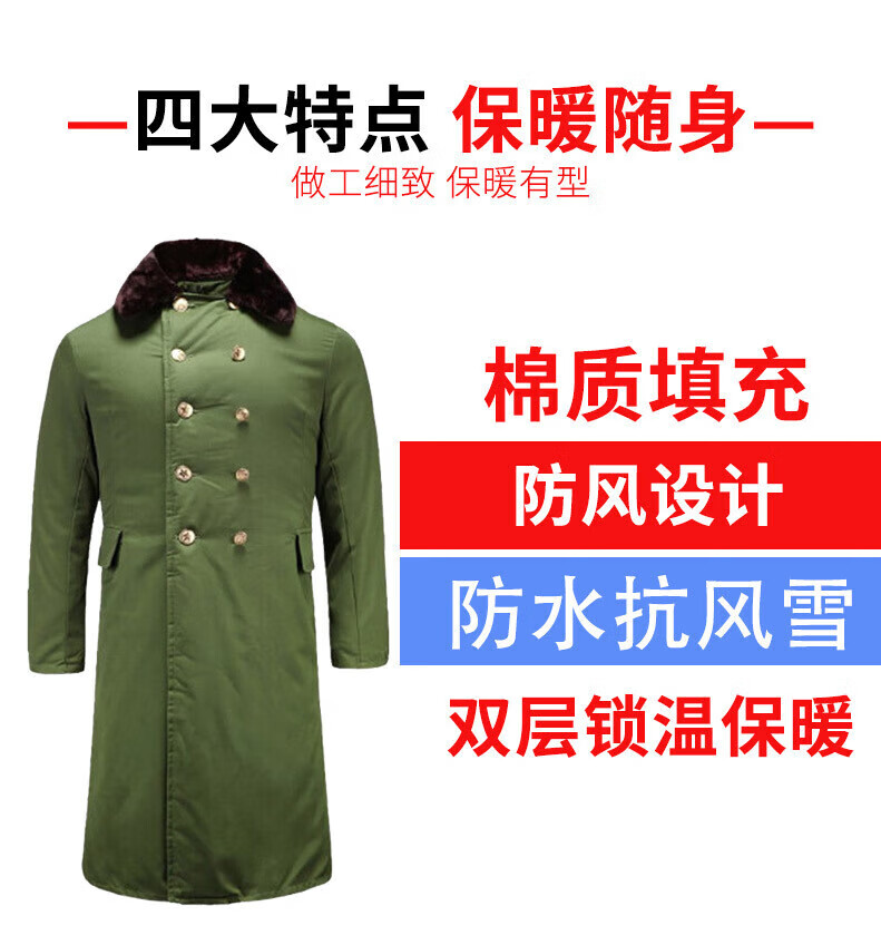 Suling Cotton Coat Men's Old Fashioned Military Coat Winter Thickened and Long Security Coat Yellow Coldproof Clothes Northeastern Cotton Jacket Cotton Clothes Polyester Card Military Coat - Non-detachable liner Economical One Size