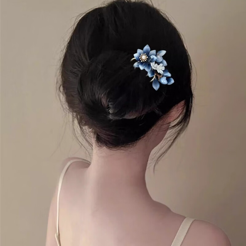 LANSILL new Chinese style gradient blue glazed flower hairpin headwear women's ancient style cheongsam hair comb hairpin accessories national style birthday gift F3558 gradient blue glazed hairpin