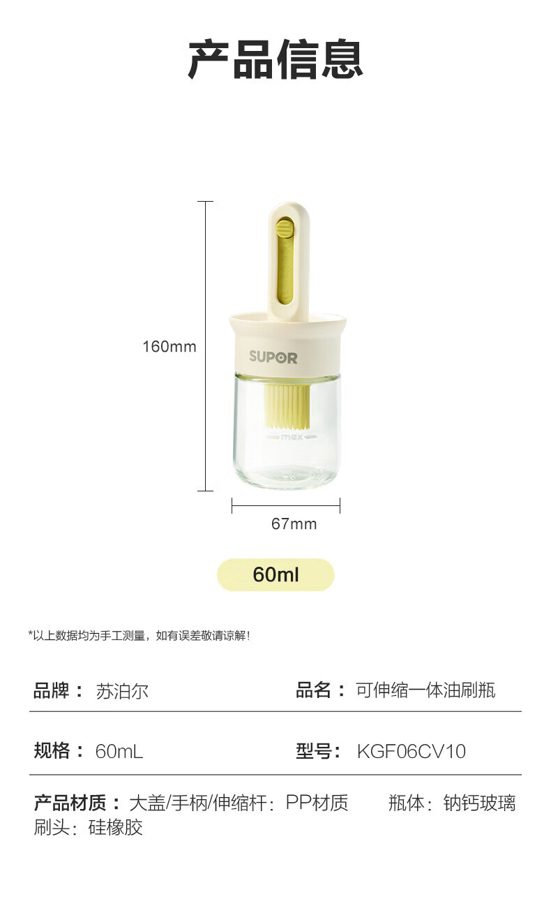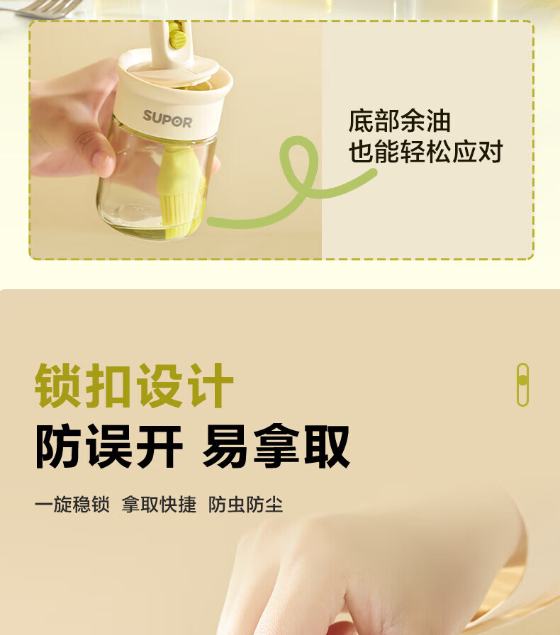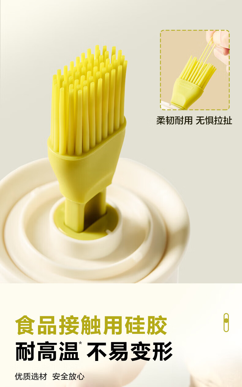 SUPOR food-grade silicone oil brush and oil bottle integrated glass kitchen household retractable oil brush for barbecue pancakes retractable integrated oil brush bottle high temperature resistance