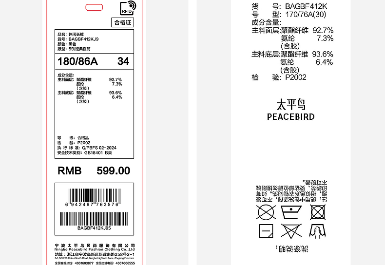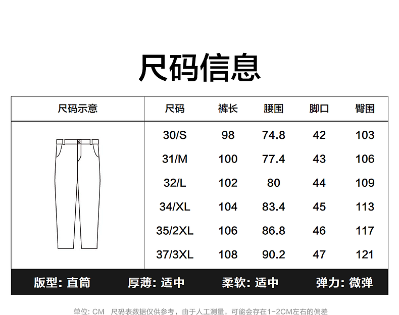 Outseam (cm) 99 cm 101.5 cm 104 cm 106.5 cm 109 cm