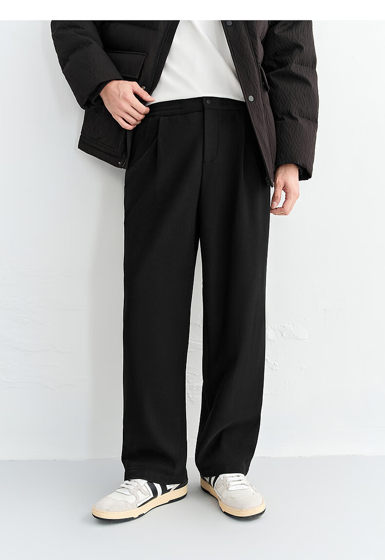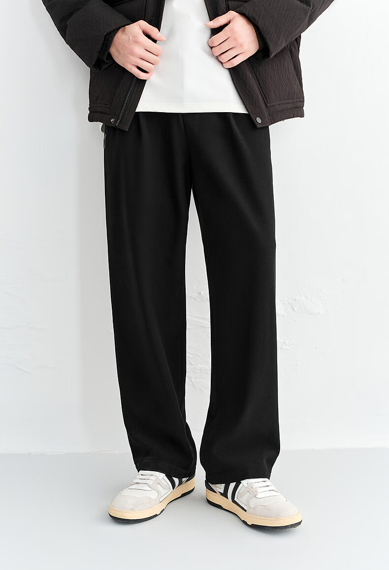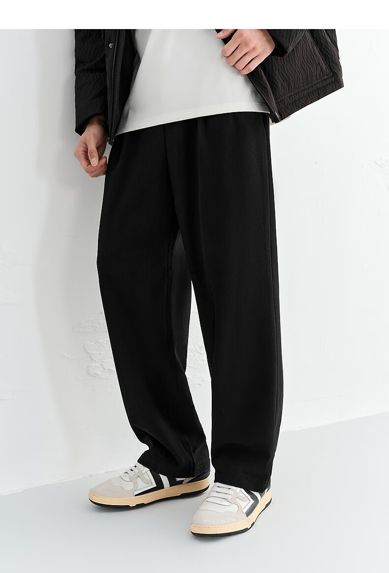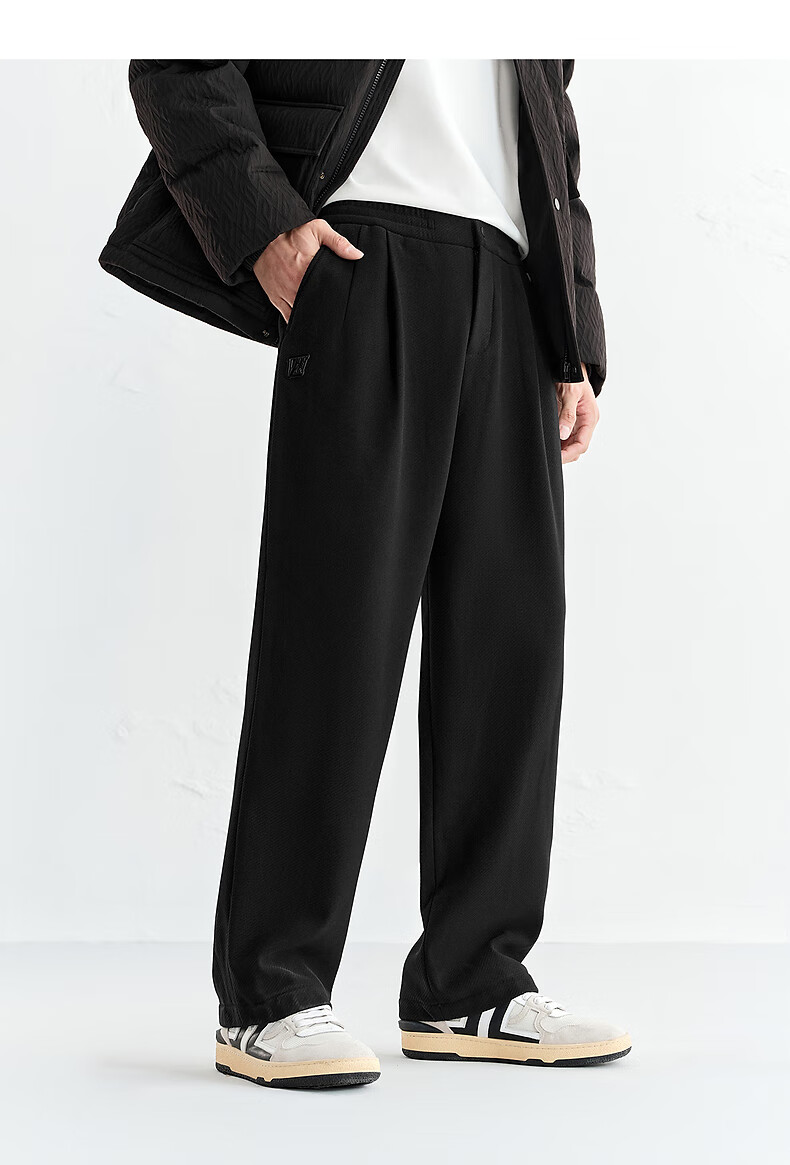 PEACEBIRD Men's Wear Velvet Lined Casual Pants 25 Winter New Style Loose Straight Sports Seamed Standard Sweatpants Trendy Black 30