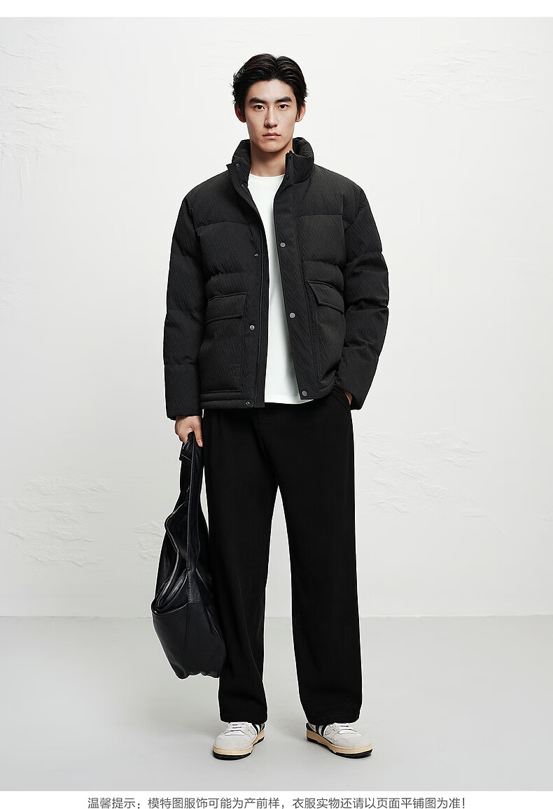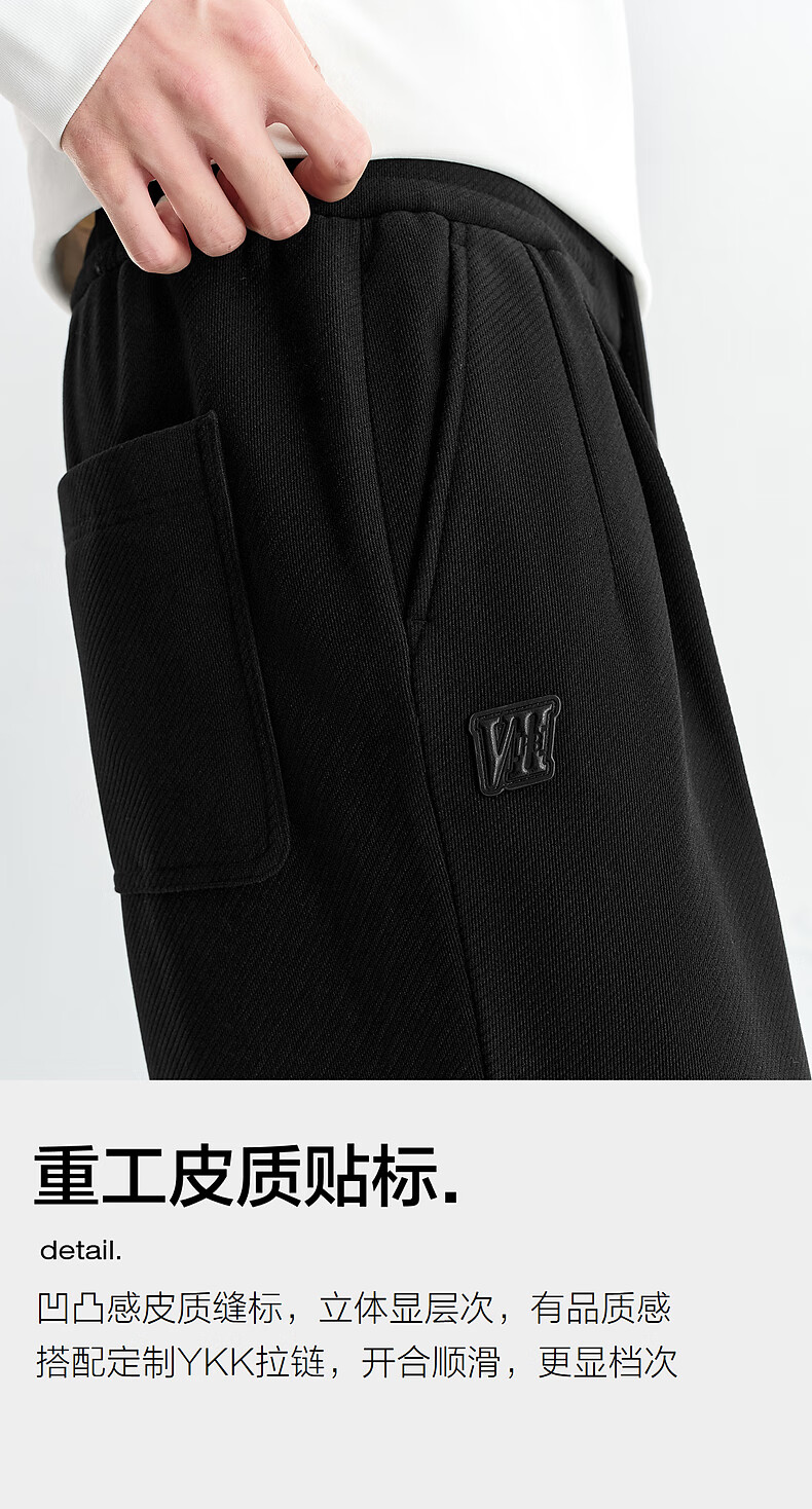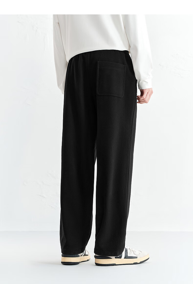 PEACEBIRD Men's Wear Velvet Lined Casual Pants 25 Winter New Style Loose Straight Sports Seamed Standard Sweatpants Trendy Black 30
