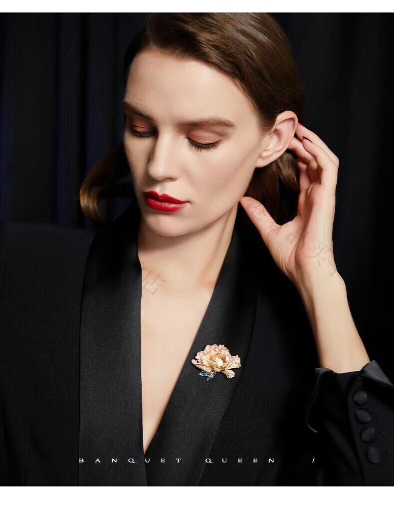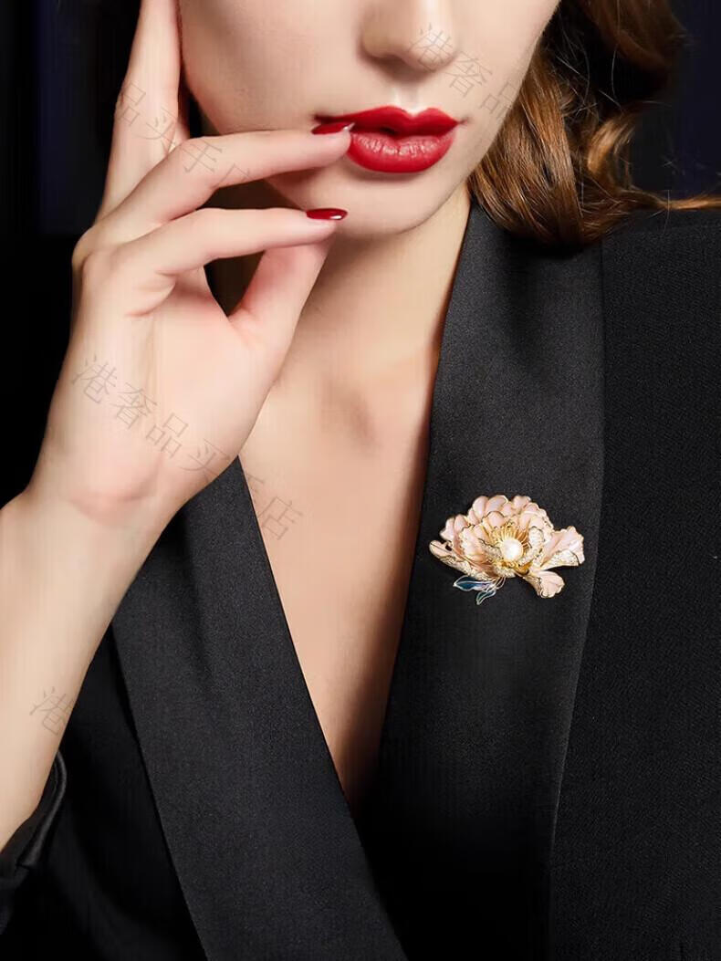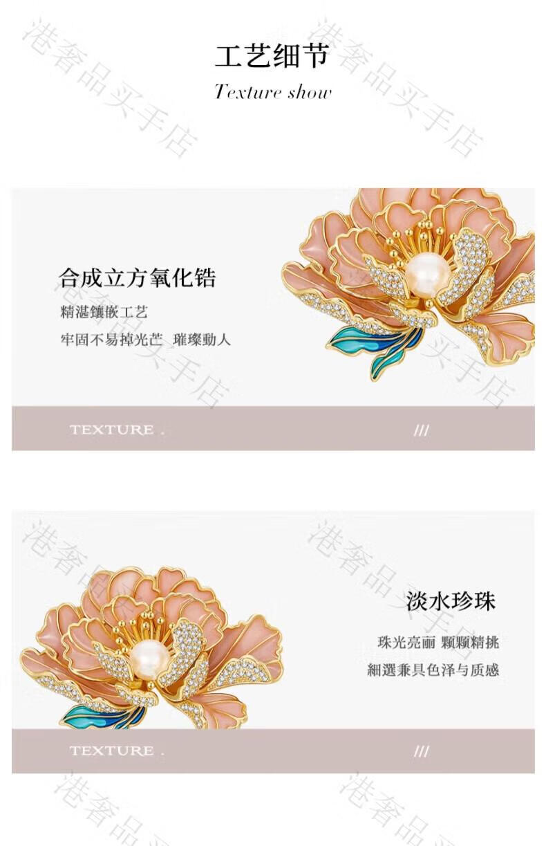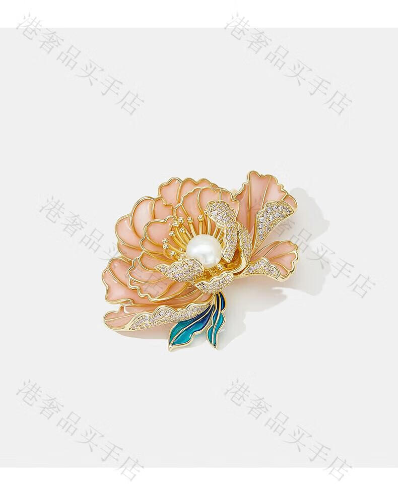 MEXNIA high-end luxury jewelry brooch for women classical new Chinese style peony flower accessories corsage pin gift orange (freshwater pearl + enamel) brand gift box