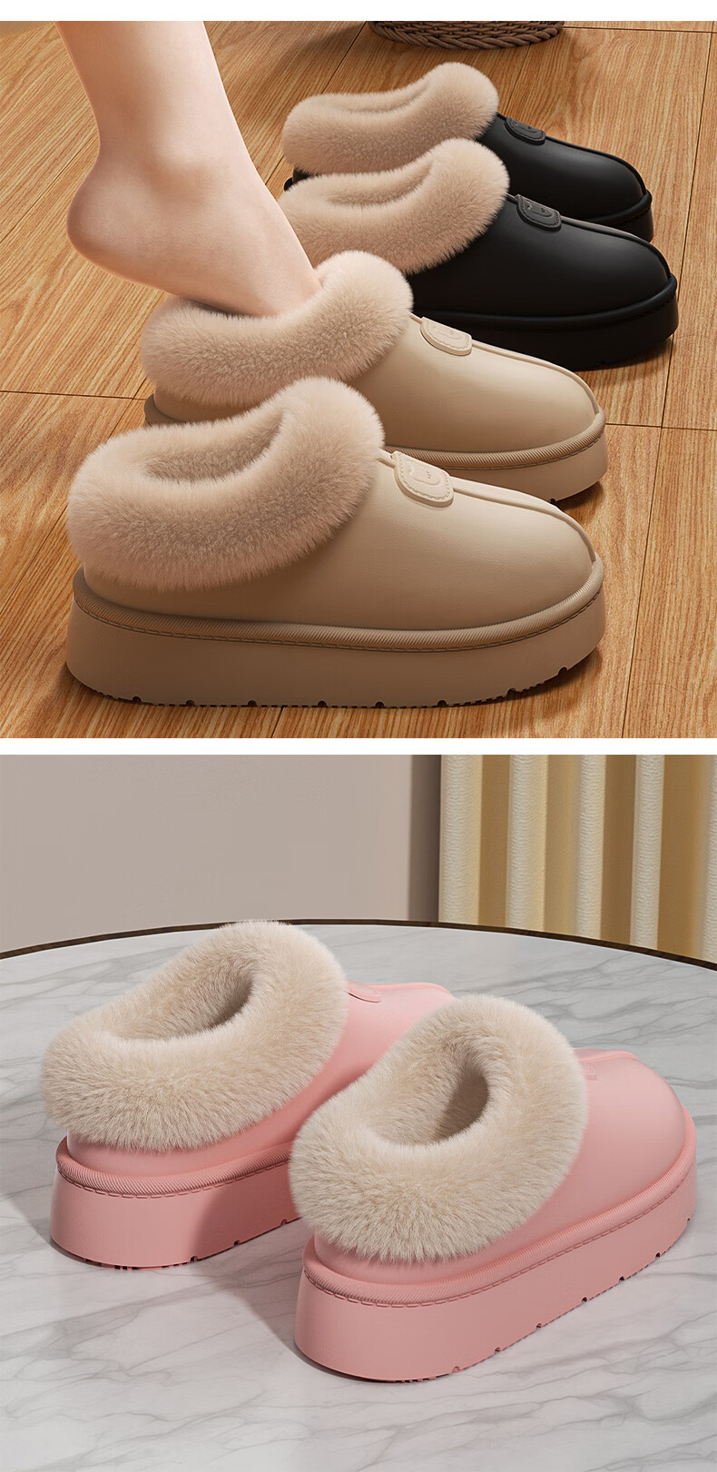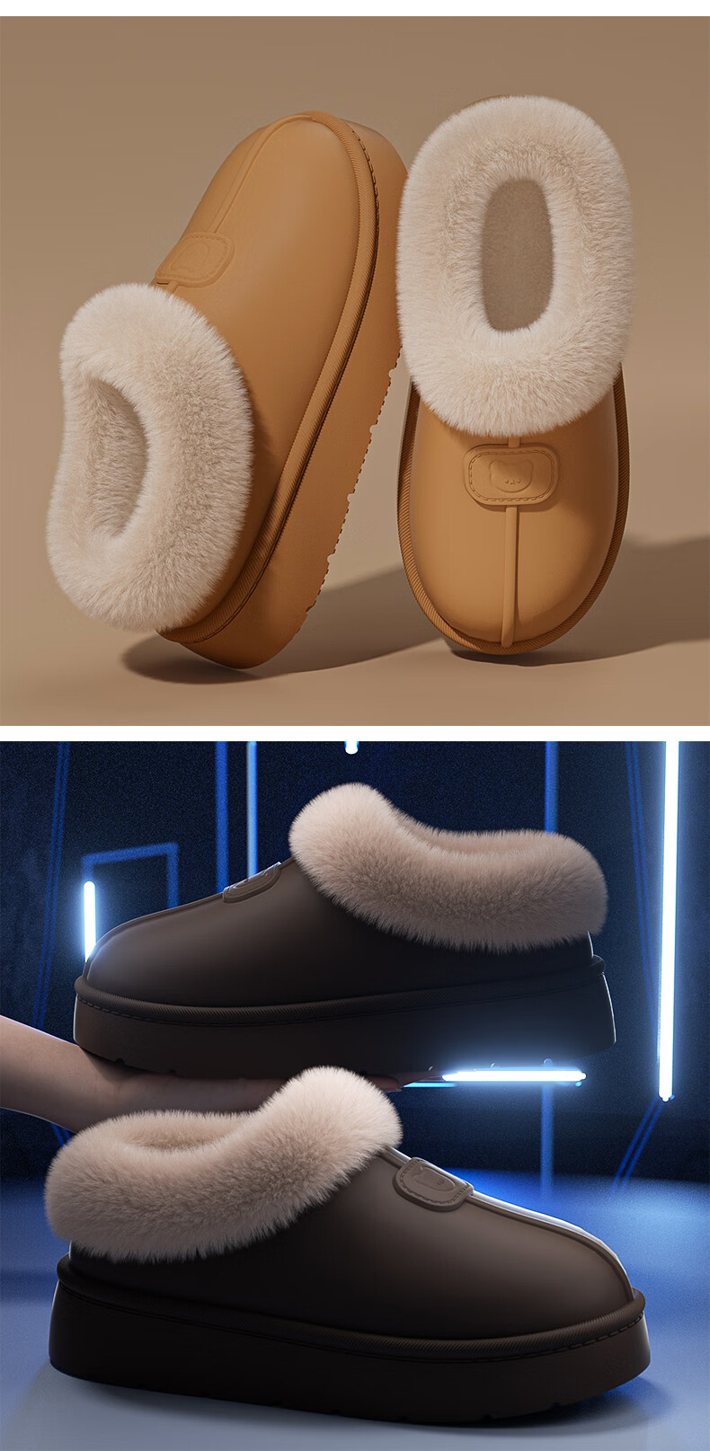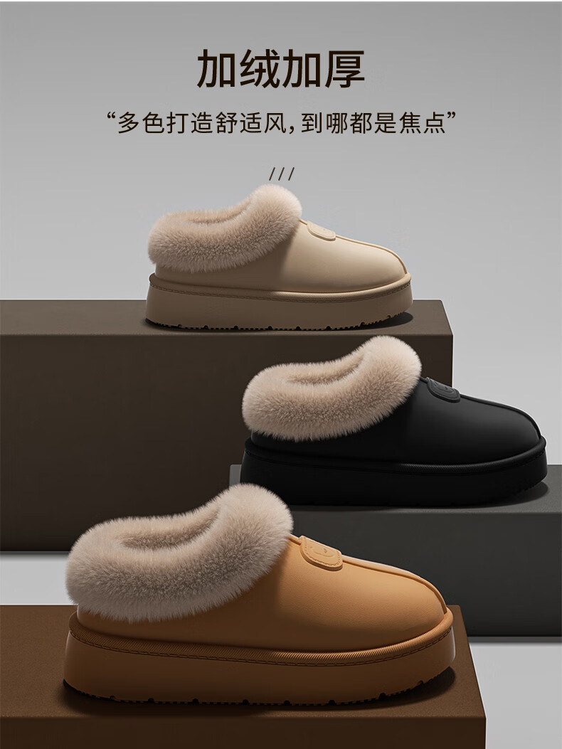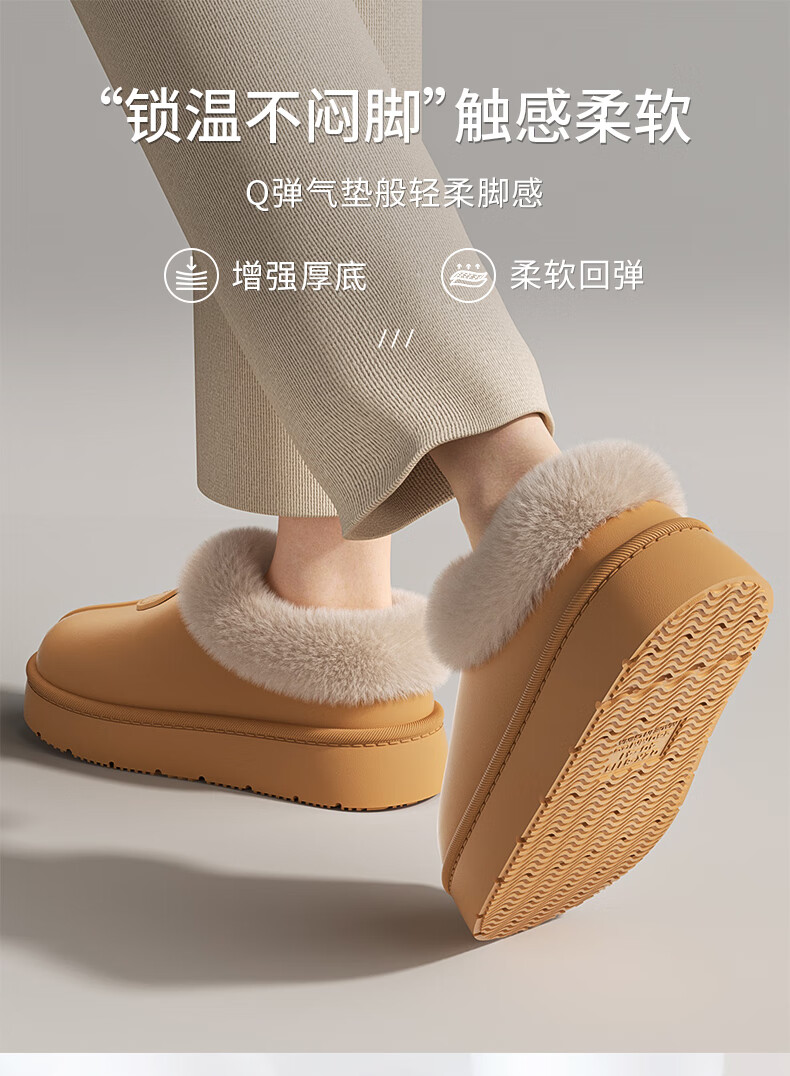 ECACEcac Waterproof Bag Heel Cotton Slippers Women's Winter 25 New Plus Velvet Thickened Warm Outerwear Cotton Shoes Snow Boots Women Yellow Brown Waterproof Thick Plush Temperature Locking 38-39 Recommended 37-38 Feet