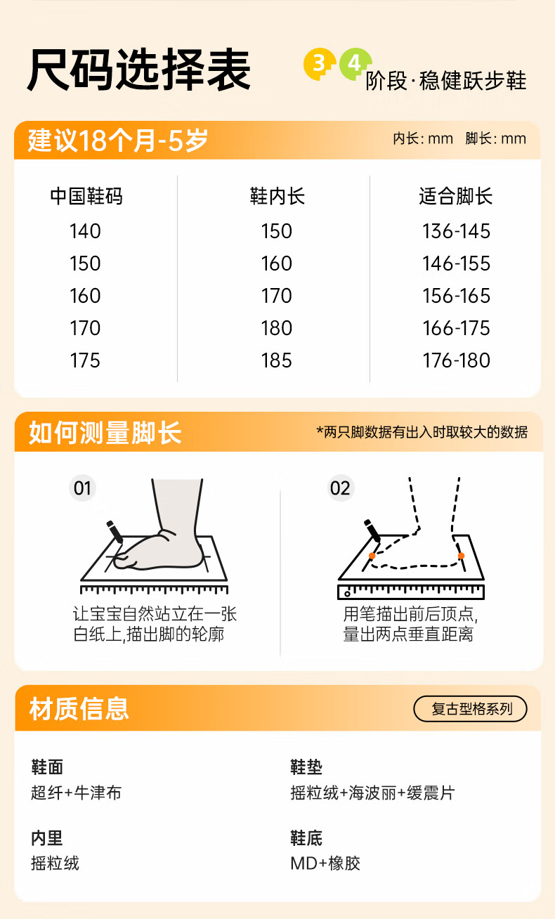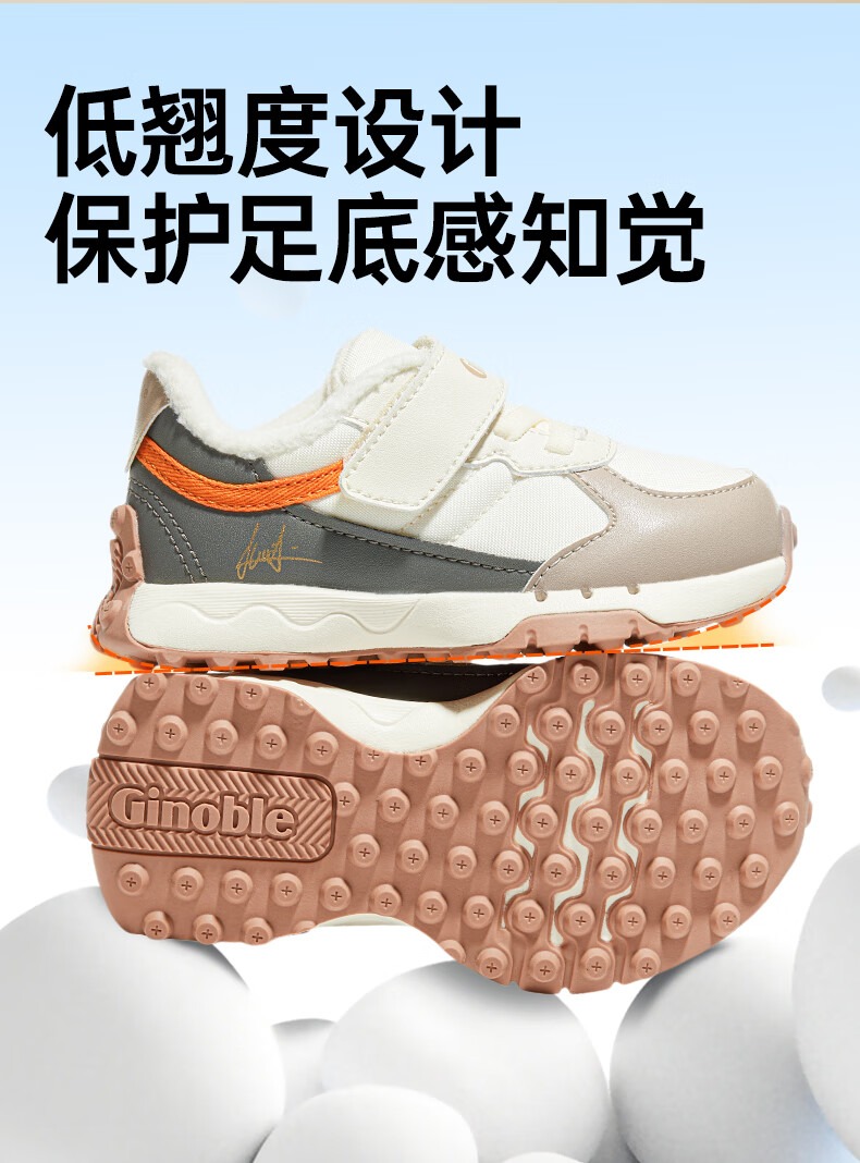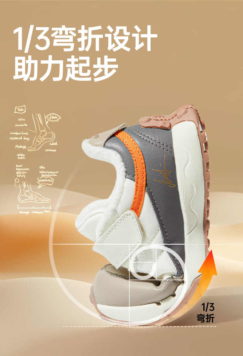 Jinopu baby cotton shoes, winter velvet thickened toddler shoes for boys and girls, polar fleece retro Forrest Gump shoes GW1650, ivory white/khaki/dark gray 25.5 160mm, foot length about 15.1-16cm