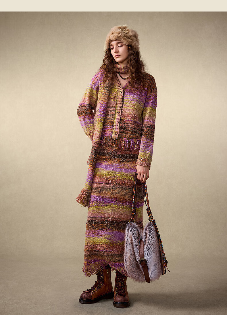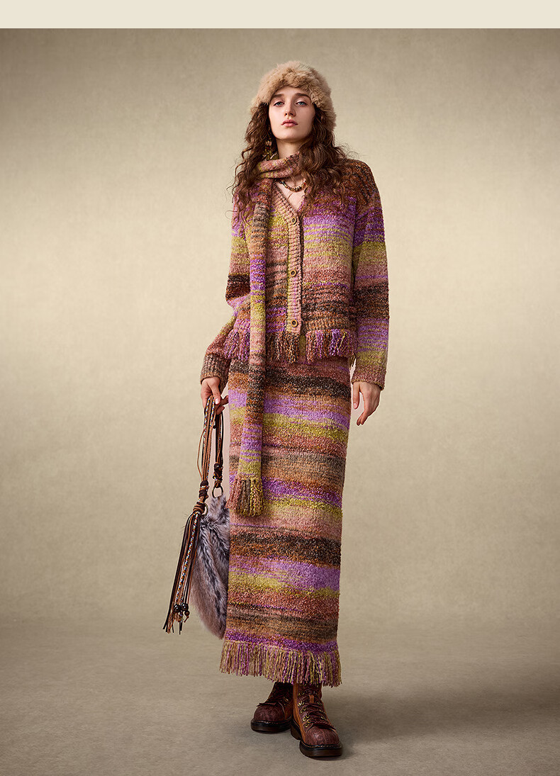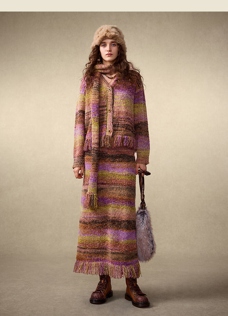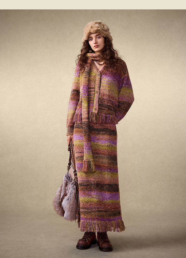 Wancaoyi Li Landi same style Yunxia shirt 2025 winter exotic style gradient knitted suit H05831551 light purple S